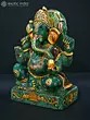 The sculpture is further enhanced by vibrant, hand-painted ornamentation in gold, red, and green. These colors are not merely decorative; they carry deep symbolic meaning in Indian culture. Gold signifies prosperity and divinity, red represents auspiciousness and power, and green is linked to growth, fertility, and the life force itself. The intricate patterns adorning Ganesha's crown, jewelry, and robes elevate the piece from a mere statue to a wearable testament to divine beauty and spiritual significance. The delicate red markings on his palms, particularly the celestial discus symbol in his upper right hand, denote his supreme power and protective nature. This masterful piece is more than just a decorative item; it is a conduit to divine energy, a symbol of auspicious beginnings, and a cherished keepsake for those who seek blessings and prosperity.