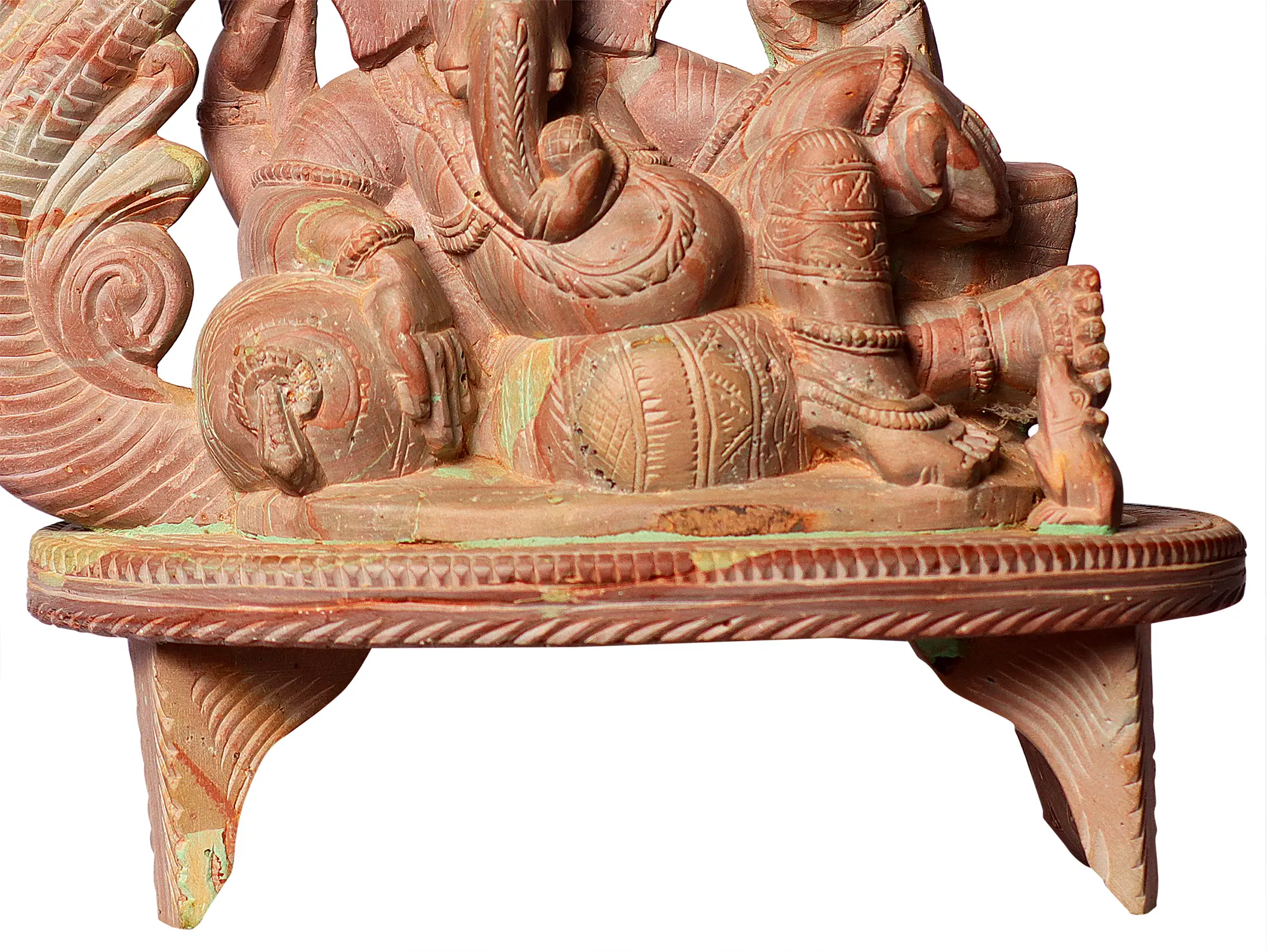 Hailing from the culturally rich region of Odisha, known for its ancient traditions of stone carving, this sculpture is a proud representation of this enduring art form. The artisans of Odisha have a legacy dating back centuries, with their skills passed down through generations, preserving techniques that imbue each creation with soul and spirit. The use of pink stone, a material that responds beautifully to carving, allows for the delicate rendering of textures and forms, from the fine lines on Ganesha's ornaments to the flowing curves of his attire and the decorative elements of his seat. This piece is a celebration of that heritage, a tangible link to the artistic soul of India.