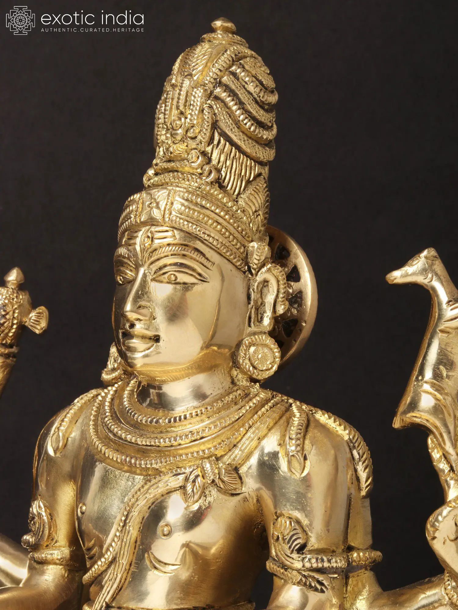This exquisite brass statue captures Lord Shiva in his benevolent aspect as Pashupatinath, the Protector of All Animals. Seated in a graceful posture, the deity emanates an aura of serenity and divine power. The intricate detailing in the casting highlights the sculptor's mastery, from the elaborate crown adorning his head to the delicate jewelry that adorns his divine form. Each of the four arms is rendered with meticulous care, holding symbolic attributes that further define his multifaceted nature. The lustrous brass, polished to a radiant sheen, reflects the divine light, making this piece a captivating focal point for any sacred space or art collection.