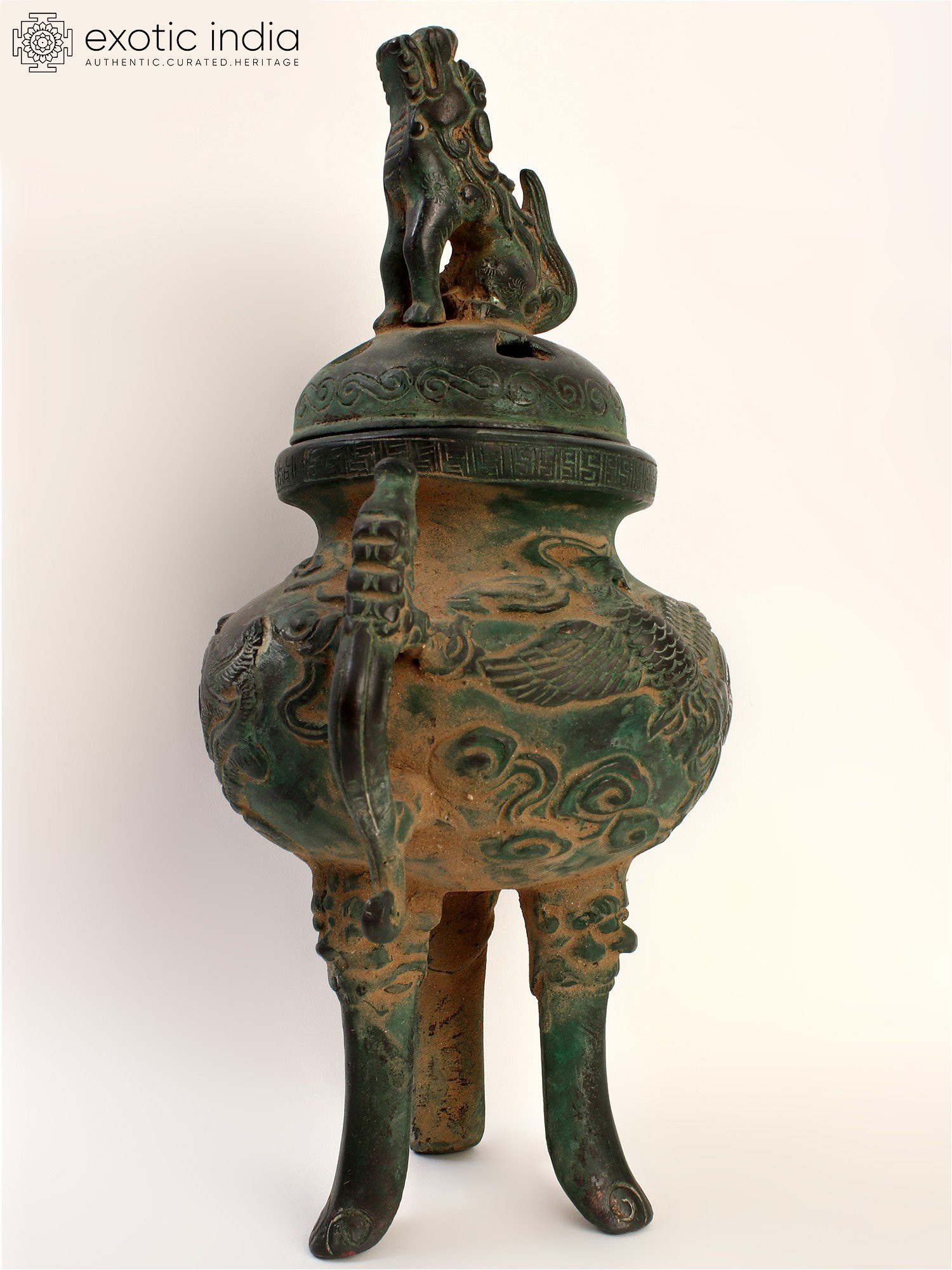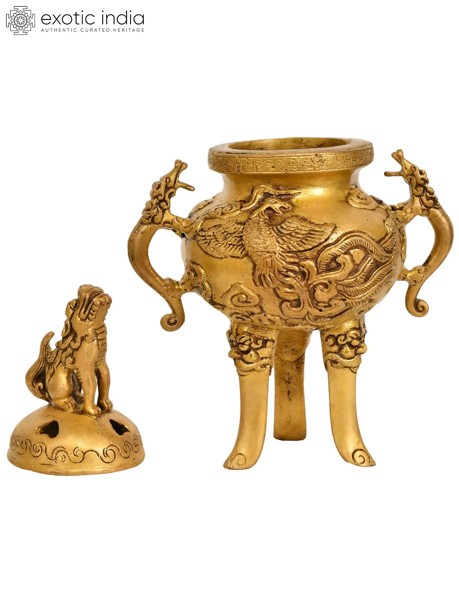 Introducing an exquisite brass incense burner embellished with the regal presence of snow lions. This remarkable piece seamlessly marries artistry and utility, offering a striking vessel for burning incense while also serving as a cultural emblem of significance. The snow lions, revered for their association with strength and protection in Tibetan culture, bestow a sense of majesty upon the burner. Crafted with meticulous detail, this functional work of art promises both visual and sensory delight. The choice of brass as the medium ensures not only durability but also a resplendent aesthetic. Beyond its utilitarian purpose, this incense burner stands as a testament to the profound artistry and symbolism ingrained in Tibetan culture and Buddhist traditions.