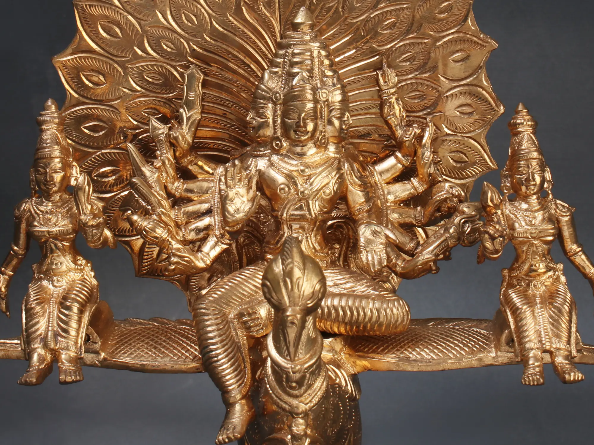 15" Brass Karttikeya Statue - Hindu War God | Handmade | Made in India