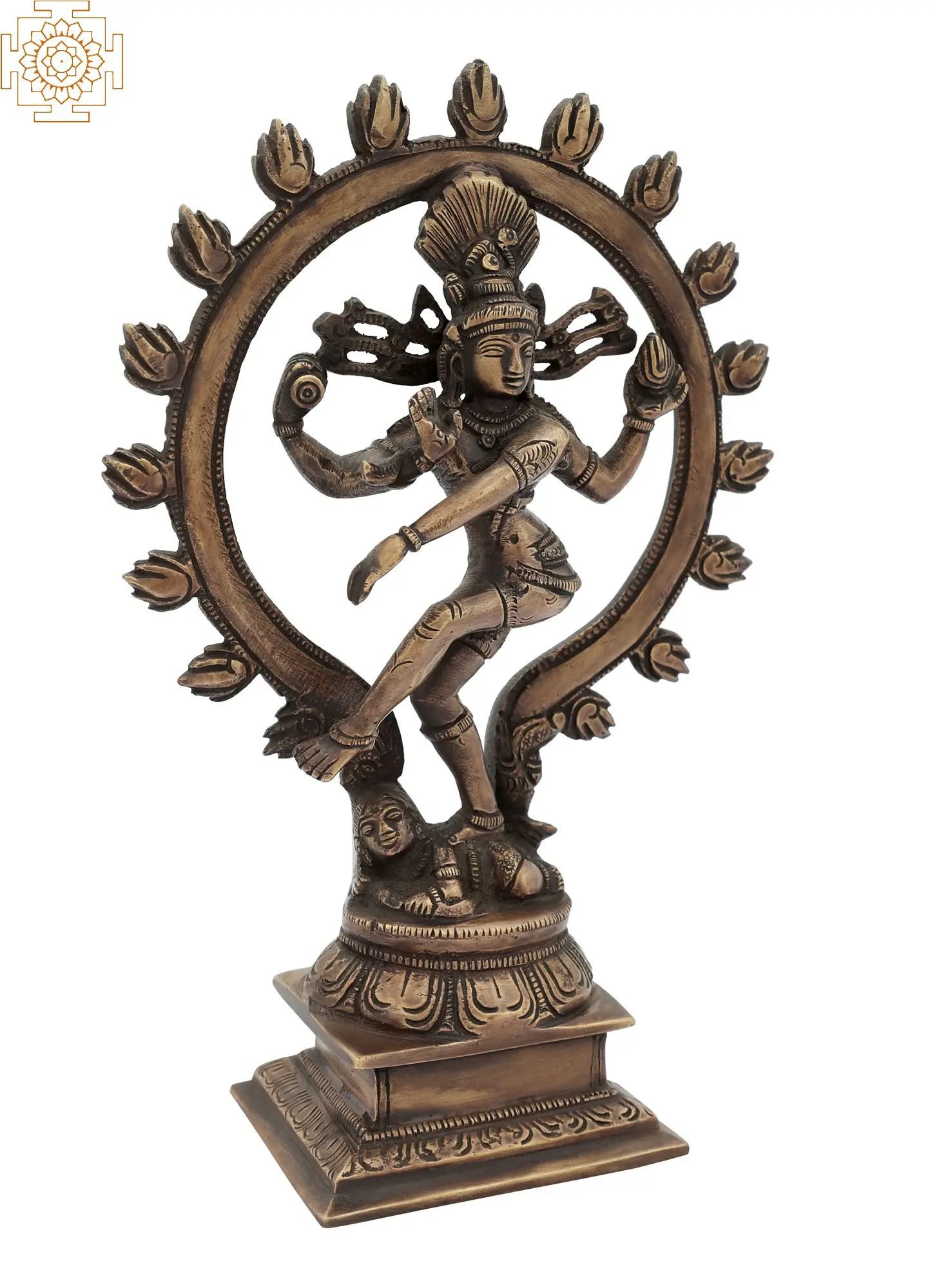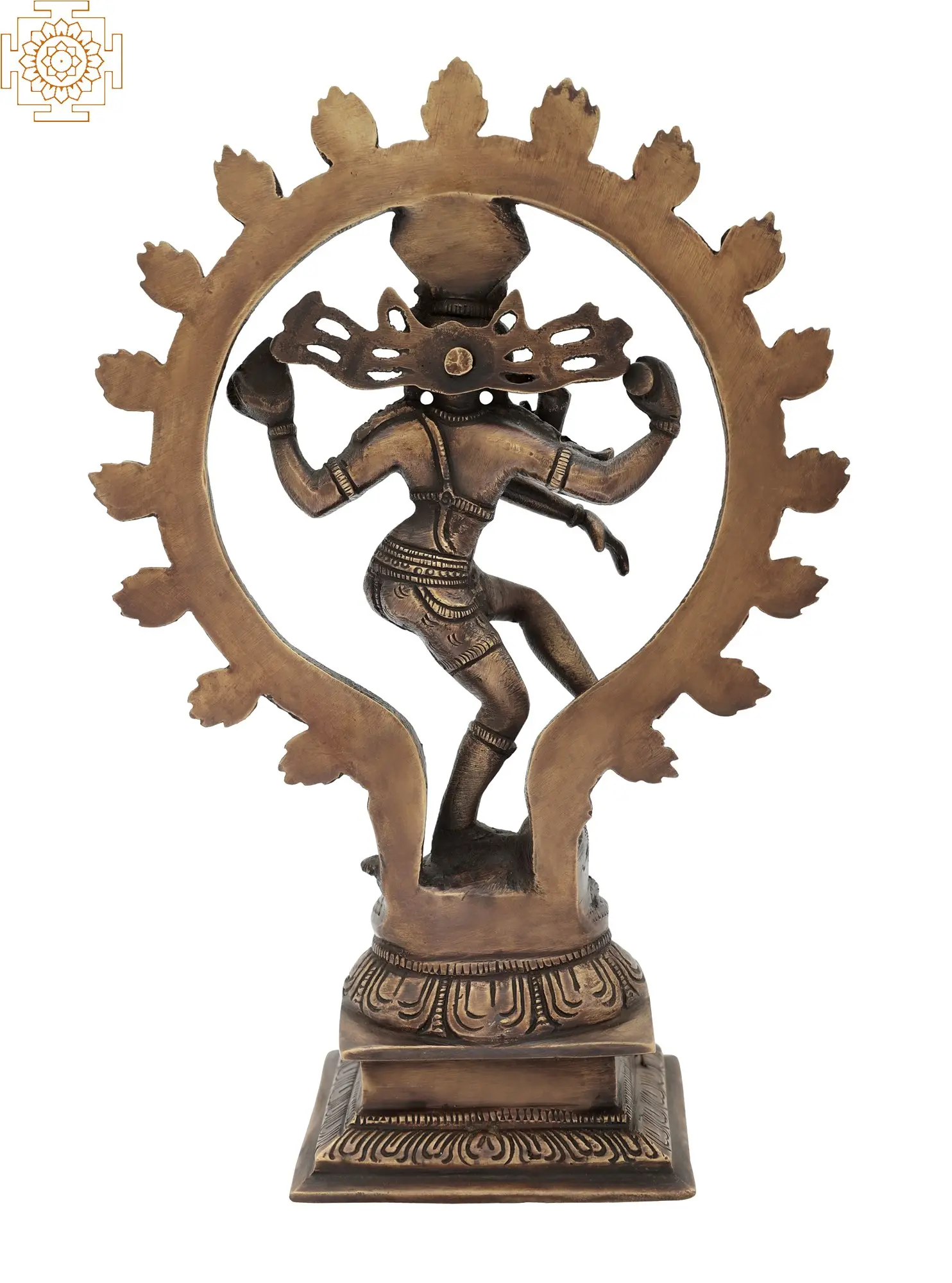 With a damaru in one hand and agni in another, Shiva wields the very forces that shape the cosmos. Encircled by a fervent halo of flames, the sculpture's Prabha Mandala mirrors the ceaseless cycle of existence. Beyond its artistic brilliance, this brass marvel stands as an emblem of cosmic equilibrium, inviting contemplation of the boundless dance of life itself.