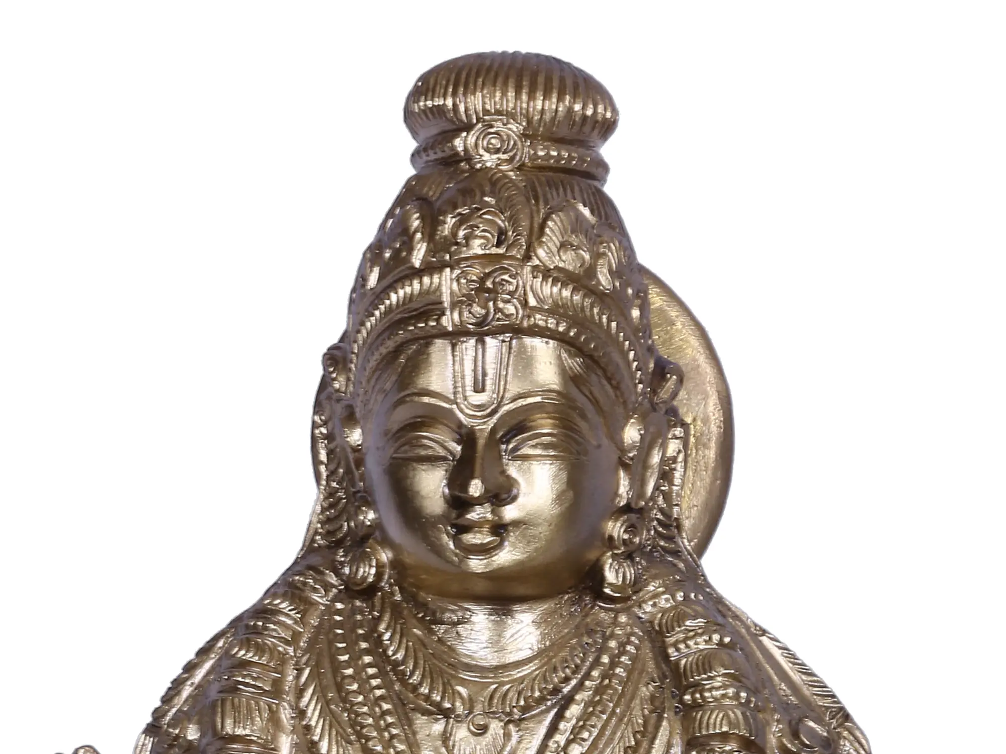 A high plinth that is one-third the stature of the work. Crown and halo framing a youthful yet wise face. A Vaishnavite tilaka on the midbrow. Sumptuous adornment, especially the thick garland reaching all the way down to Ayyappan’s feet, are a deeply Hoysala influence.