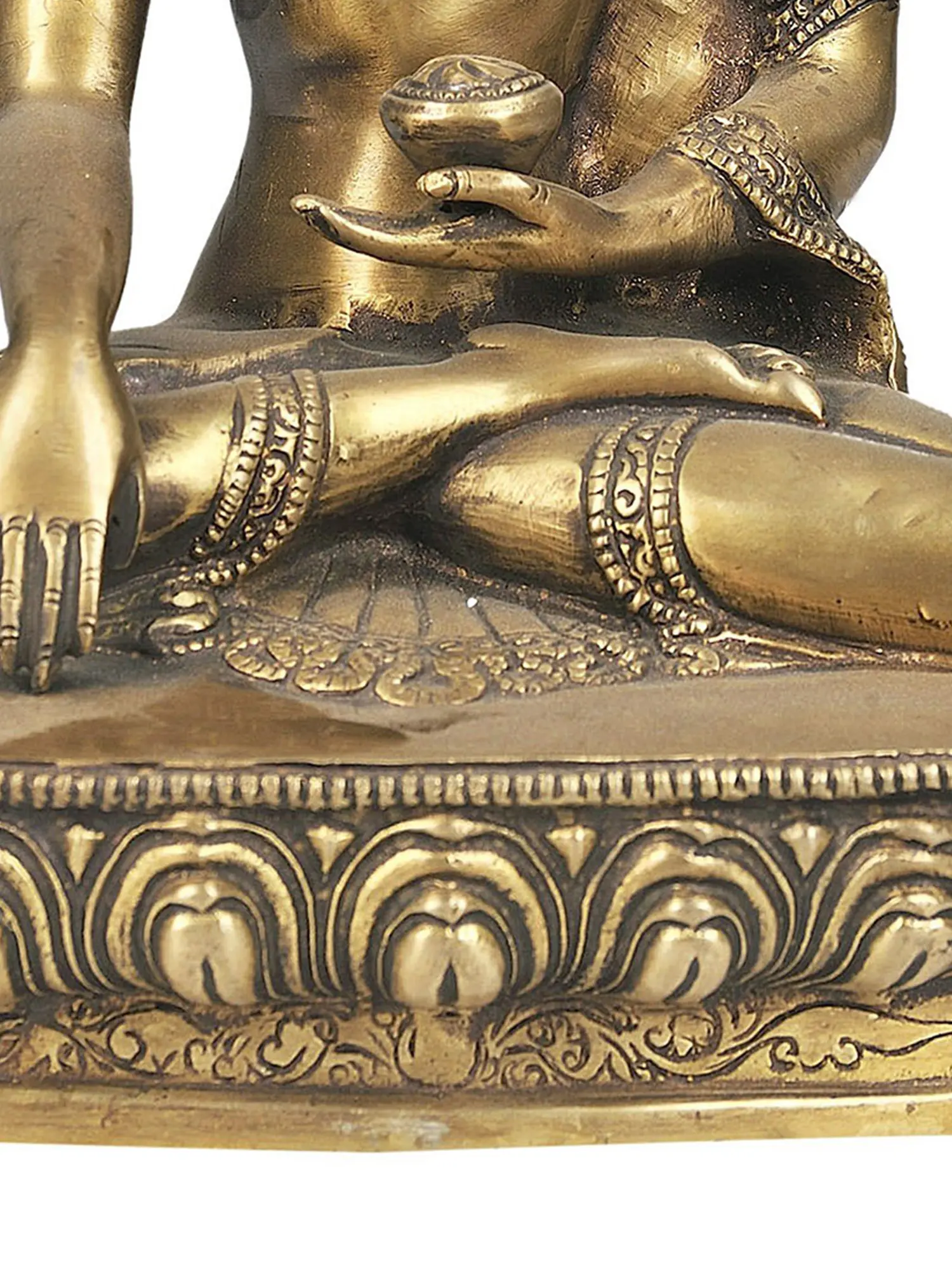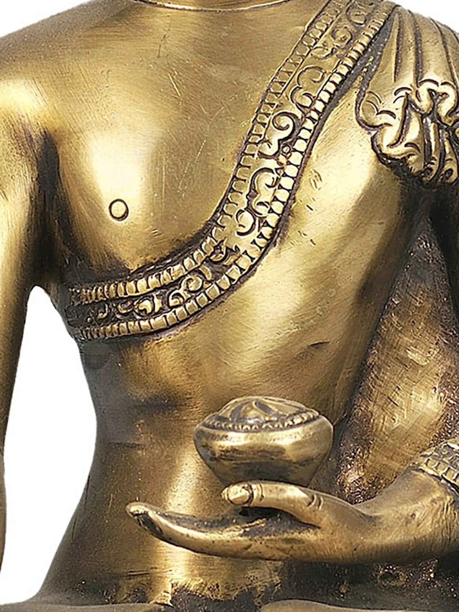 9" Lord Buddha Invoking the Earth Goddess to be His Witness to the Attainment of Supreme Enlightenment In Brass | Handmade | Made In India