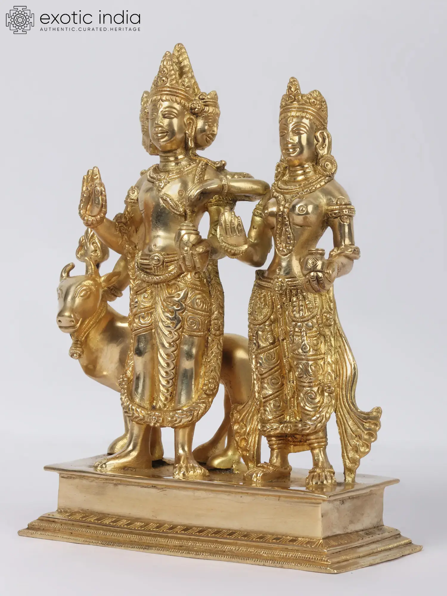 9'' Lord Four-Head Shiva With Parvati | Brass Statue