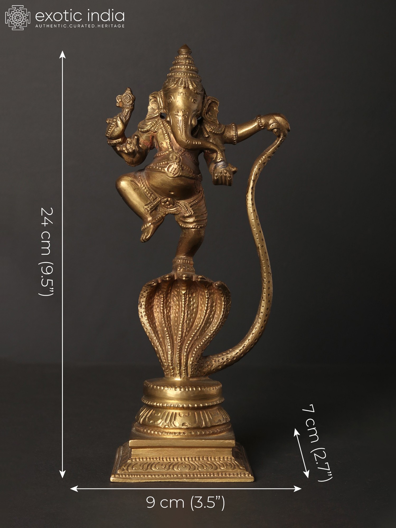 It is believed that once the Shesha-Naga attacked the Mayura and defeated it, Lord Ganesha also known as Mureshwara came to his rescue. He climbed Shesh-Naag’s hood and held his tail. He then started dancing on his hood. This Ganesha Purana tale is visually told through this ethereal bronze image of Sri Ganesha on a snake's hood. It is a beautiful piece of art and also a manifestation of a rarely discussed episode of victory of good over evil. It also initiates a discussion about the Mayureshwar form of Lord Ganesha, which is situated in Morgaon in Pune District.