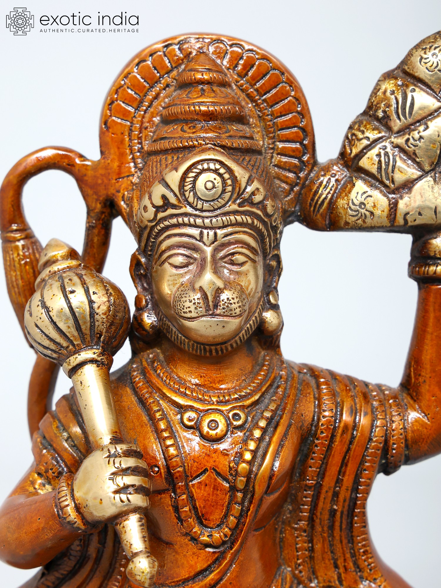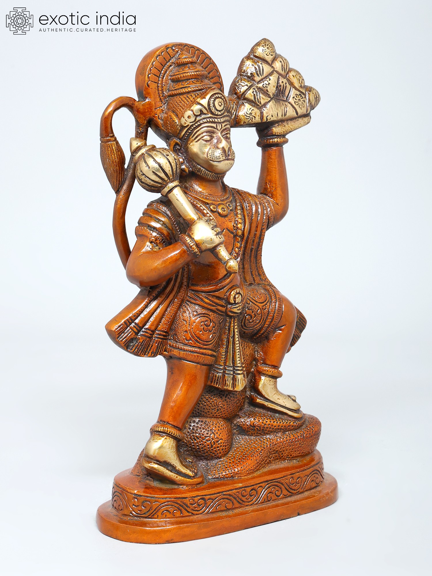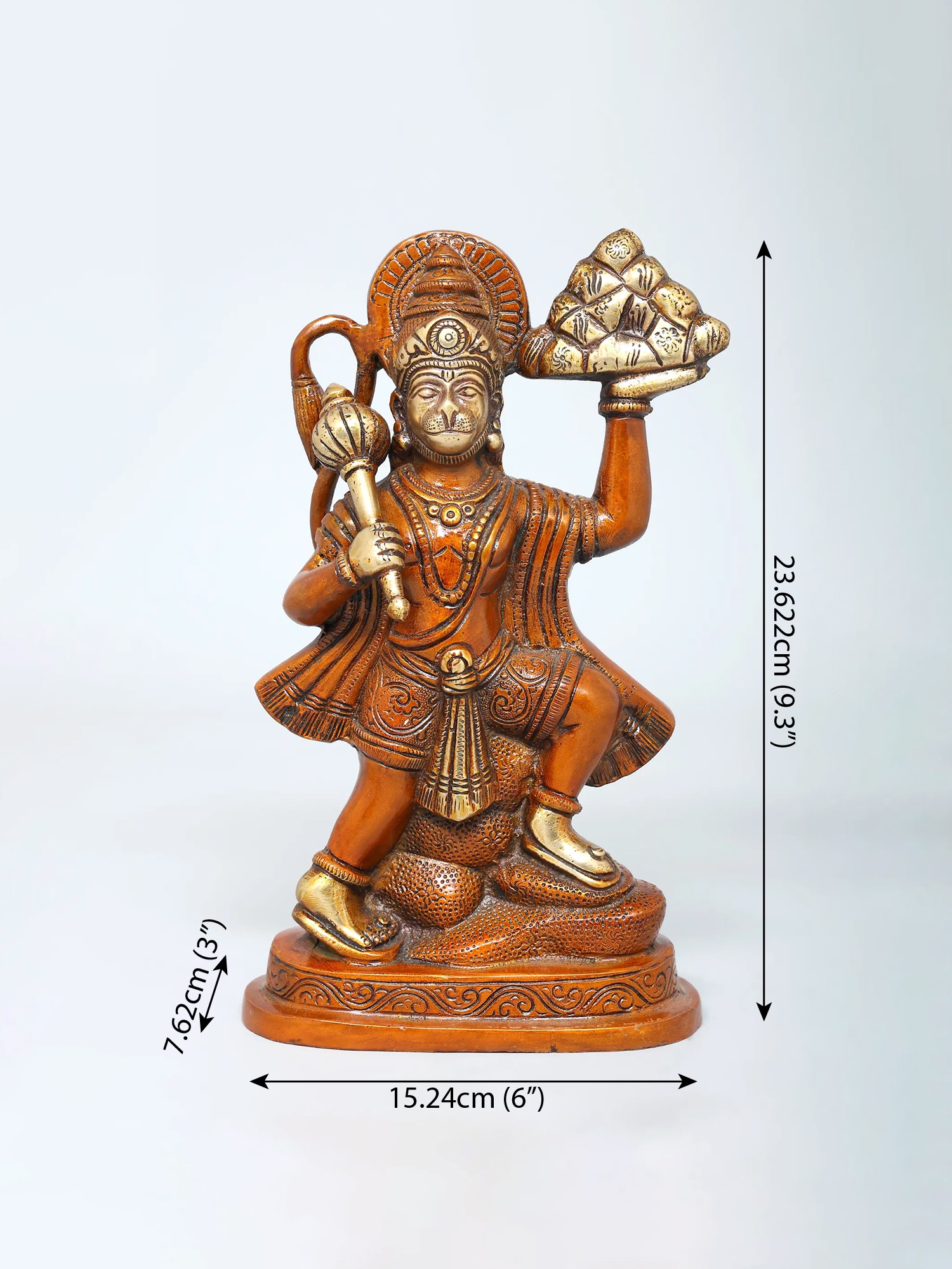 9" Lord Hanuman Carrying Mountain of Sanjeevani Herbs | Handmade Brass Statue | Made in India