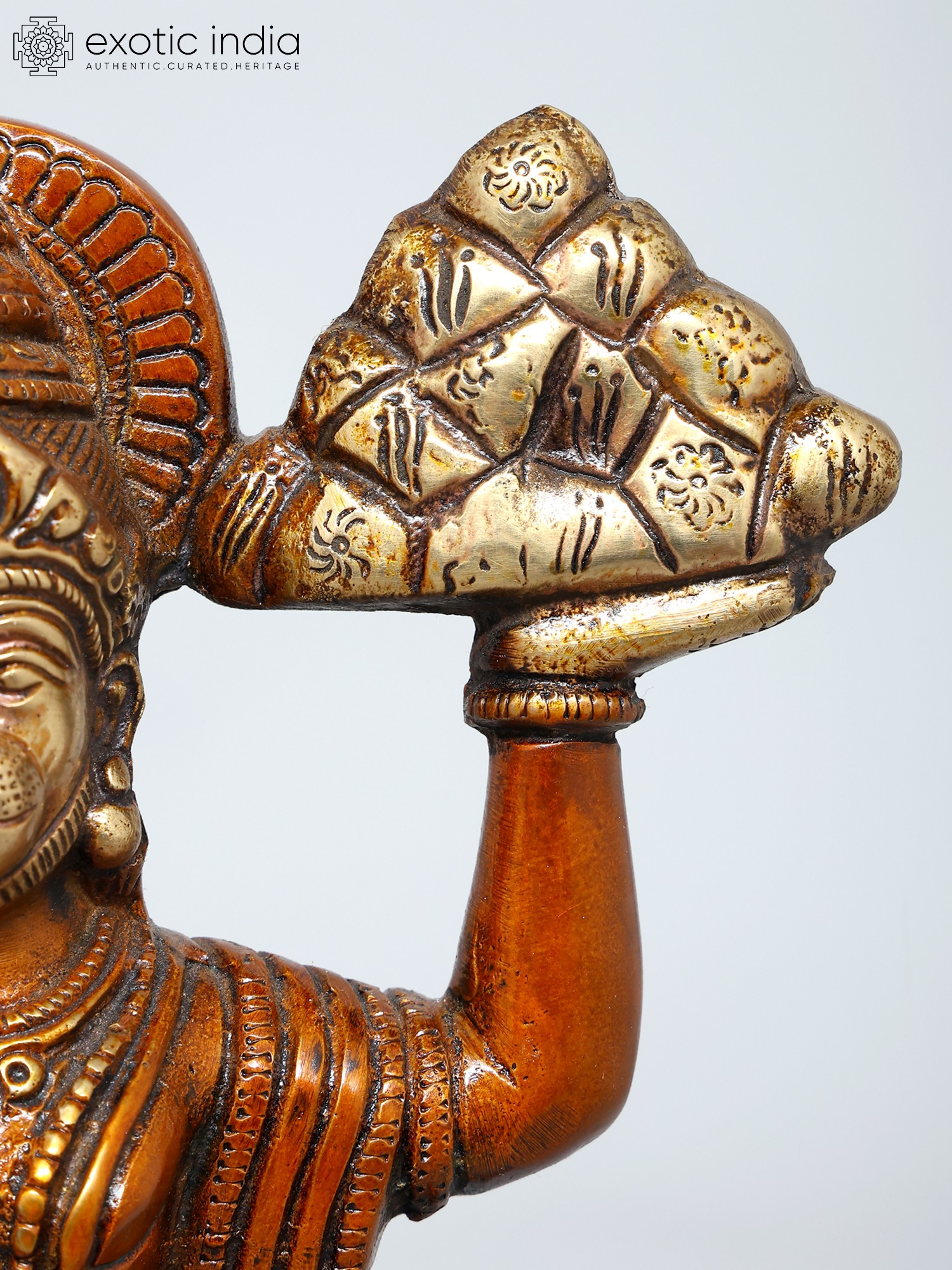 9" Lord Hanuman Lifting Sanjivani Mountain In Brass | Handmade | Made In India