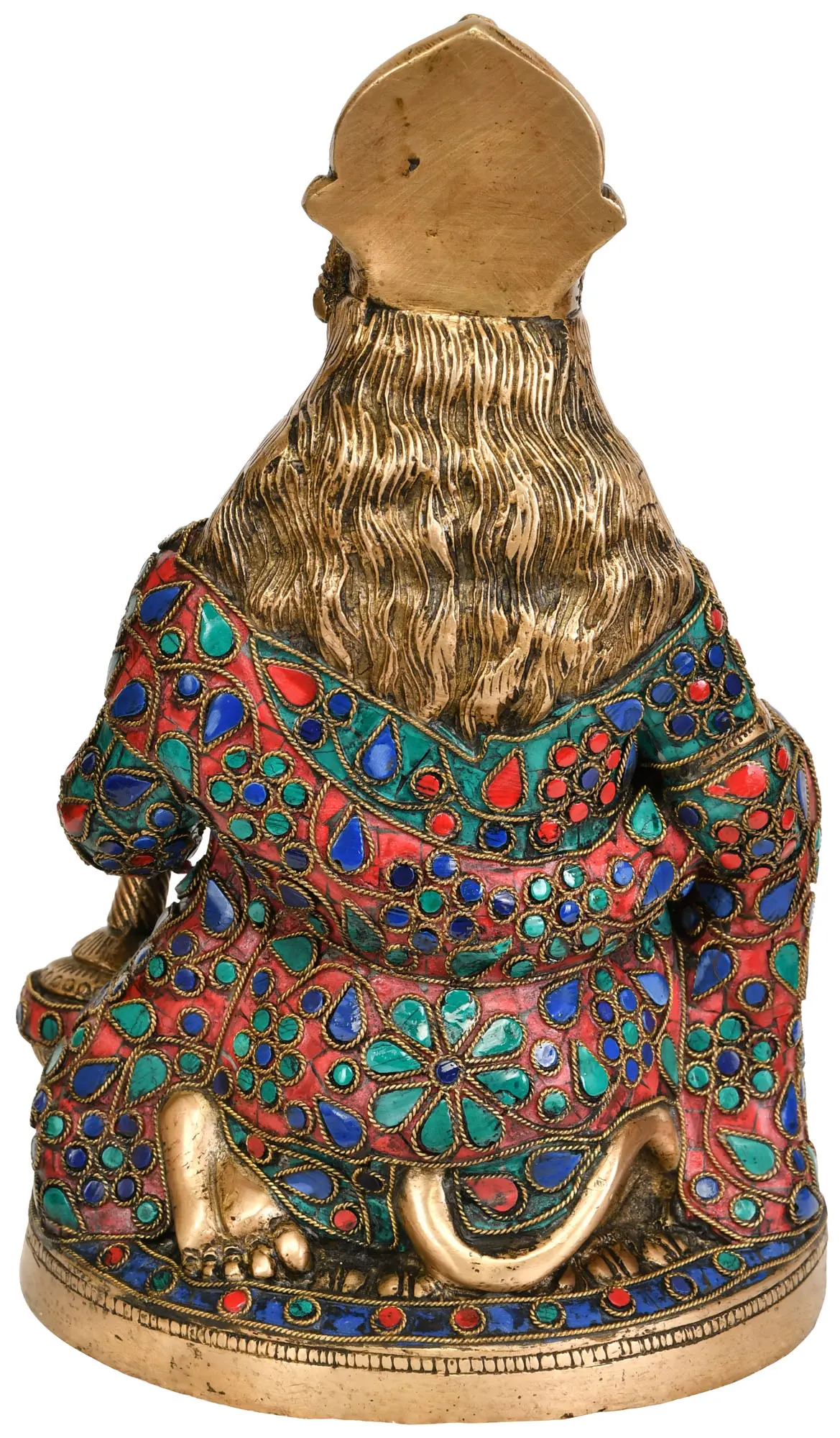 Invite the blessings of devotion, strength, and unwavering loyalty into your home with this exquisite brass statue of Lord Hanuman. Meticulously handcrafted in India, this remarkable piece captures the divine energy and profound essence of the monkey god, a central figure in Hindu mythology. The rich patina of the brass, combined with the vibrant inlay work, creates a truly captivating display of artistry and spirituality.