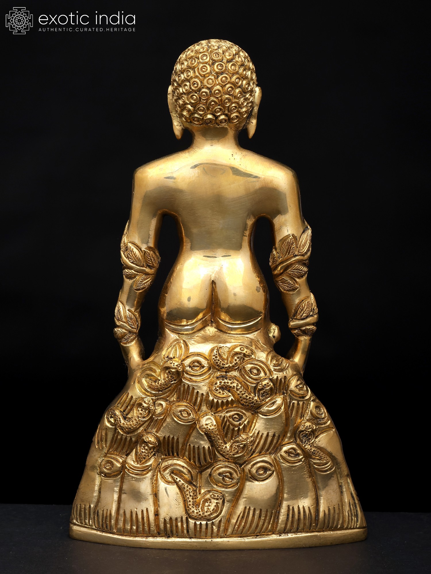 5" Small Superfine Shivling and Protective Vasuki with Wood Base | Brass Statue | Made in India
