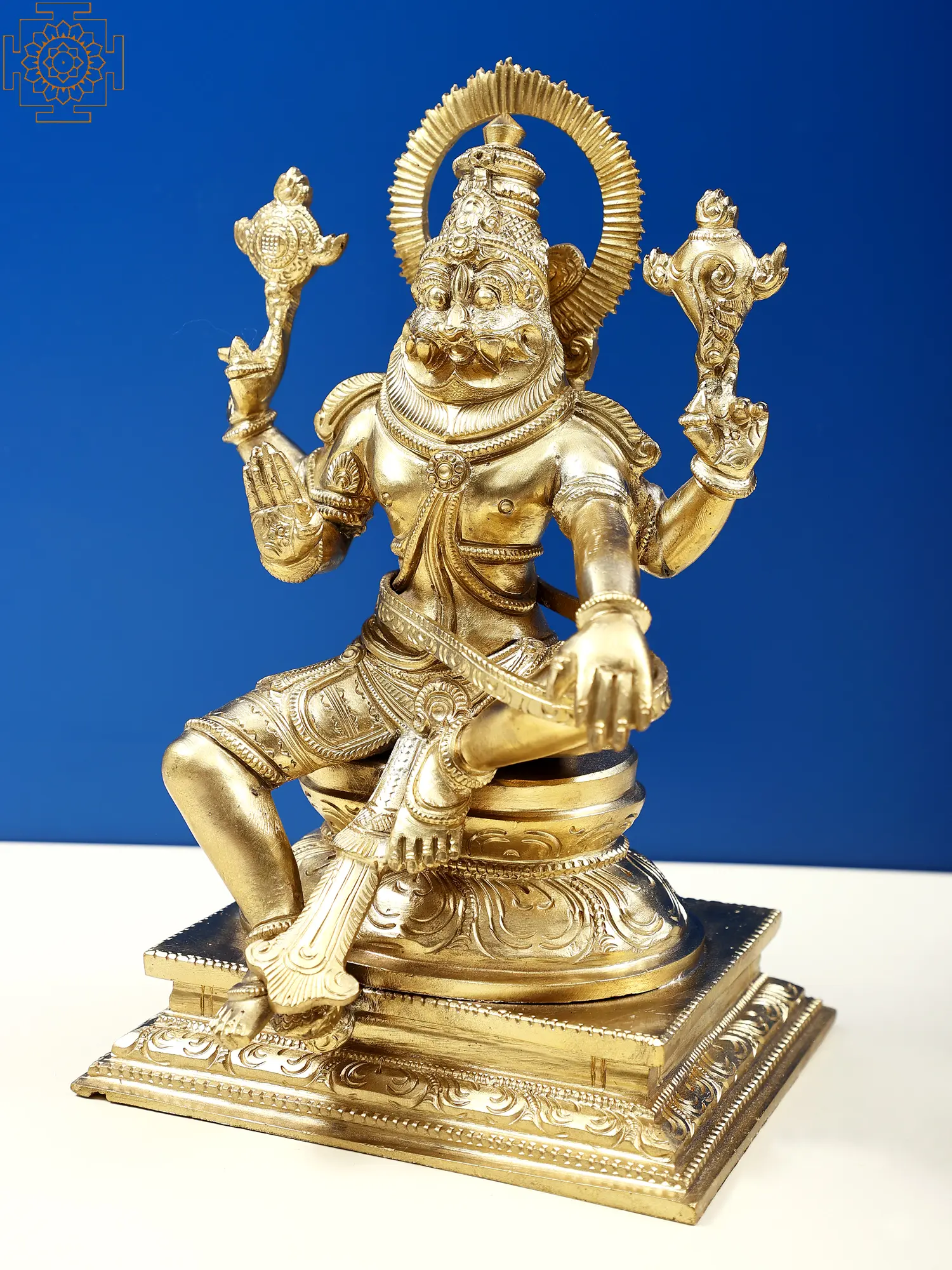 4" Small Lord Narasimha with Devi Lakshmi | Brass Statue