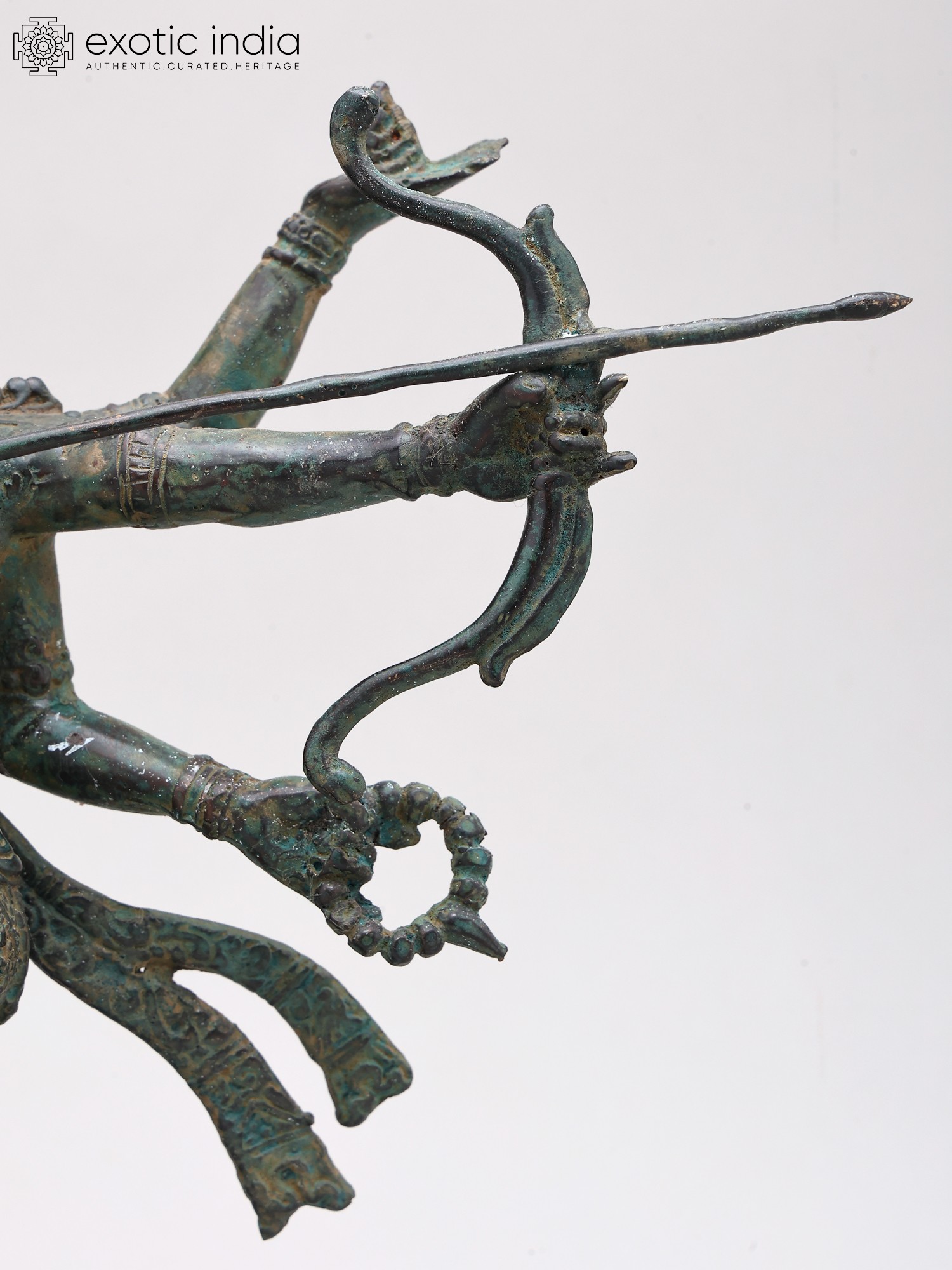 This brass statue is more than just a decorative object; it is an object of devotion and a piece of art that carries deep cultural and spiritual significance. The weight and texture of the brass, combined with the intricate details, create a tactile and visual experience that draws the viewer into the divine presence of Lord Shiva. Its presence in a home or sanctuary can serve as a constant source of inspiration, courage, and a reminder of the underlying order of the universe. The verdigris patina, far from being a sign of age, is often cherished in such bronzes as it adds depth and character, making each piece unique. This exquisite representation of Lord Shiva as the wielder of the Pinaka bow is a profound statement of faith and a celebration of enduring artistic traditions.