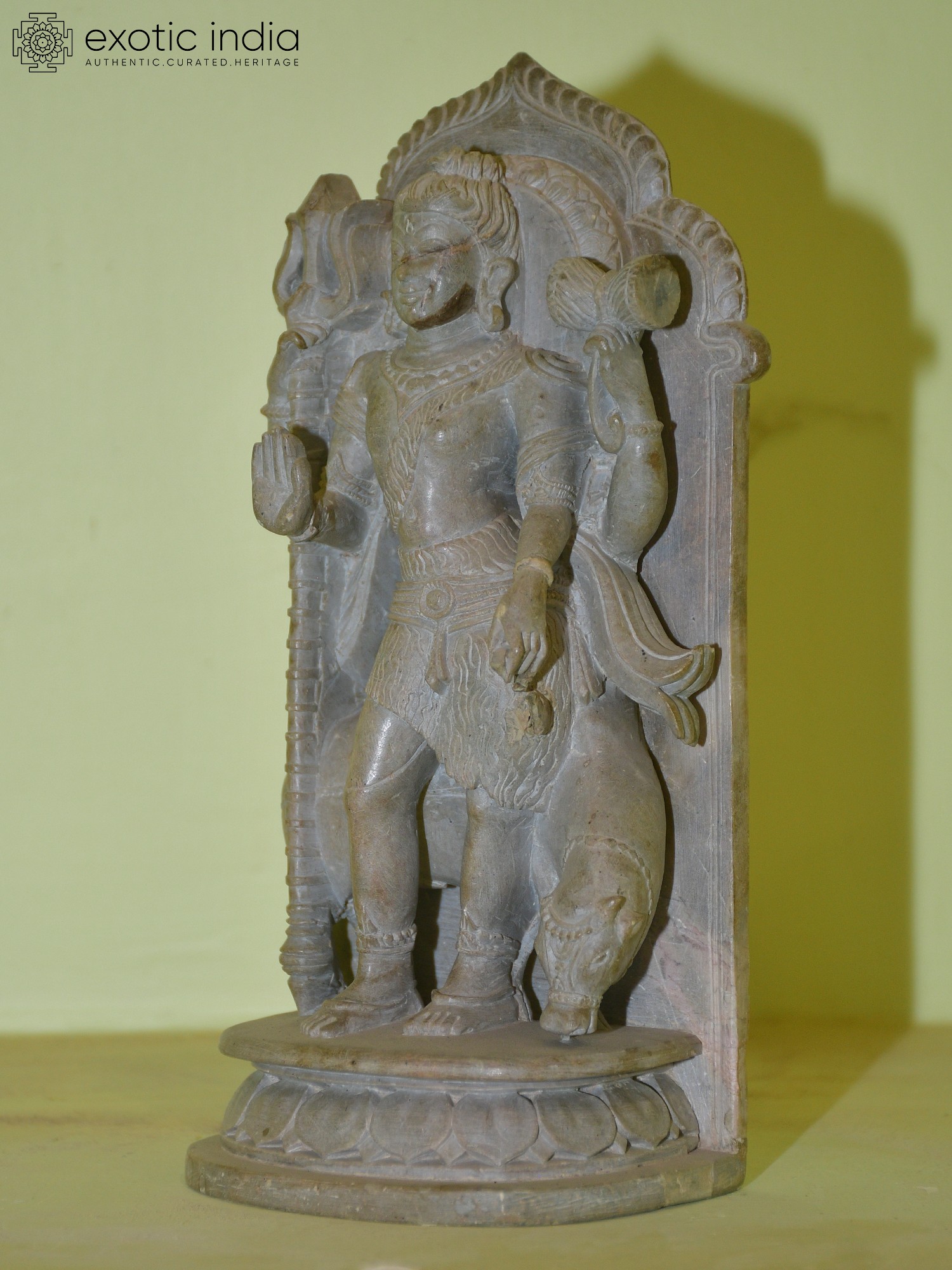 18" Lord Hanuman Carrying Lord Ram and Laxman on His Shoulders | Red Stone Statue | Hand Carved