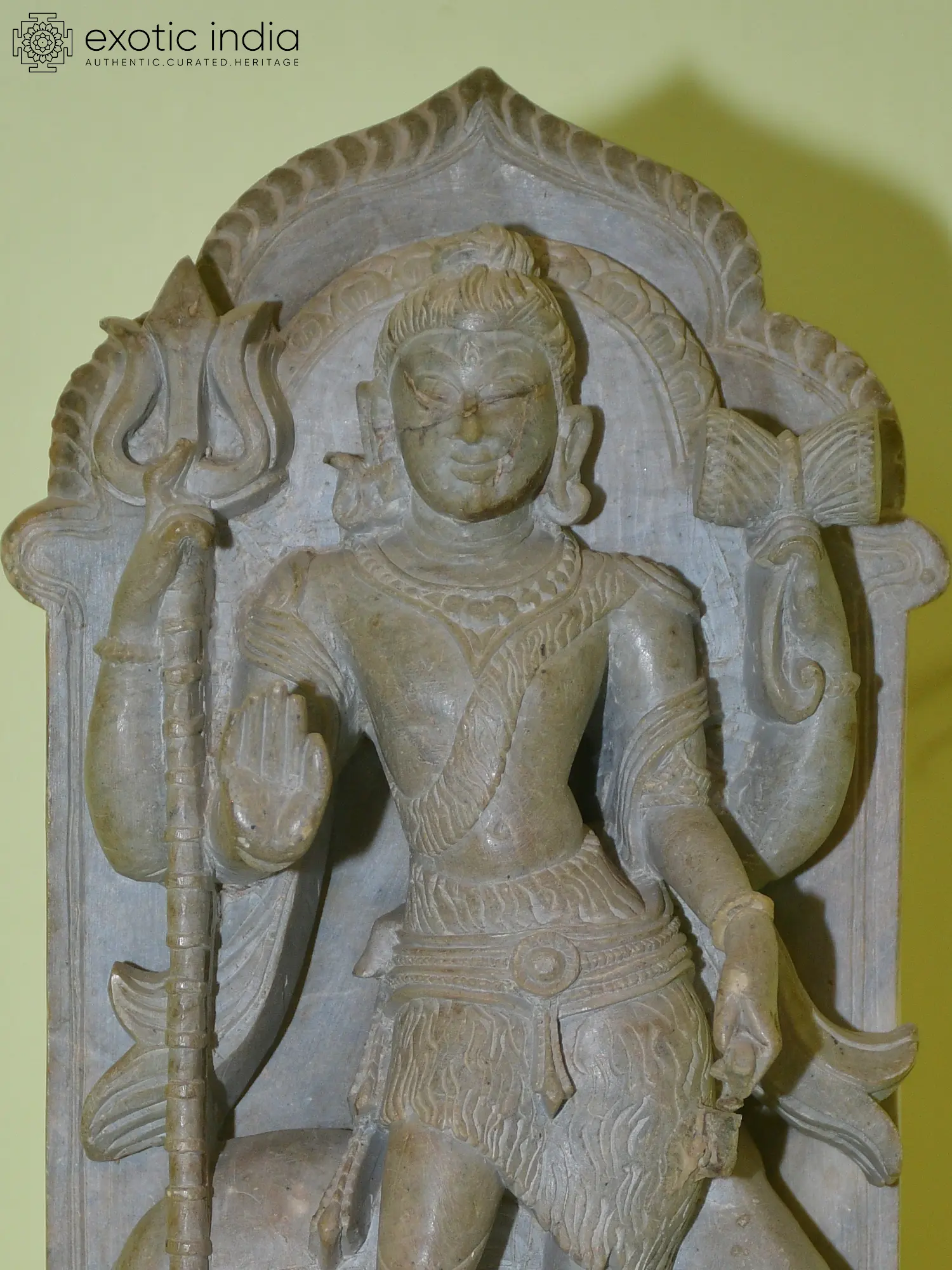 11" Radha Krishna Standing Together on the Pedestal | Green Stone Statue | Hand Carved