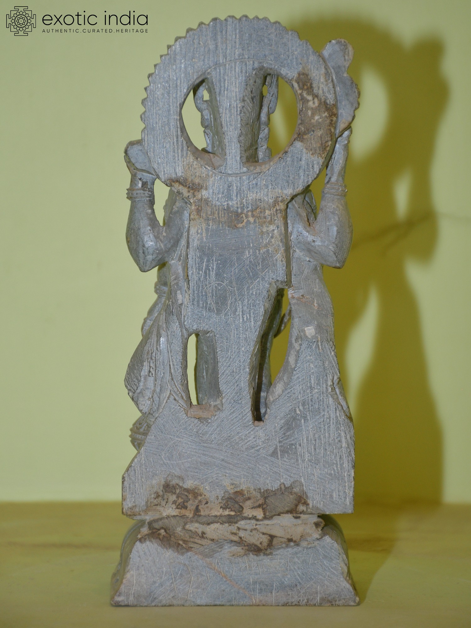 This remarkable statue originates from the culturally rich land of Odisha, a state in eastern India celebrated for its ancient traditions of stone carving. The artisans of Odisha have inherited a legacy passed down through generations, their hands imbued with the knowledge and skill to transform raw stone into vibrant expressions of faith and artistry. Each curve, each detail of this sculpture speaks of the dedication and meticulous attention that defines Odishan craftsmanship. The choice of Orissa stone, known for its durability and unique texture, lends an authentic and timeless quality to the piece, further enhancing its spiritual aura and aesthetic appeal. This artwork is not merely an object but a tangible piece of cultural heritage, a connection to a tradition that has flourished for centuries, resonating with stories and beliefs that have shaped the spiritual landscape of India.