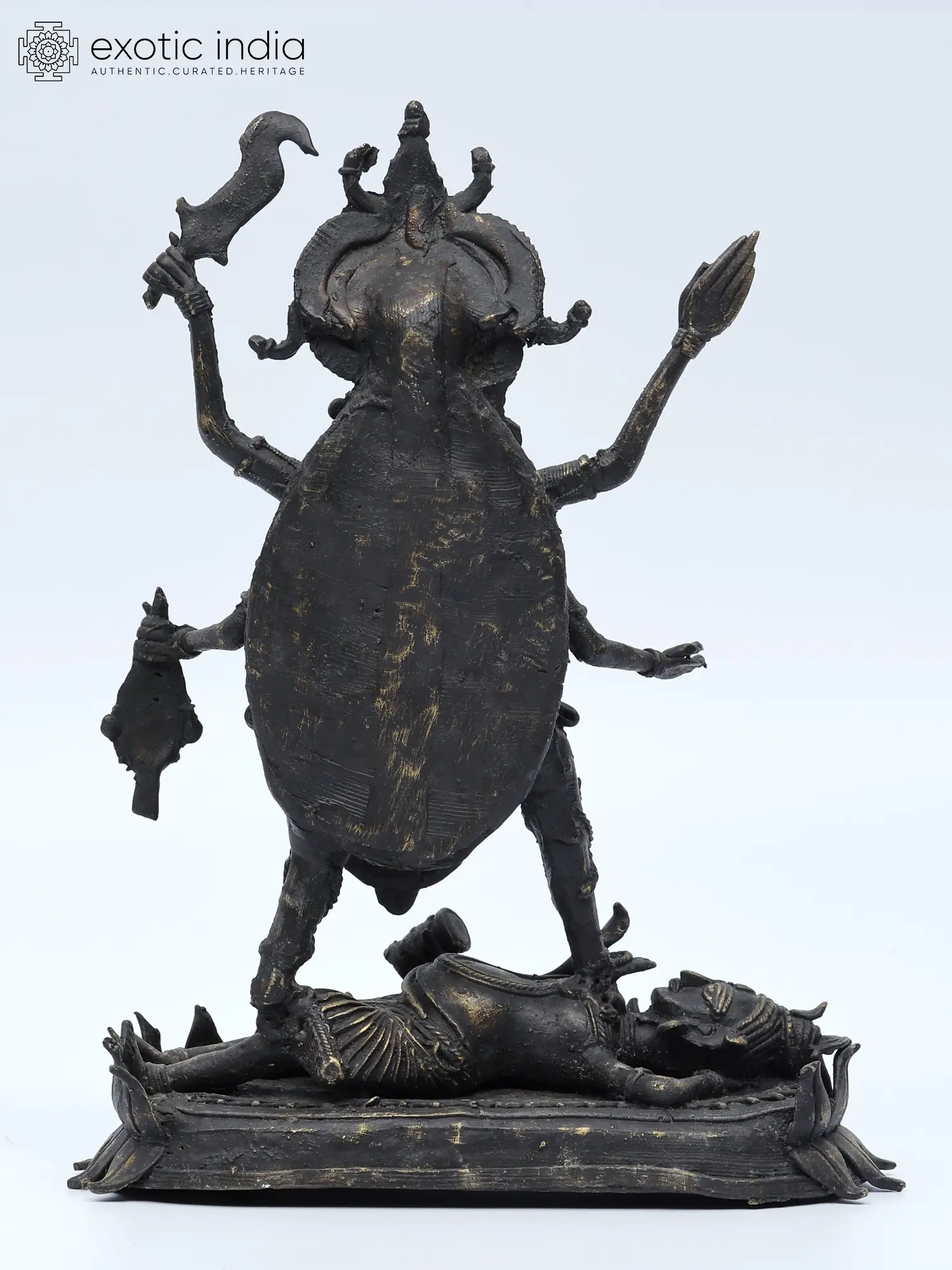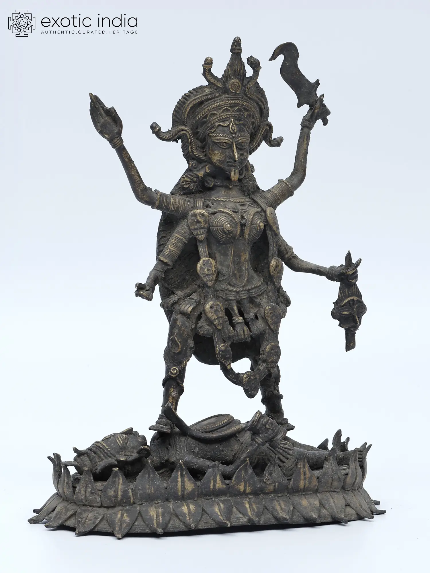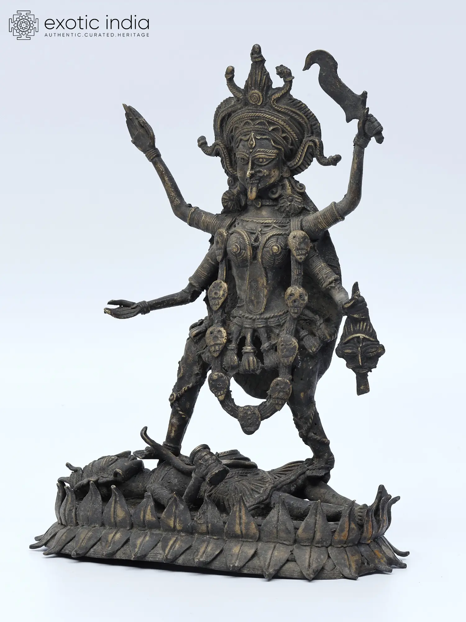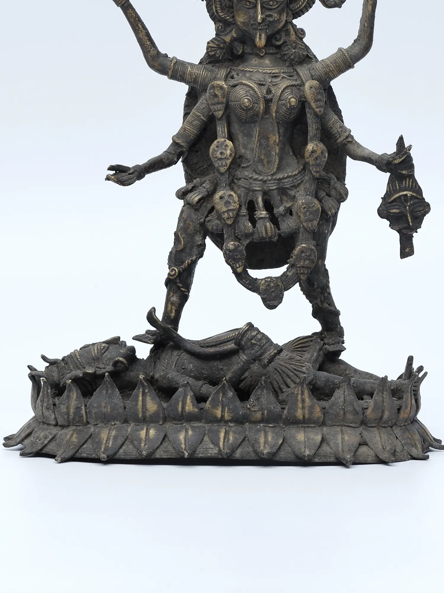 The bronze statue is a powerful and evocative representation of the fierce and protective Goddess Kali, one of the most revered deities in Hinduism.