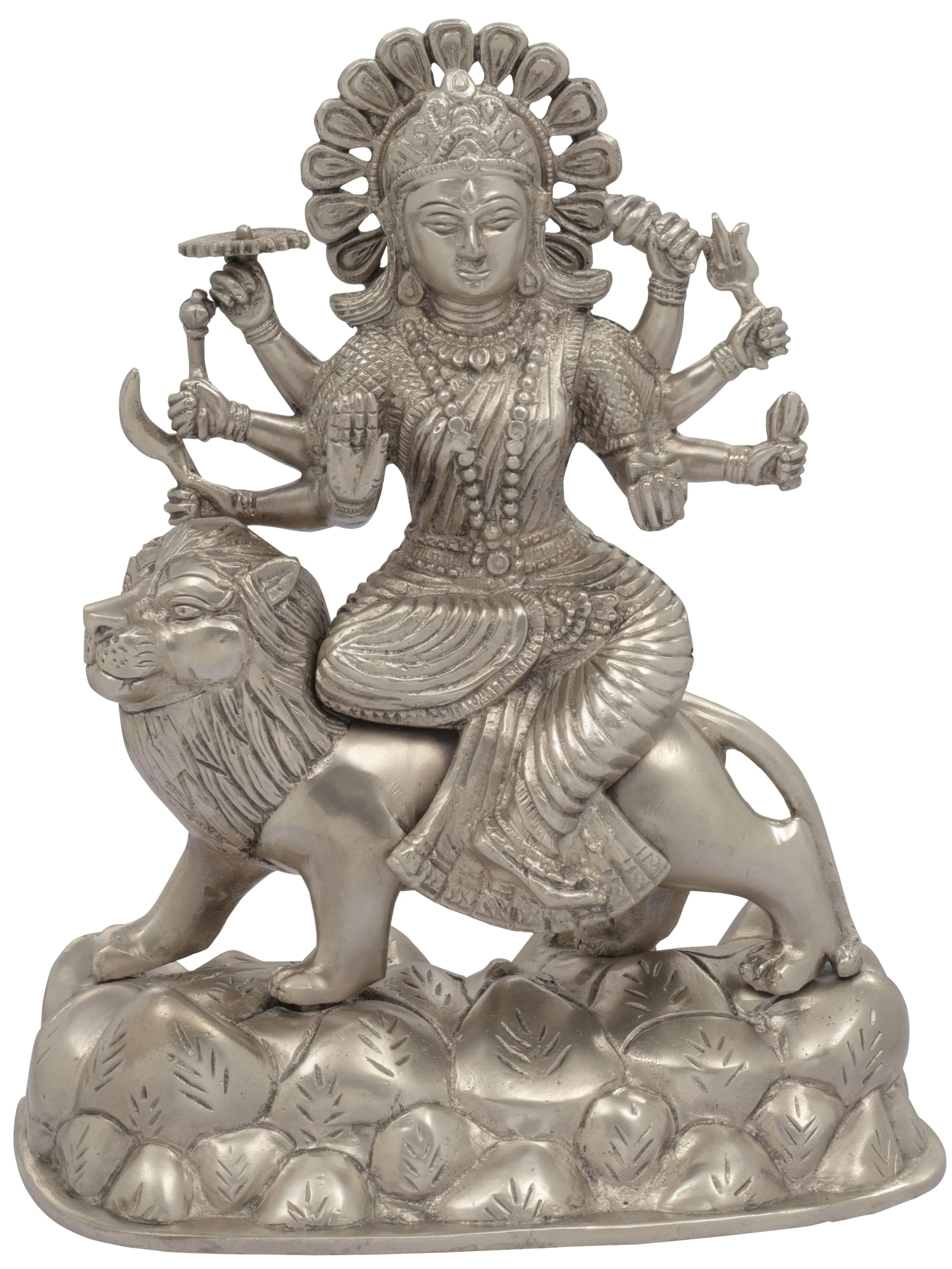 9" Mother Goddess Durga In Brass | Handmade | Made In India