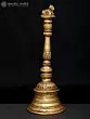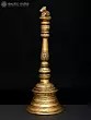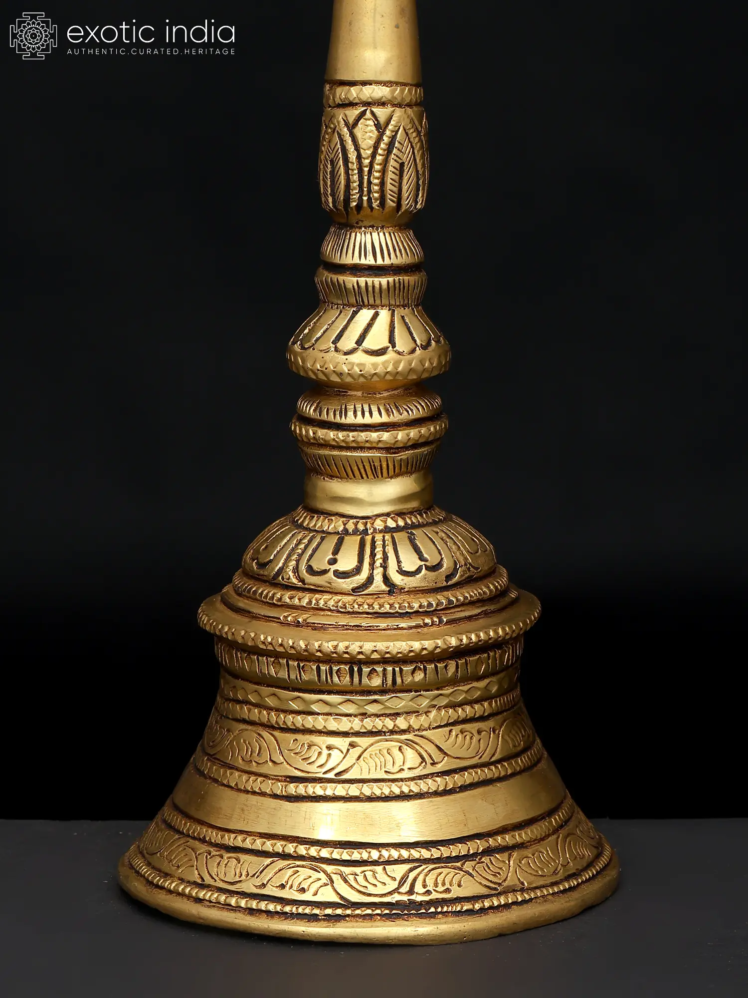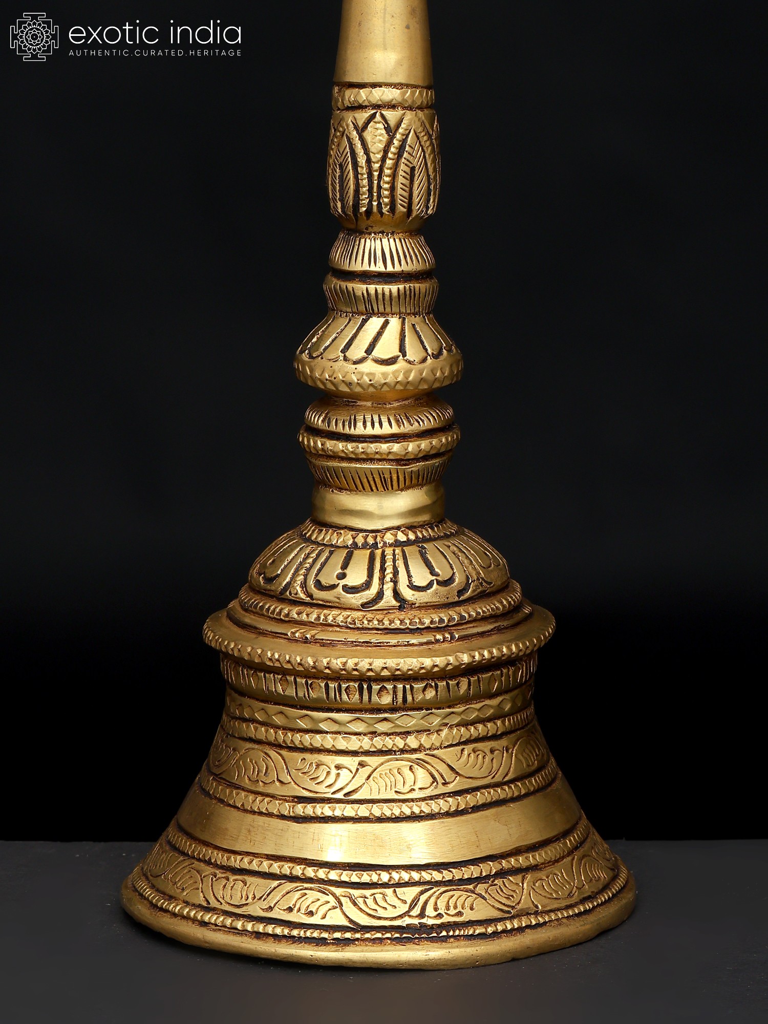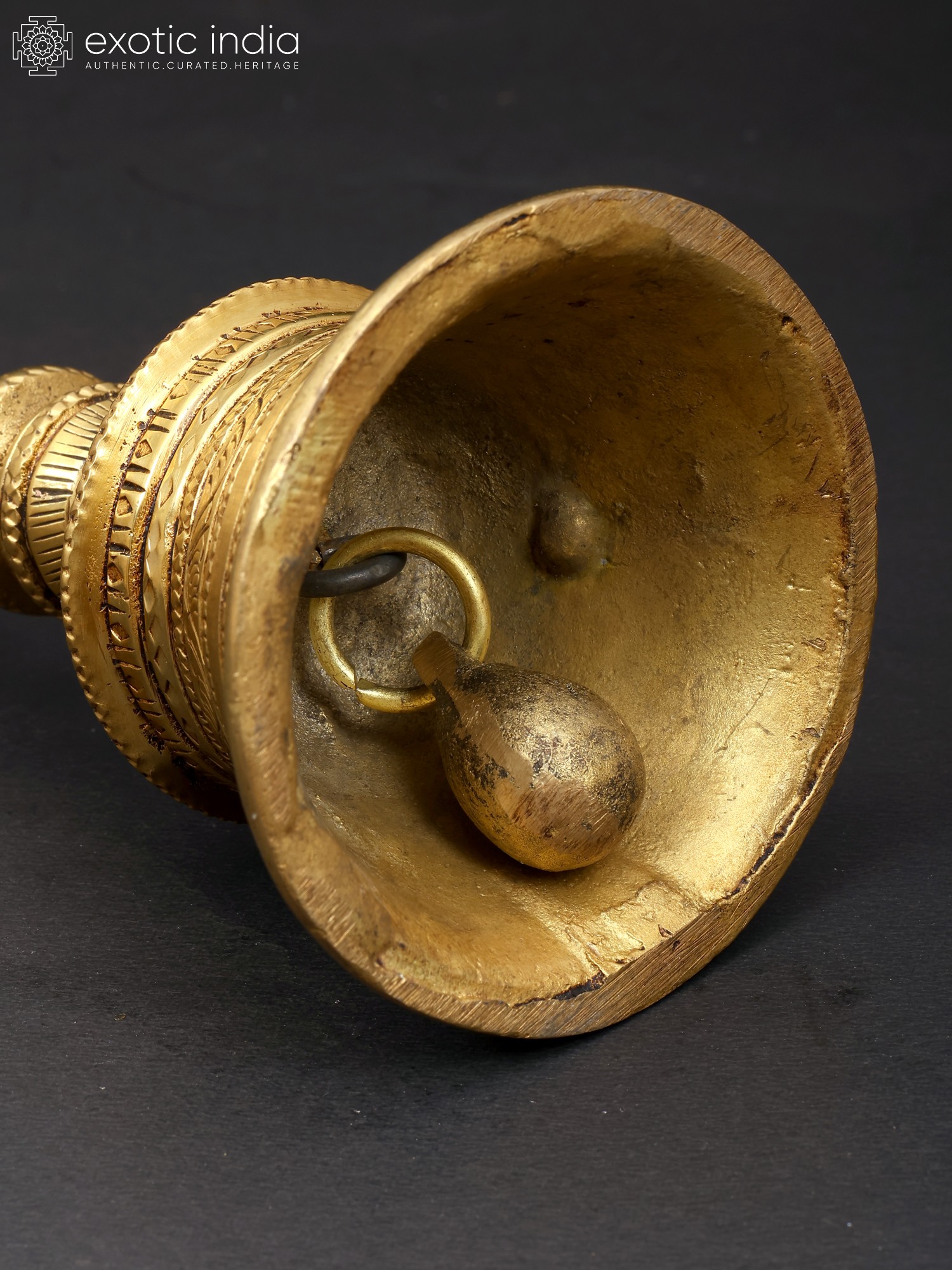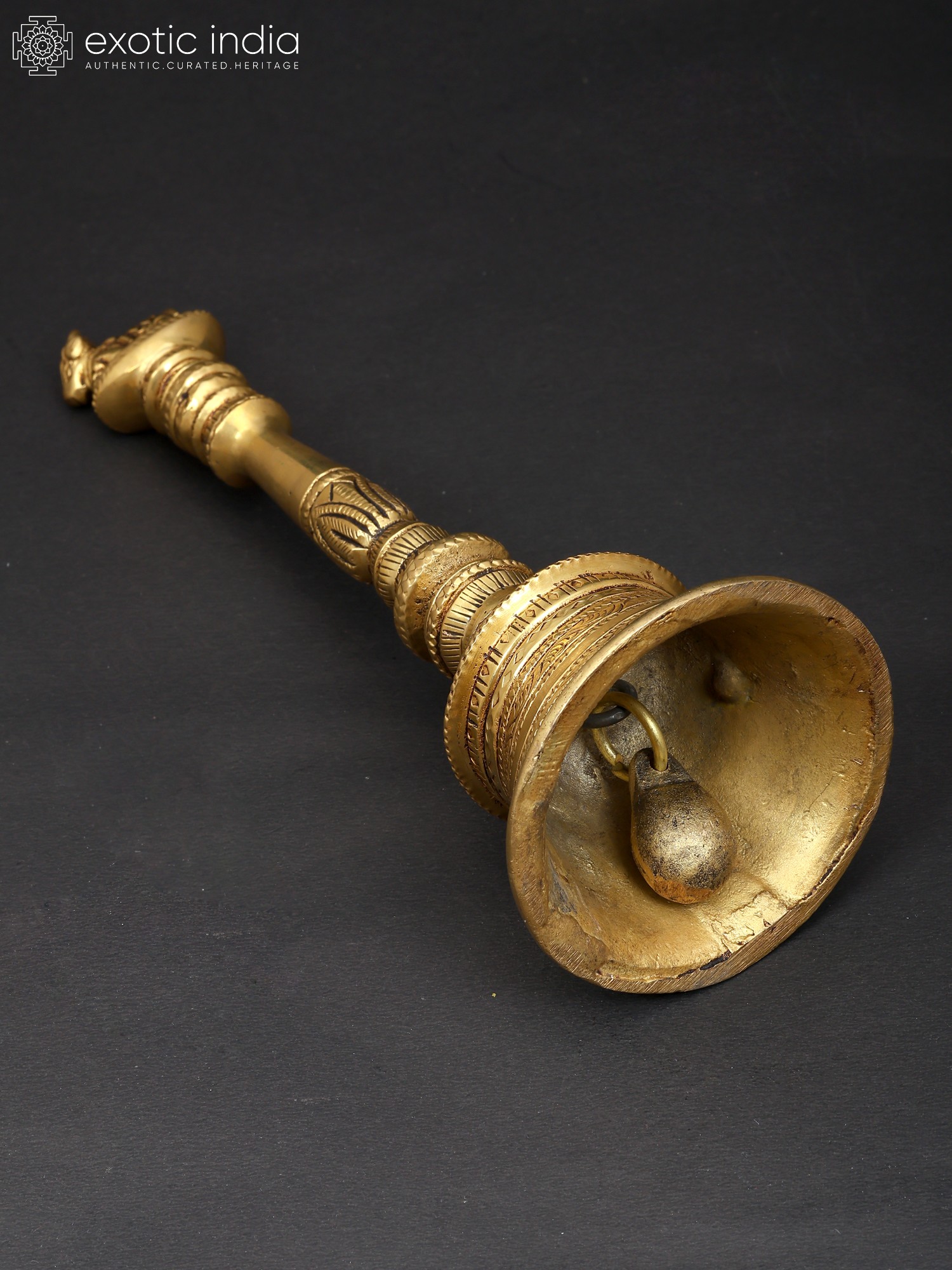 10" Ganesha Dancing Nestled in Trunk of Ganesha: Lamp and Temple Bell Wall-Hanging in Brass