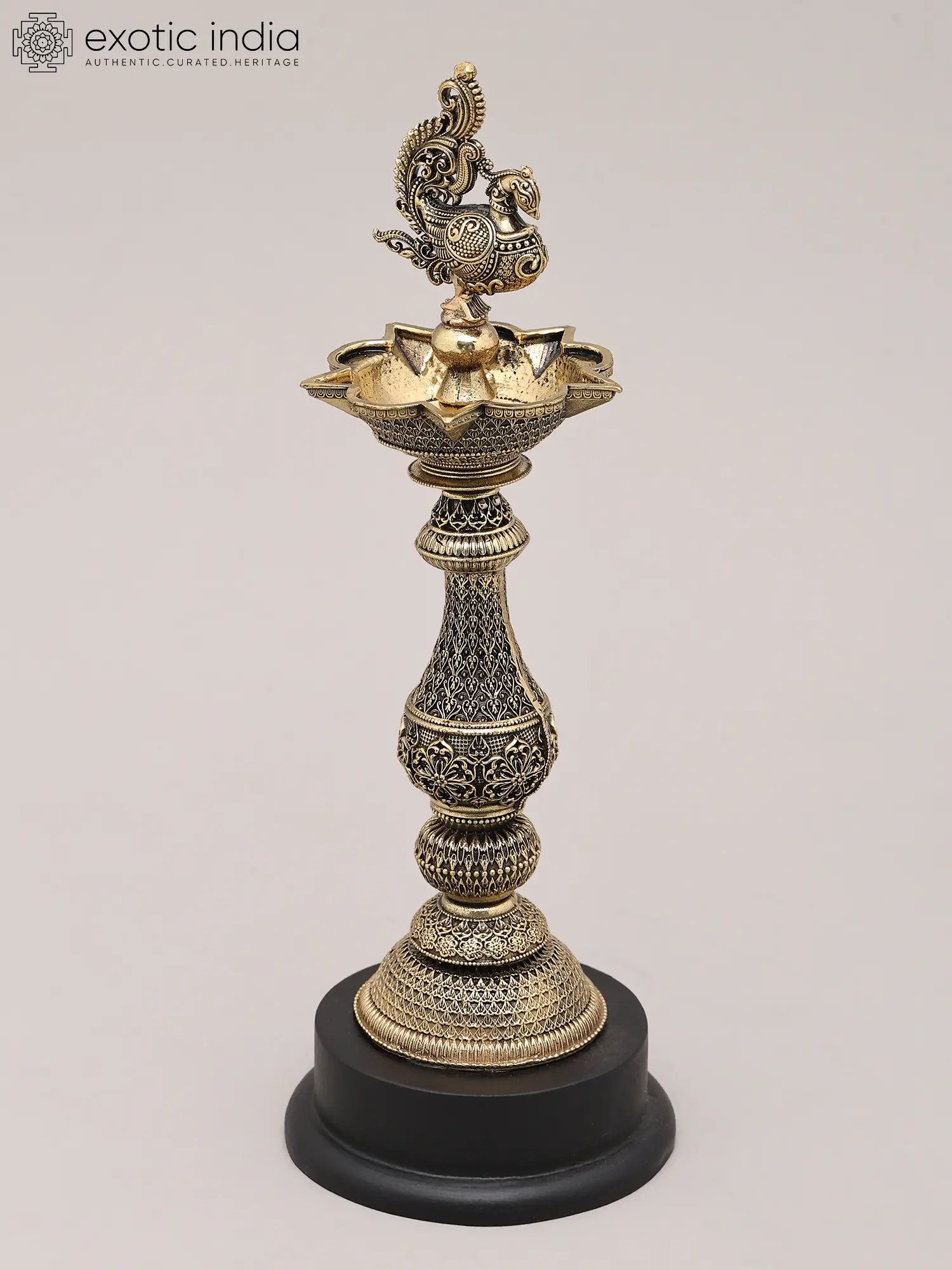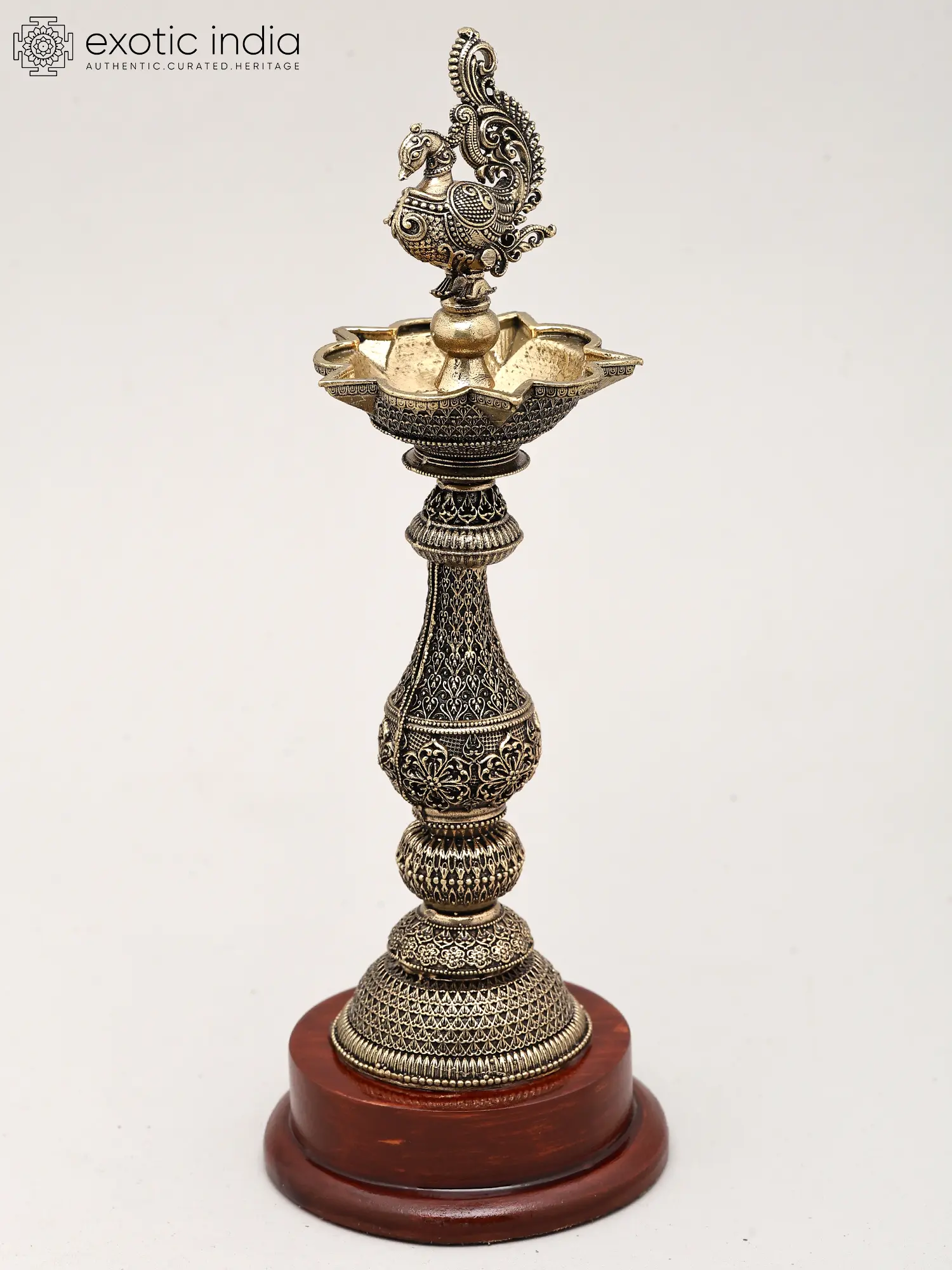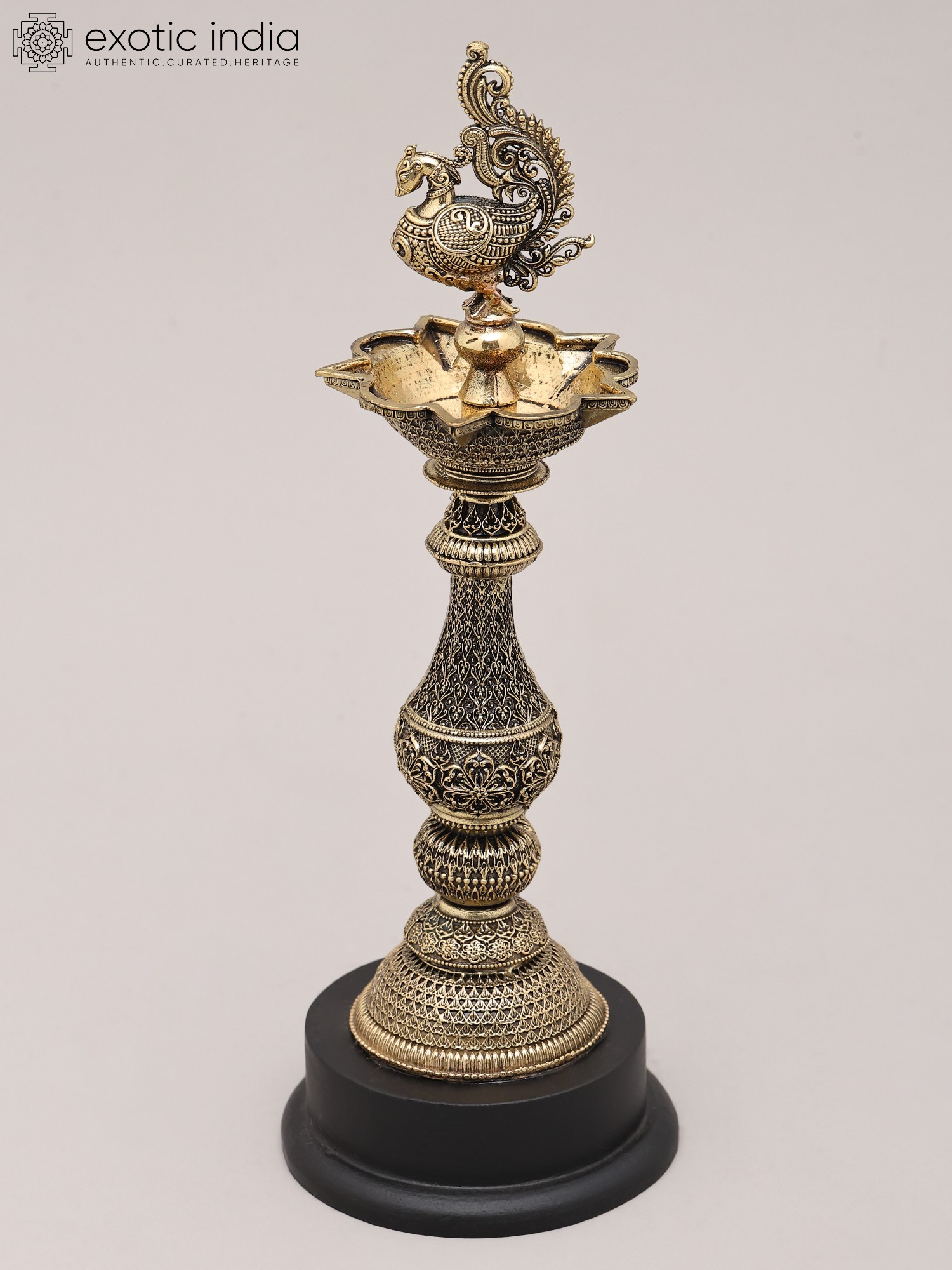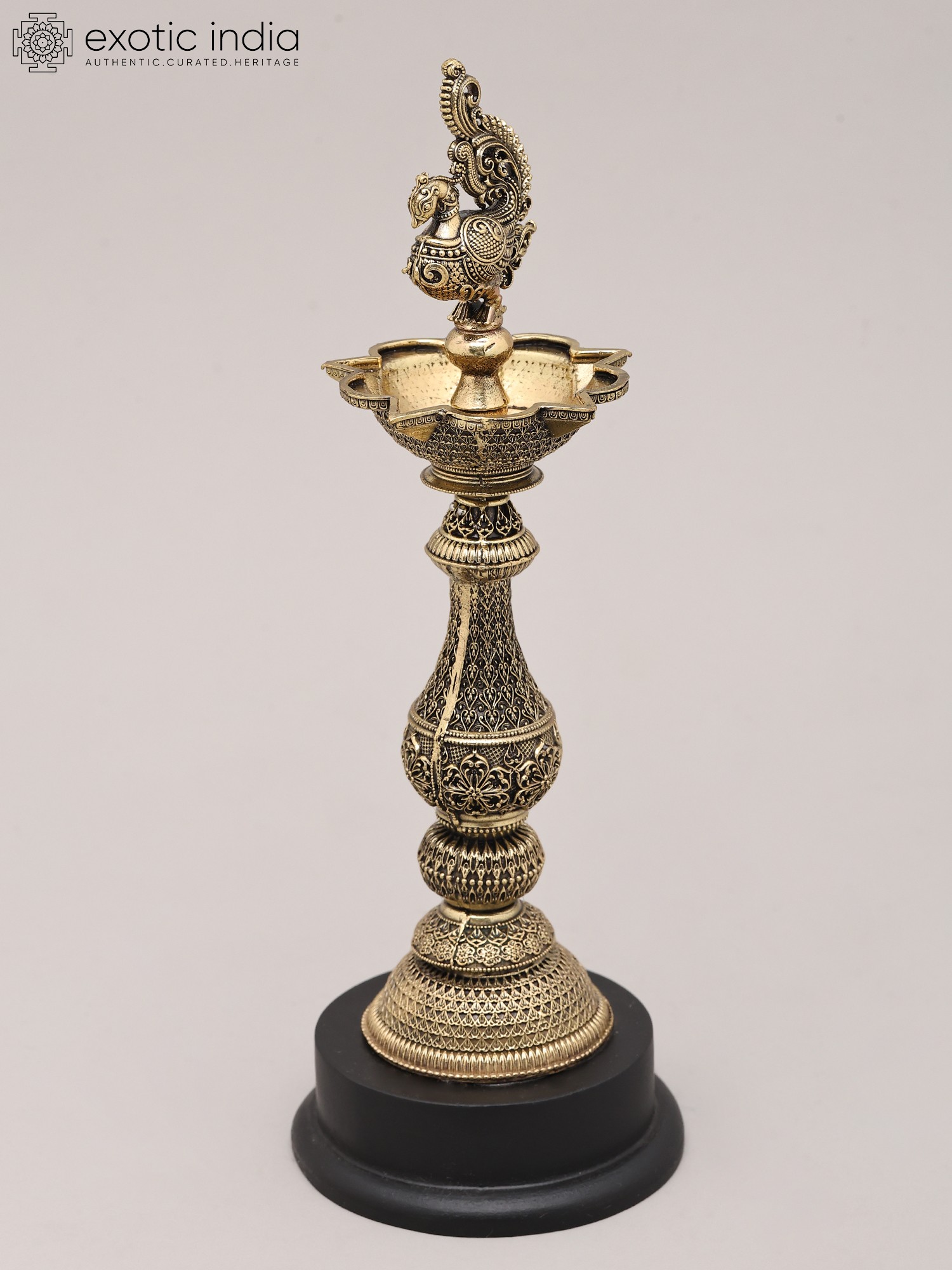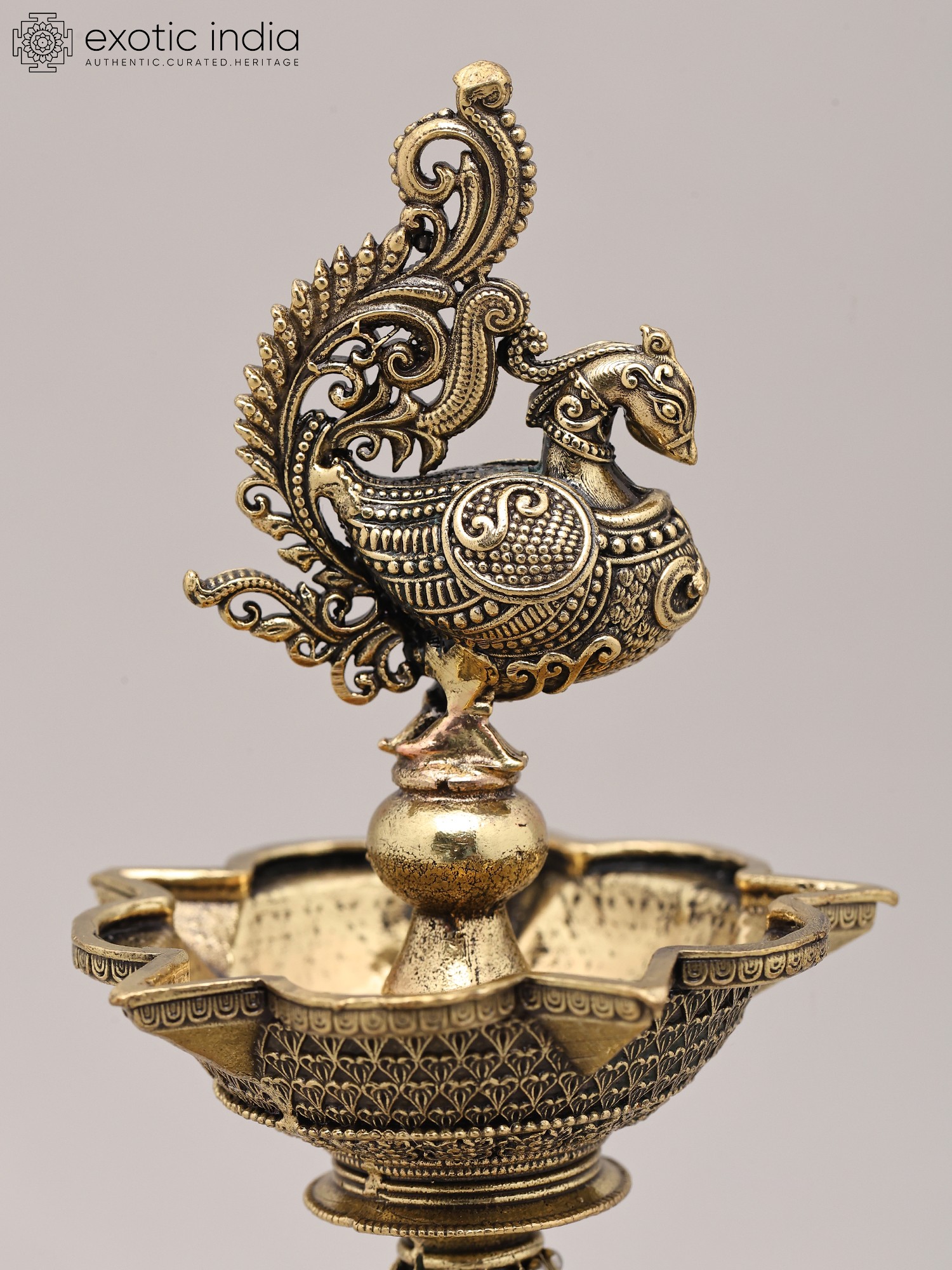 28" Multi Wicks Large Peacock Lamp In Brass | Handmade | Made In India