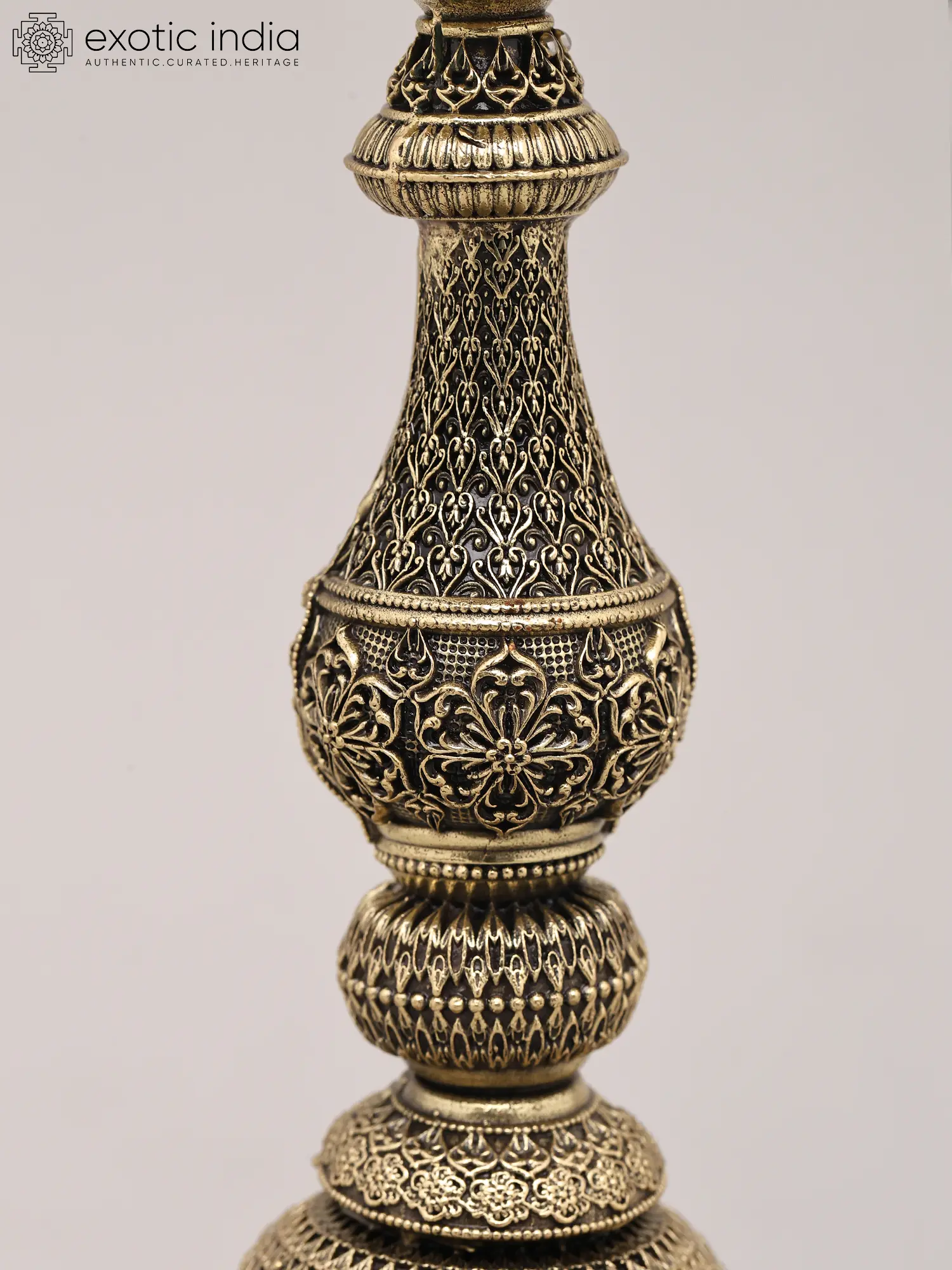 27" Brass Peacock Lamp with a WInding, Slender Stem | Indian Handcrafted Idol