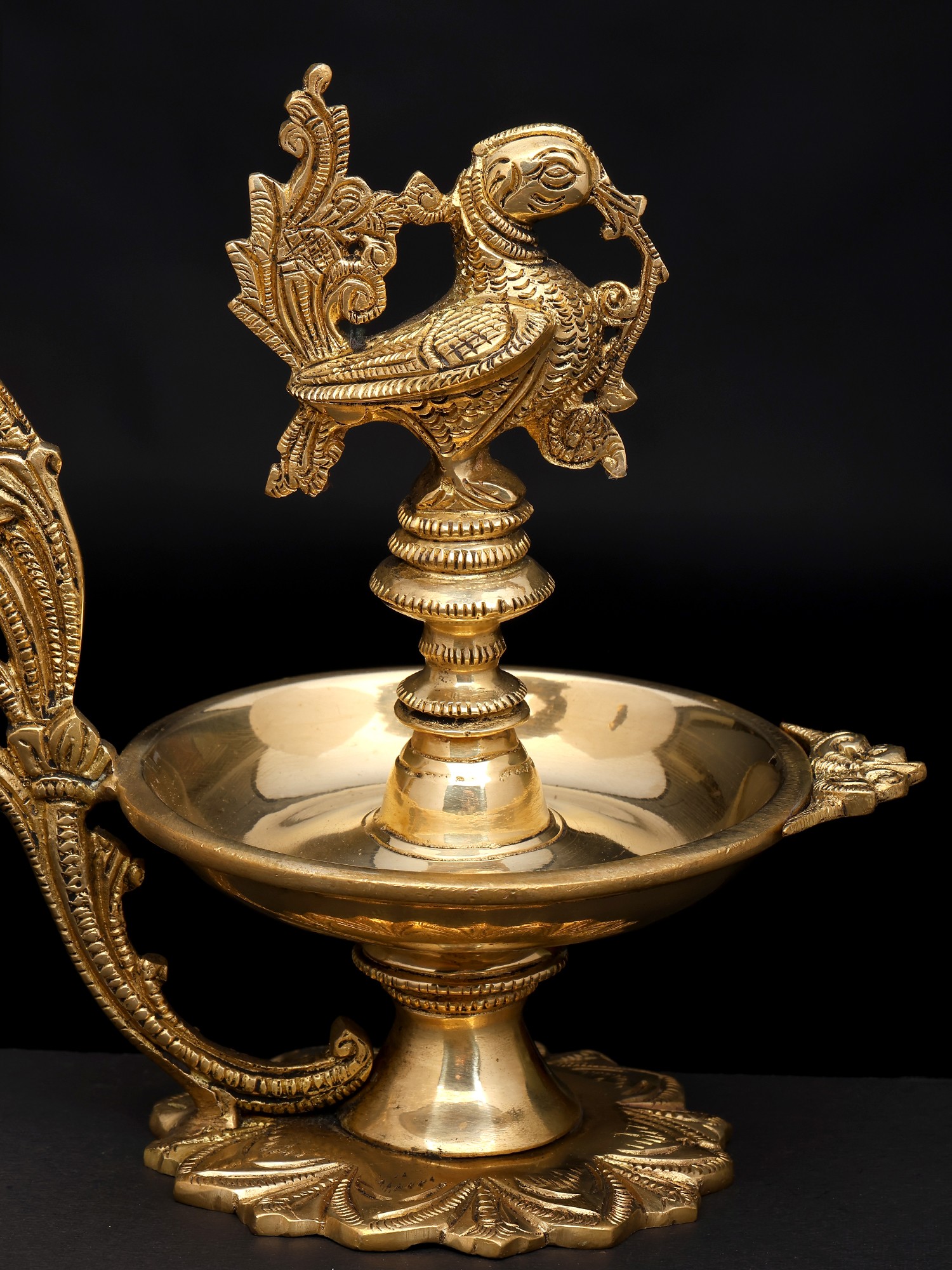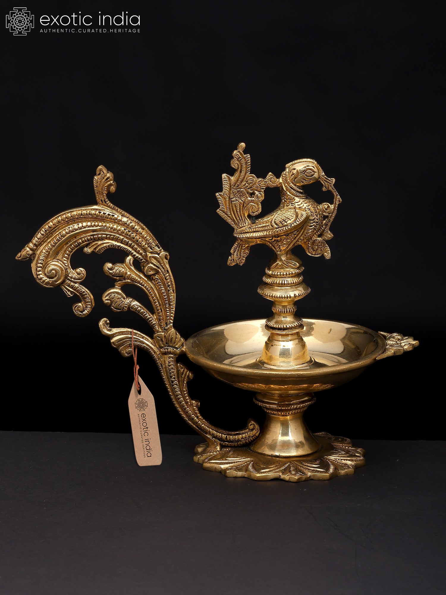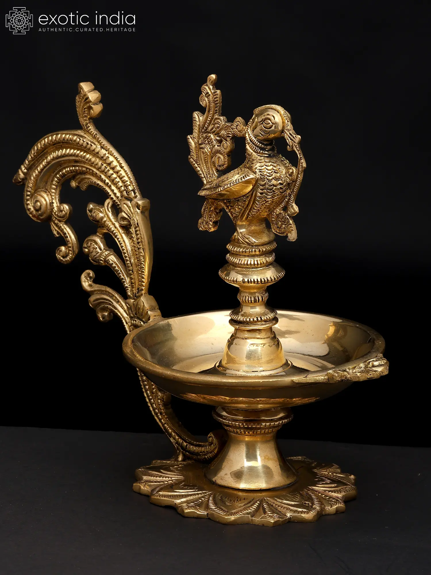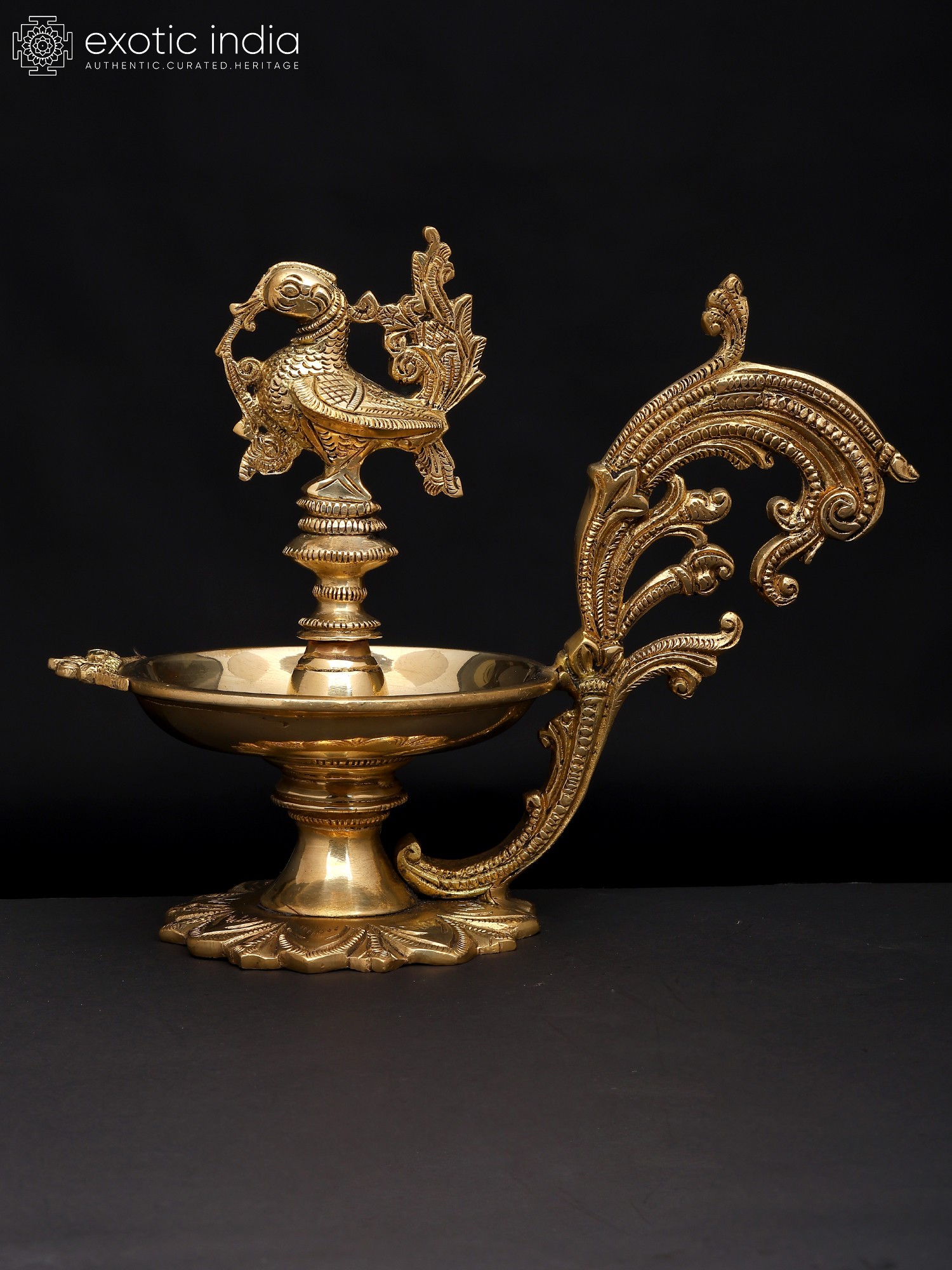 7" Pair of Mayur (Peacock) Lamps in Brass | Handmade | Made in India