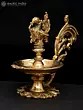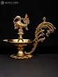 Whether placed in your puja room, as a statement piece in your living area, or as a thoughtful gift, this peacock lamp brings an aura of serenity and divinity. Its warm, flickering light can transform any setting, creating an atmosphere of peace and contemplation. The lamp's substantial brass construction ensures stability and durability, making it a cherished item that can be passed down through the family, carrying with it stories and traditions. It stands as a beautiful reminder of India's vibrant artistic traditions and the enduring power of spiritual symbolism.