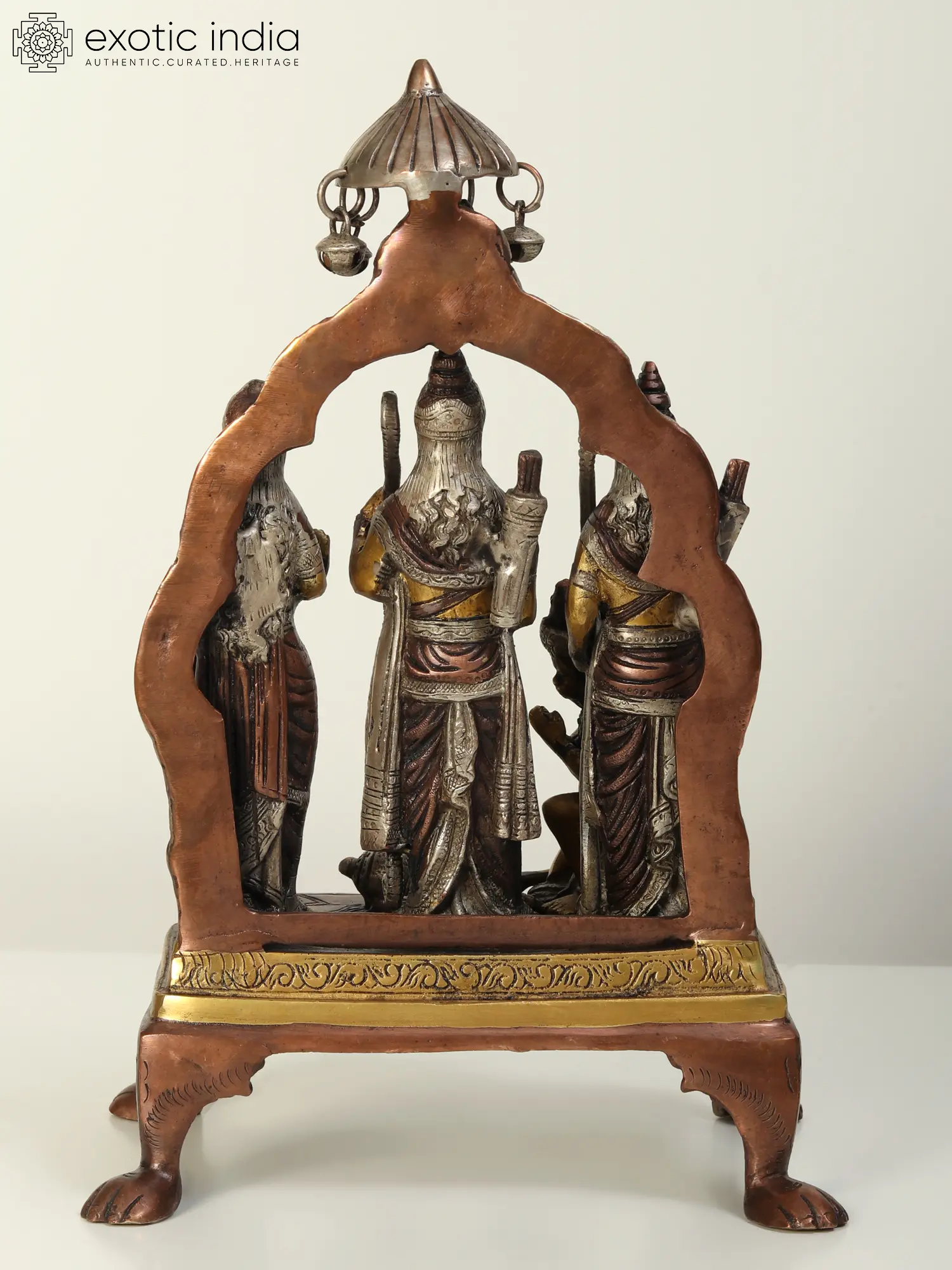 This magnificent sculpture, which is handcrafted by talented Indian artisans, vividly depicts the famous tale of Lord Rama, Sita, Lakshman, and Hanuman. Rama's divine journey is depicted in detail in the statue, which stands as a testament to his unwavering devotion to righteousness and his provision of protection for his people. With its exquisite trinkets dangling from a parasol, the brass figure of Rama Durbar embodies the everlasting elegance of Indian handicrafts. It is a captivating masterwork that takes you right to the center of old traditions and spirituality.