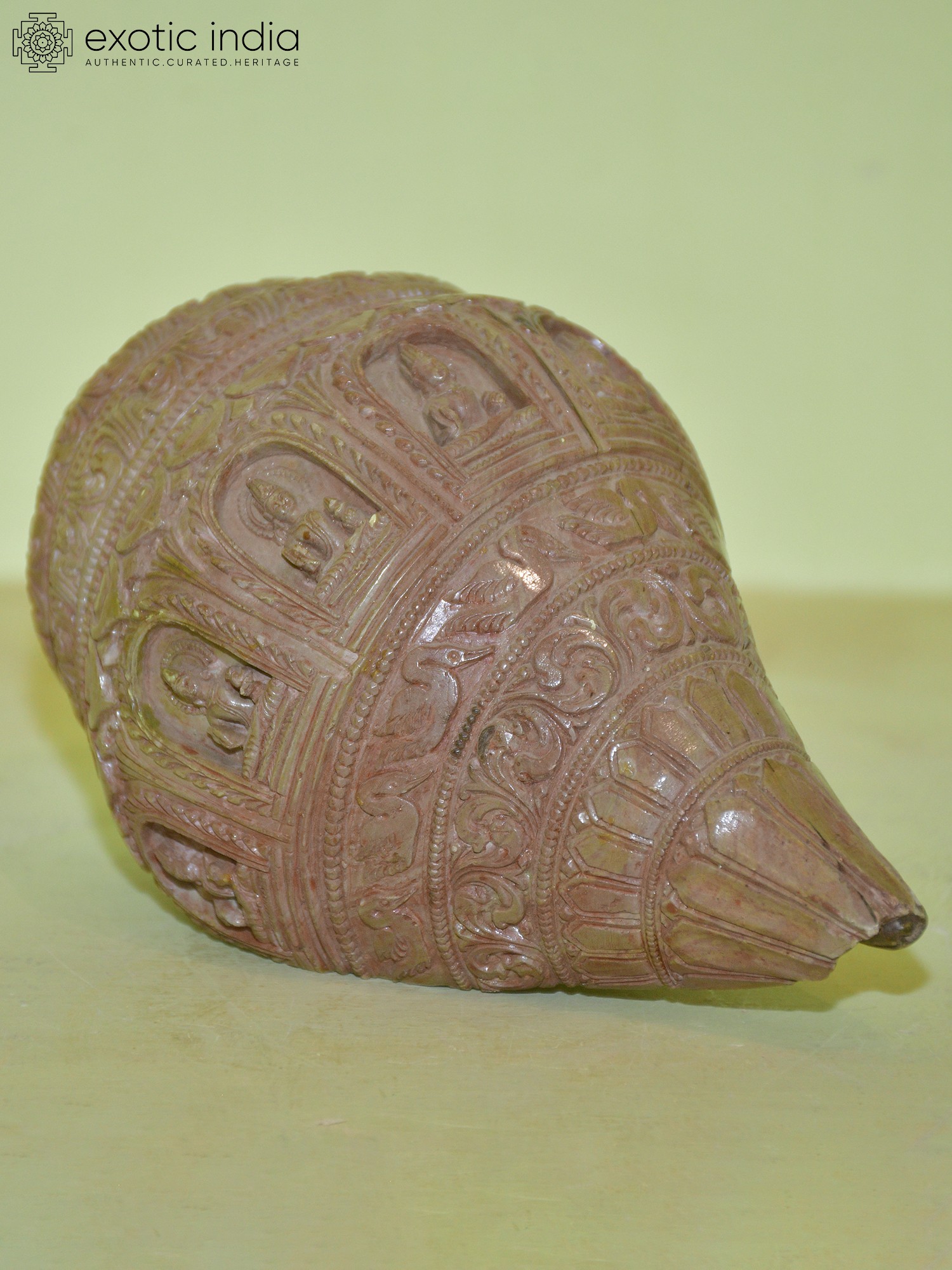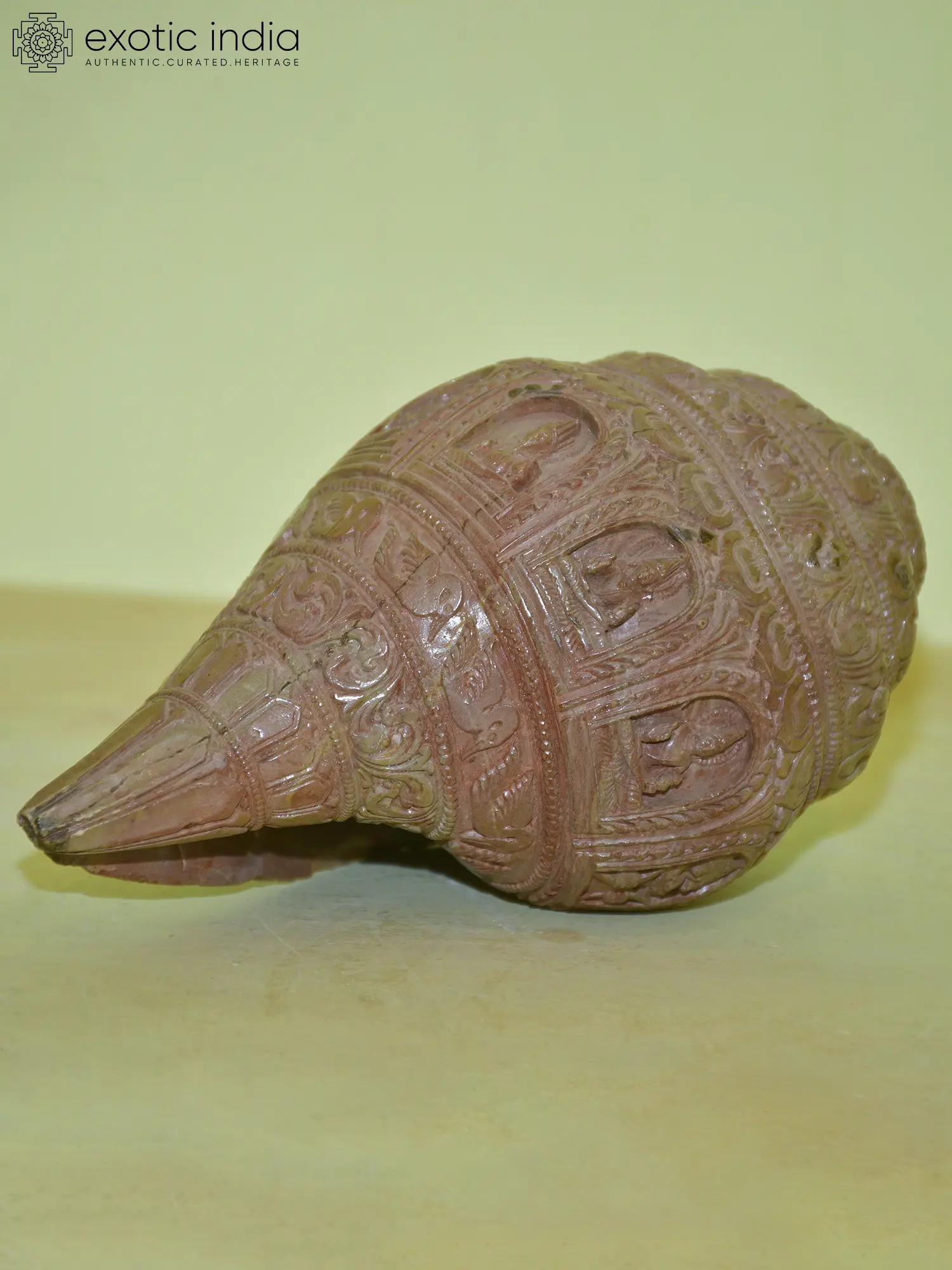 9" Hand-held Conch Ganesha Statue in Brown and Golden Hues In Brass
