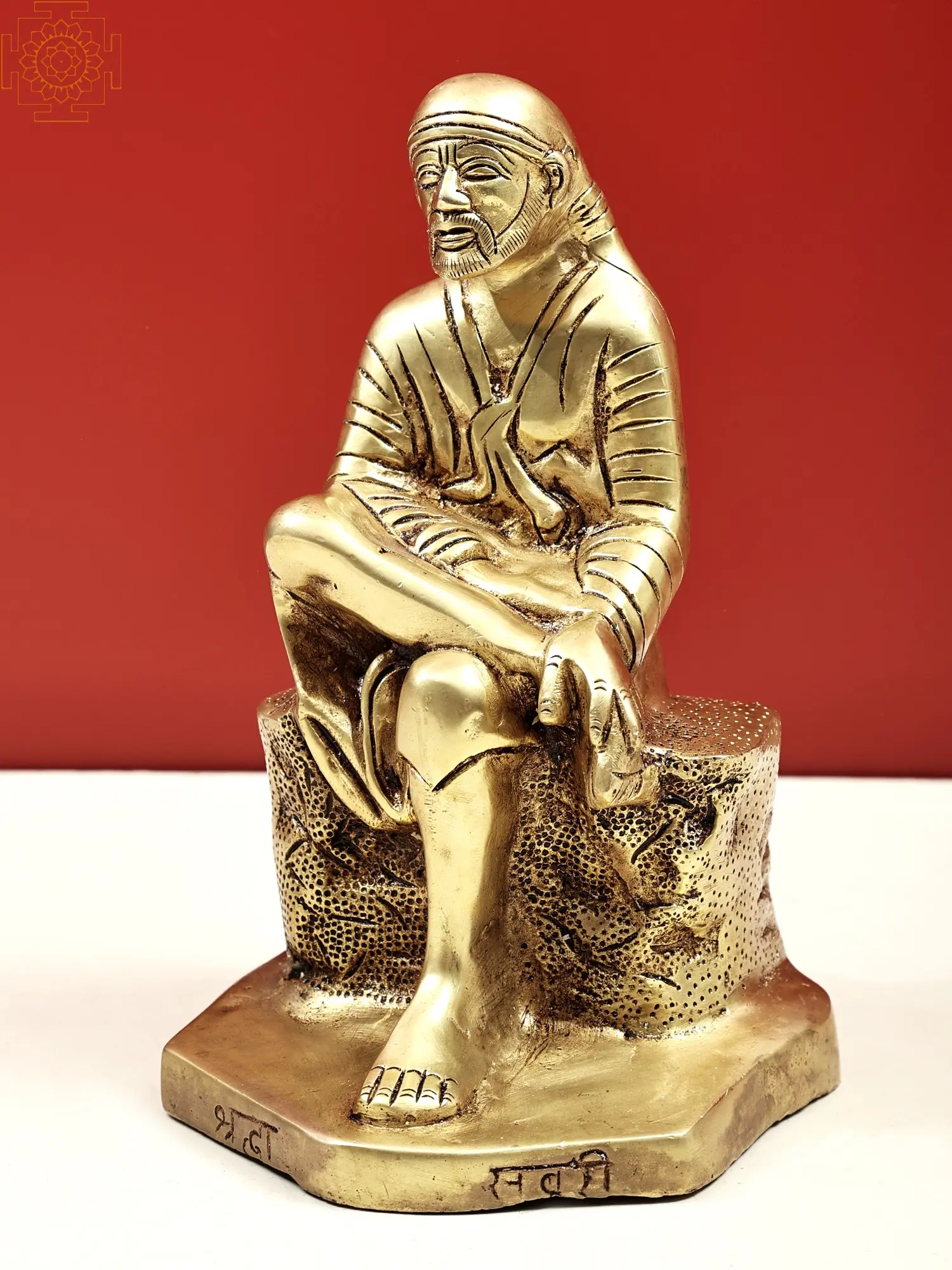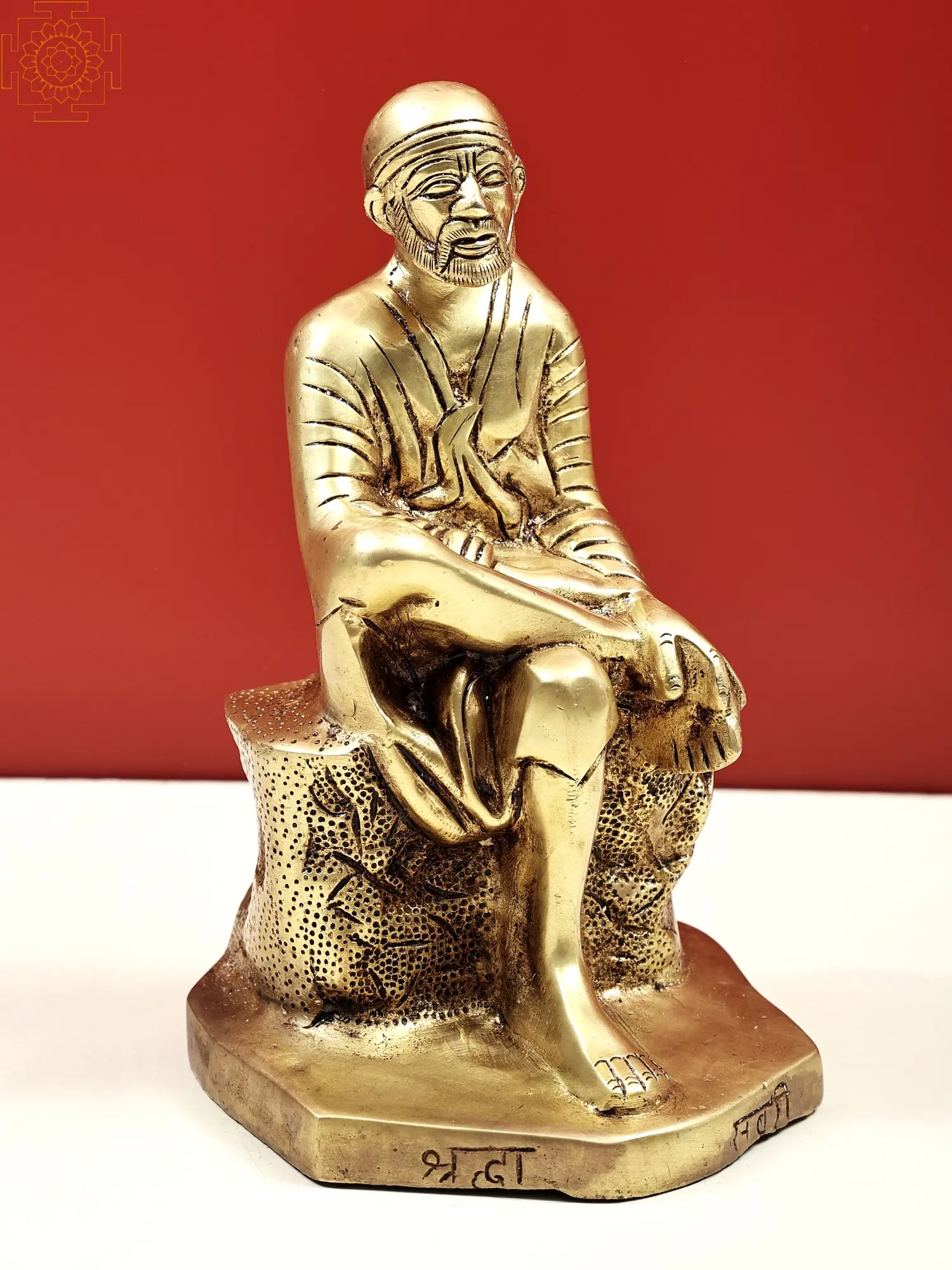 This exquisite handmade brass statue captures the serene and benevolent presence of Shirdi Sai Baba, a beloved spiritual figure revered by millions across faiths. Crafted with meticulous attention to detail, this 9-inch rendition embodies the timeless wisdom and profound peace associated with Baba. His posture, seated on a textured base, exudes a sense of calm and accessibility, inviting contemplation and devotion. The warm, golden hue of the brass lends an aura of divinity and sanctity to the sculpture, making it a focal point for any sacred space or home altar. The craftsmanship evident in this piece speaks to a heritage of skilled artisans dedicated to preserving the iconography of revered saints. Each fold of his attire, the gentle curve of his hands, and the serene expression on his face are rendered with a skill that brings the divine to life. The subtle textures on the base, reminiscent of natural rock formations, ground the divine presence in a tangible form, symbolizing the earthly existence of Sai Baba and his connection to the common people.