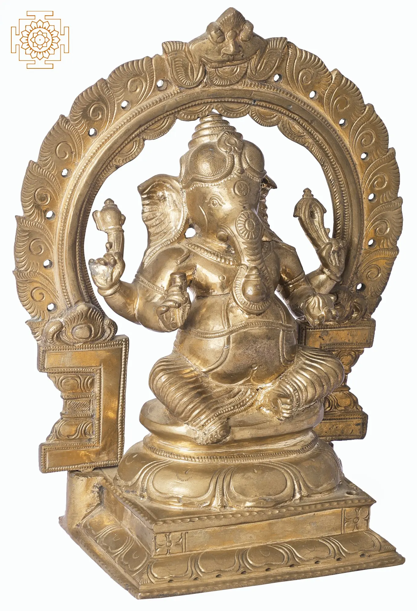 18" Handmade Sitting Ganesha Panchaloha Bronze Sculpture from Swamimalai