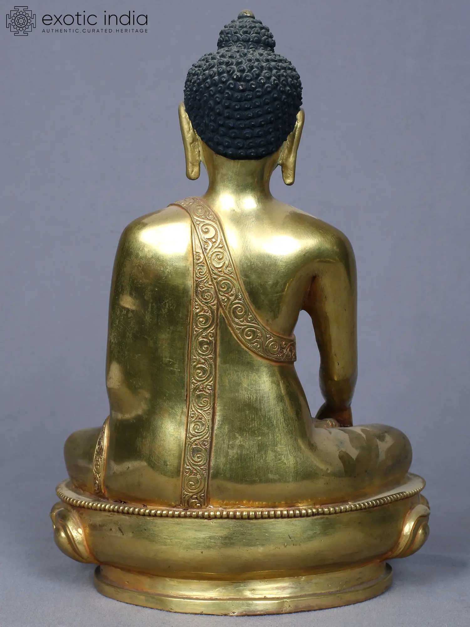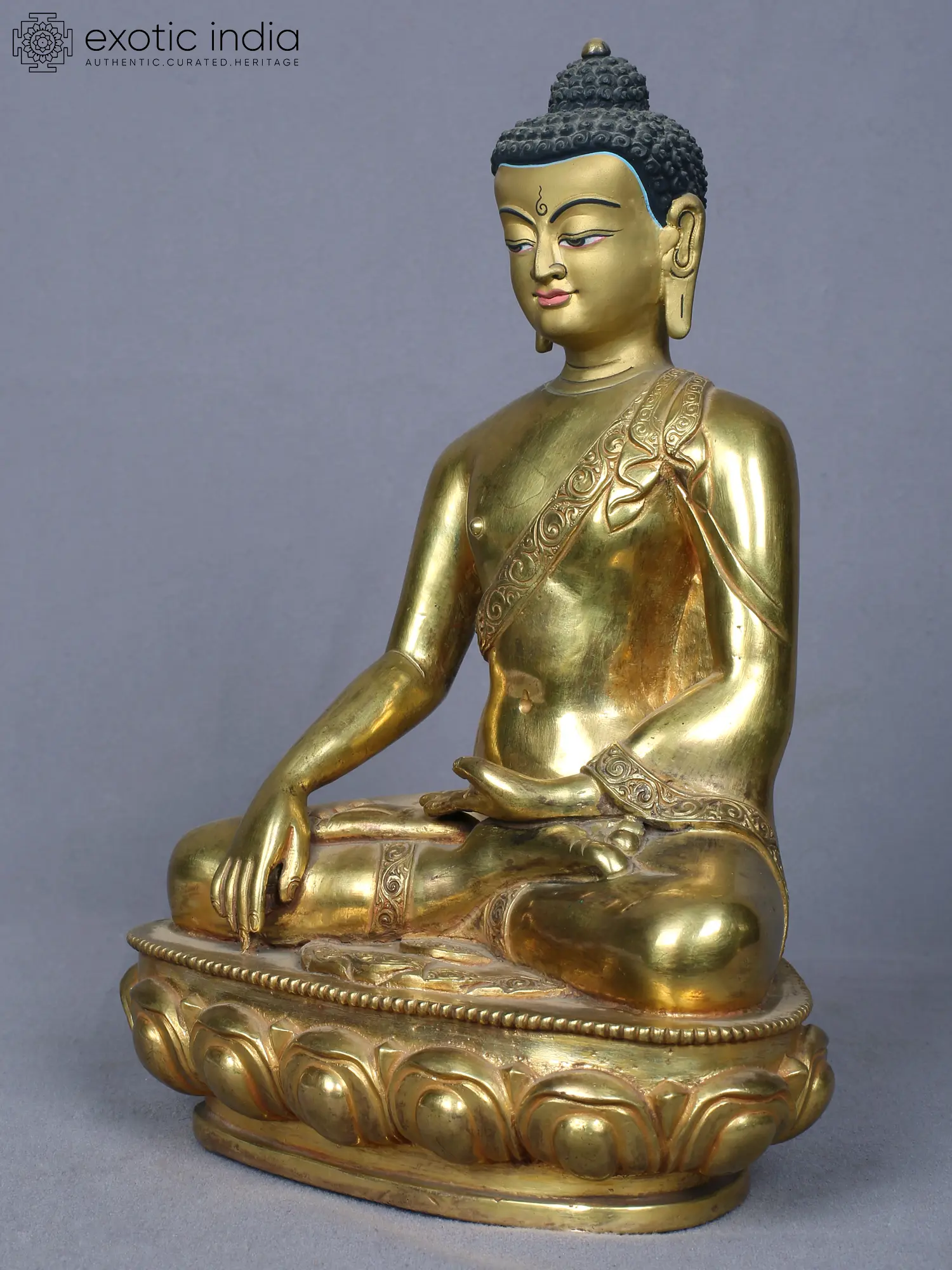 9" Sitting Shakyamuni Buddha Idol | Copper Statue Gilded with Gold from Nepal