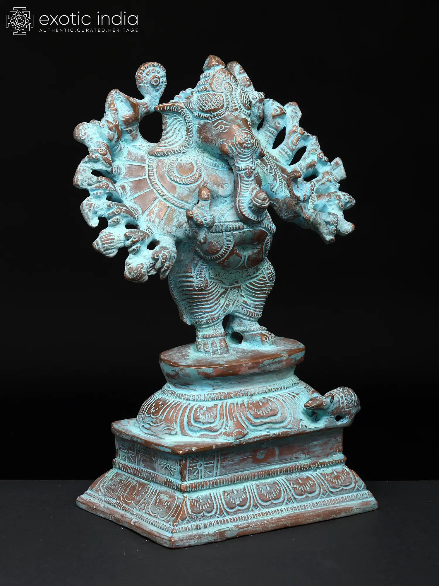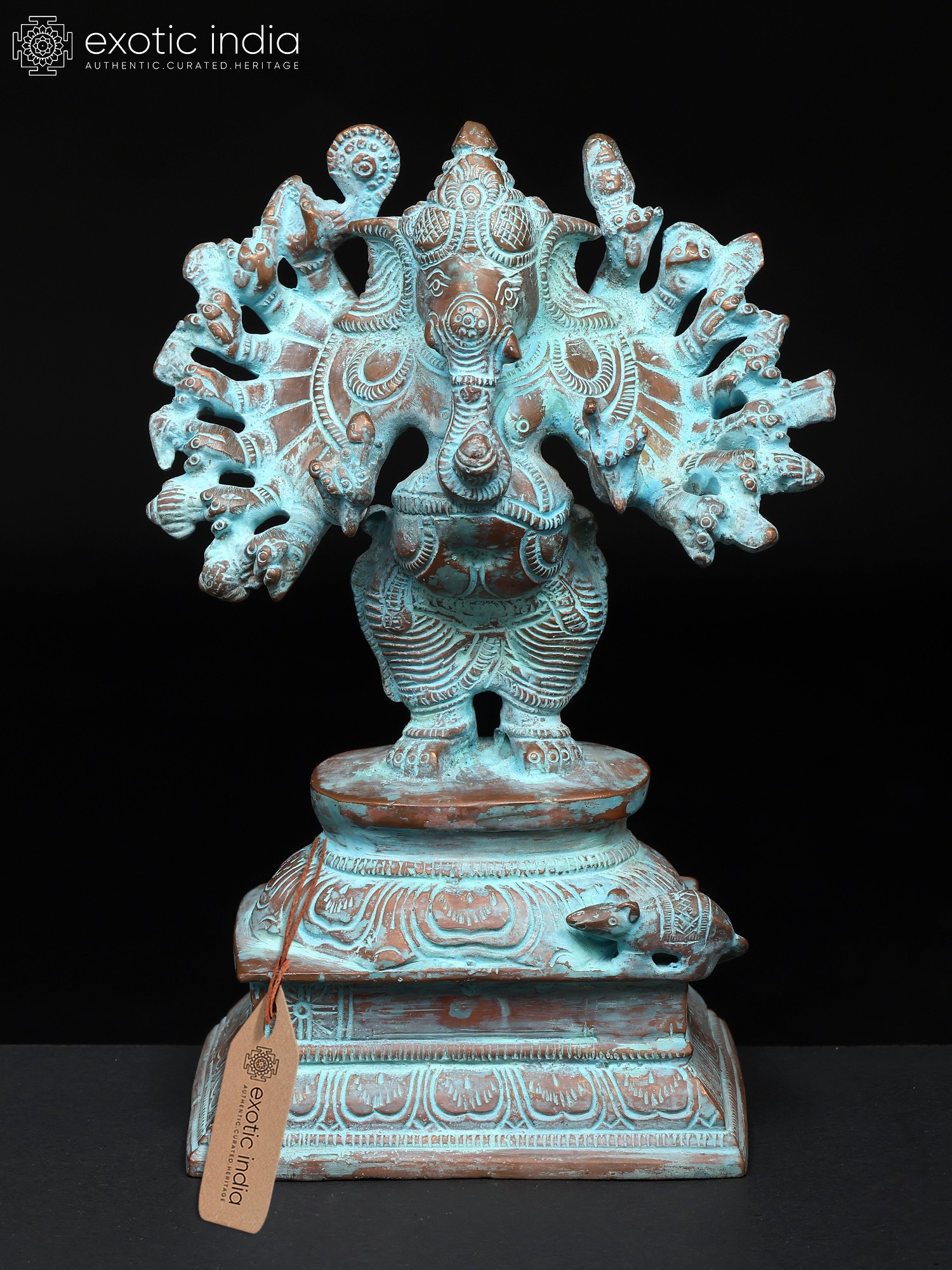 33" Chaturbhuja Ganesha | Wood Carved Wall Hanging Panel