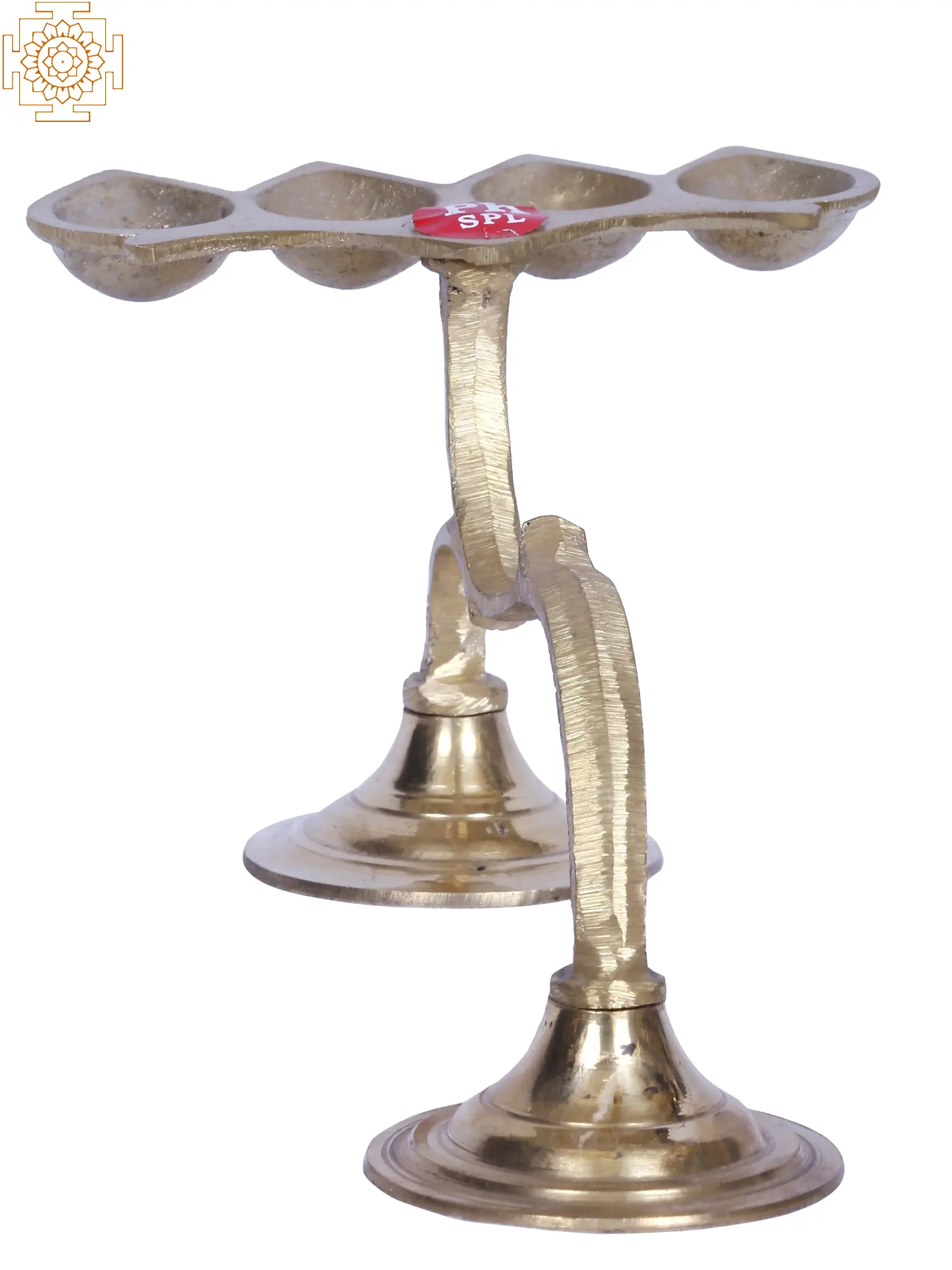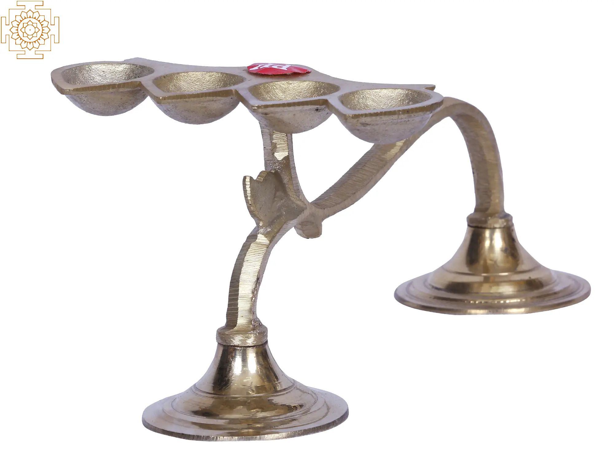 Camphor is regarded as a holy element in India when it comes to Arti. The major reason for this is that it burns cleanly and has a pleasant odor. Burning camphor also repels negative energy. This brass four-wick aarti diya may be used to burn camphor or to light an oil lamp during aarti. It comes with a strong double-legged stand and may be incorporated into any personal worship space.