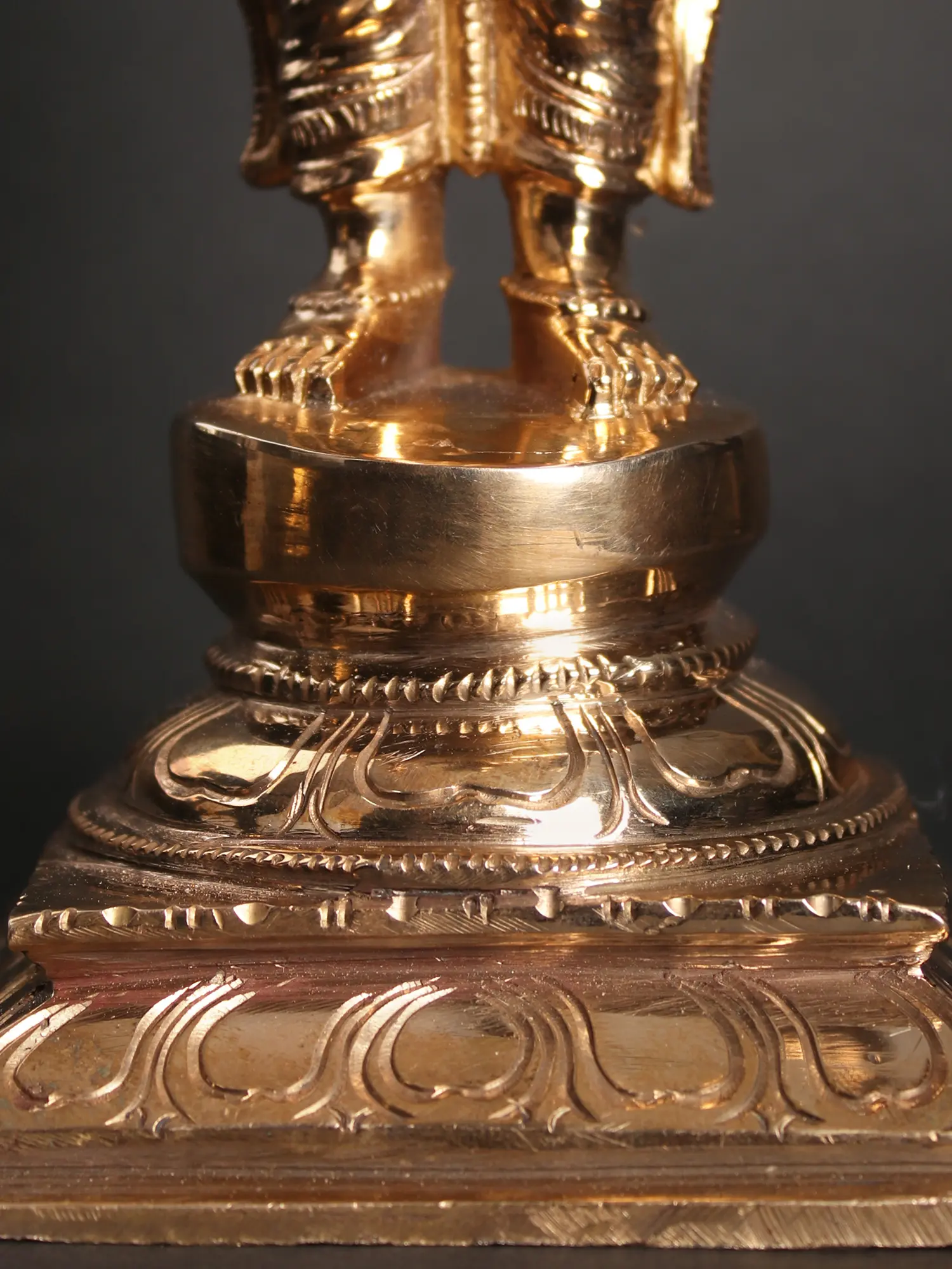 This masterpiece perfectly depicts the Lord of Riddhi and Siddhi, showcasing his benevolence and the bestower of prosperity and success. The symbolism in the statue reflects Ganesha's role as the remover of obstacles and the harbinger of good fortune, making it a visual marvel and a spiritual embodiment of divine energy. The Standing Four-Armed Lord Ganesha bronze statue is a testament to Lord Ganesha's rich cultural and religious significance in Hinduism.