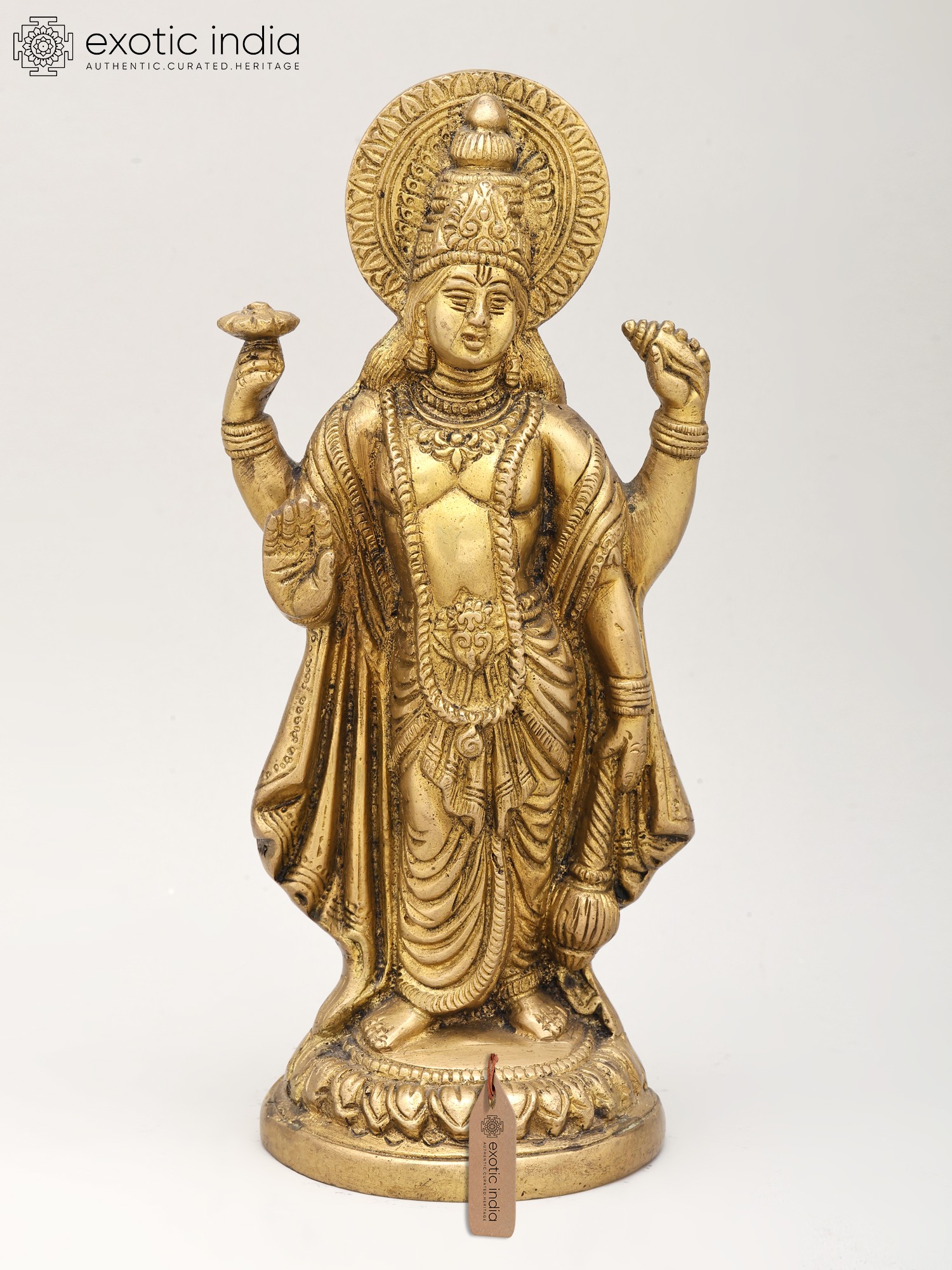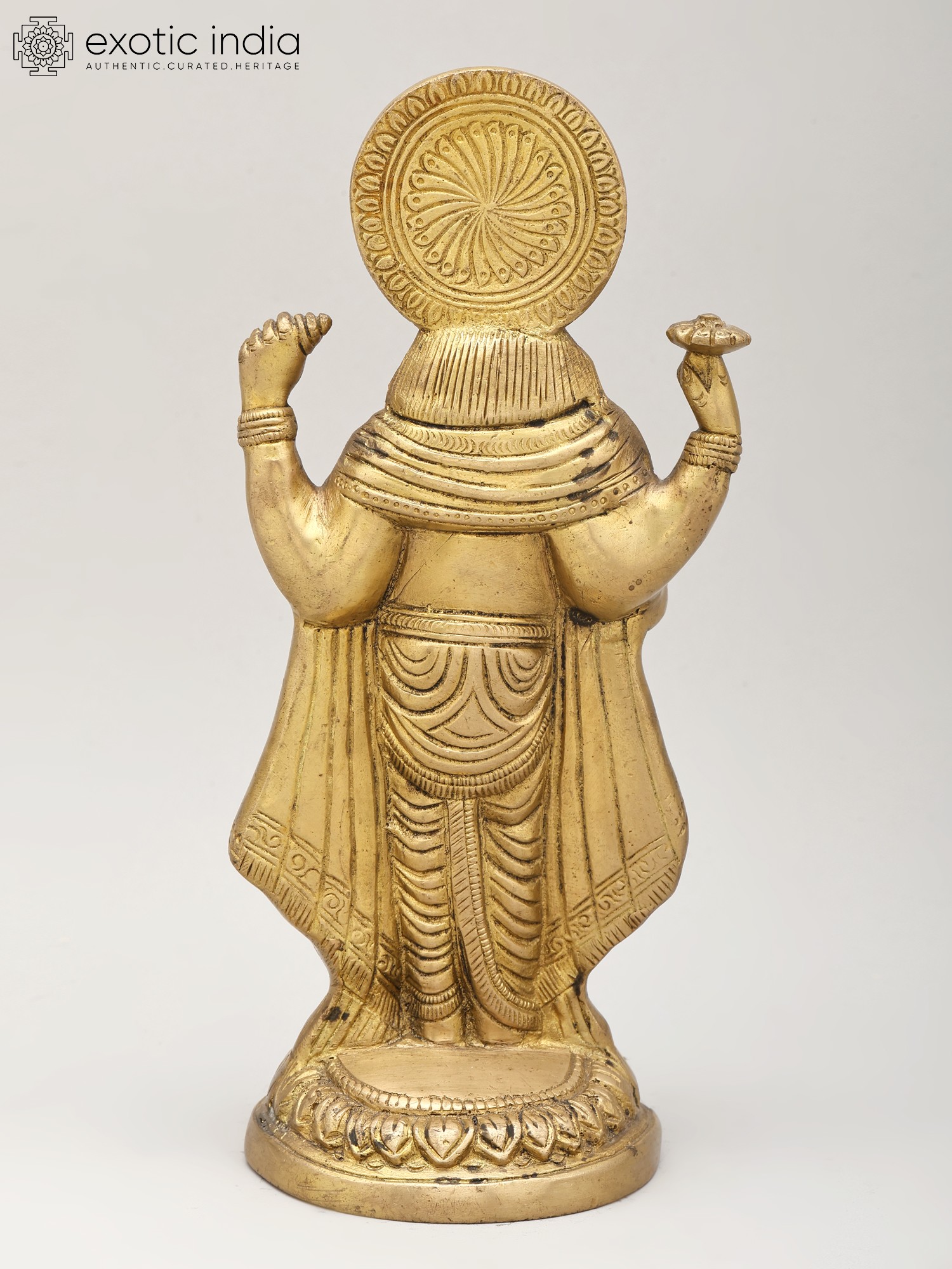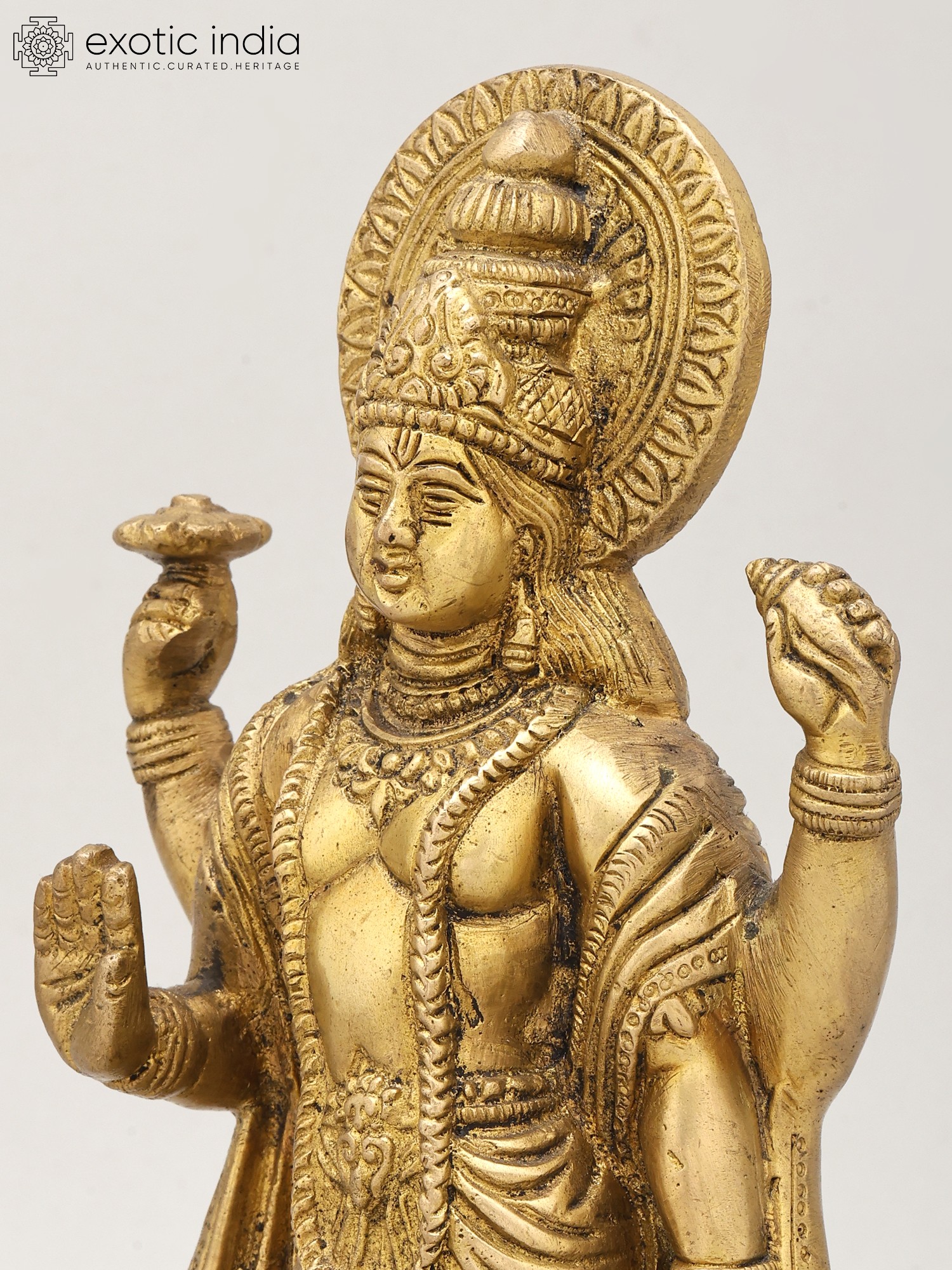 8" Four-Armed Standing Vishnu Sculpture in Brass | Handmade | Made in India