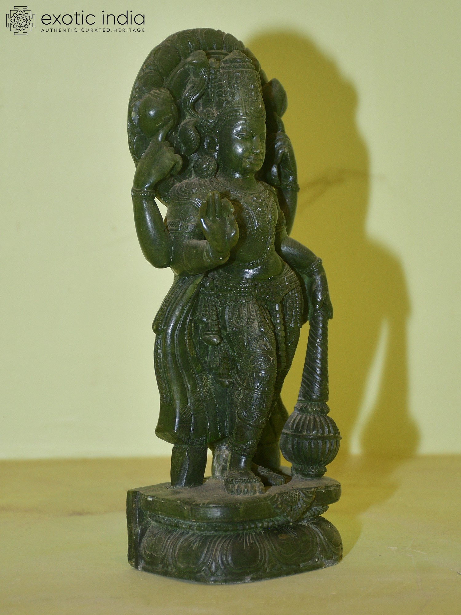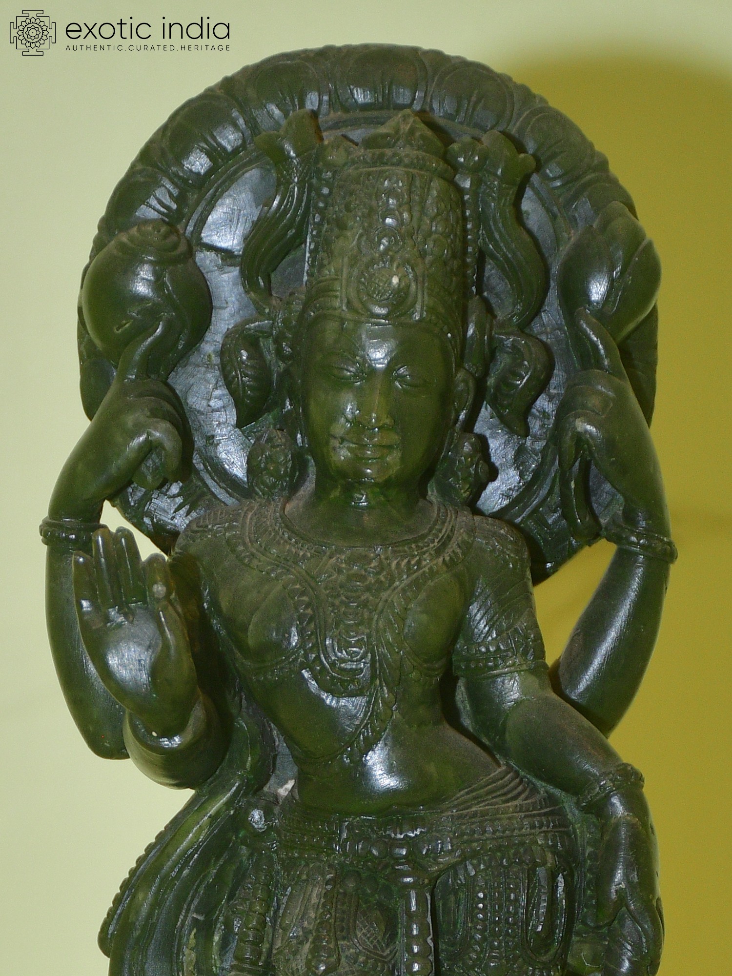 Eight-Armed Lord Vishnu Statue with Chakra at Back