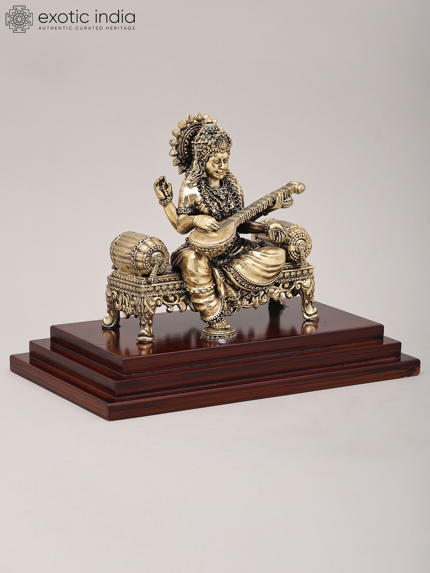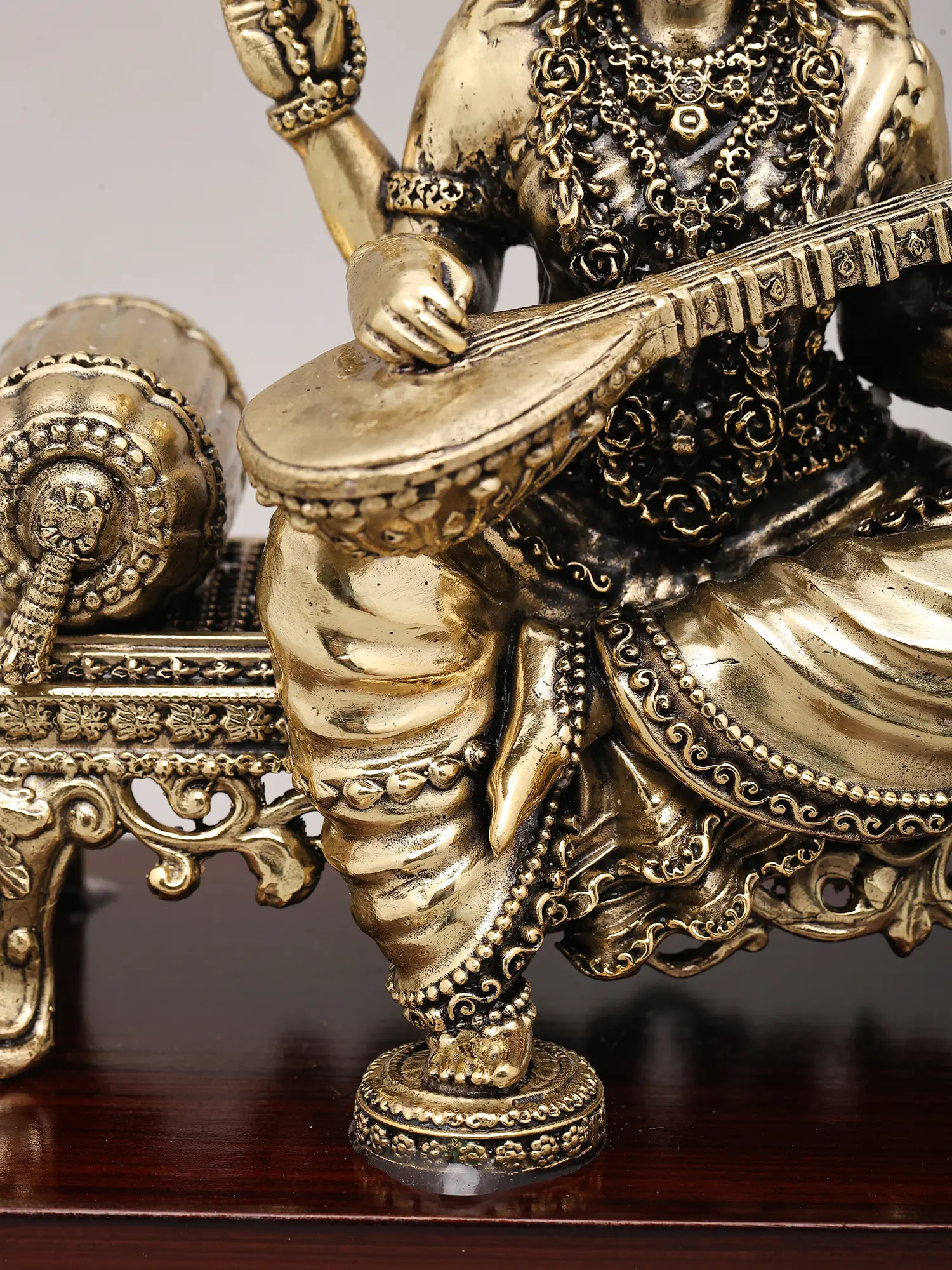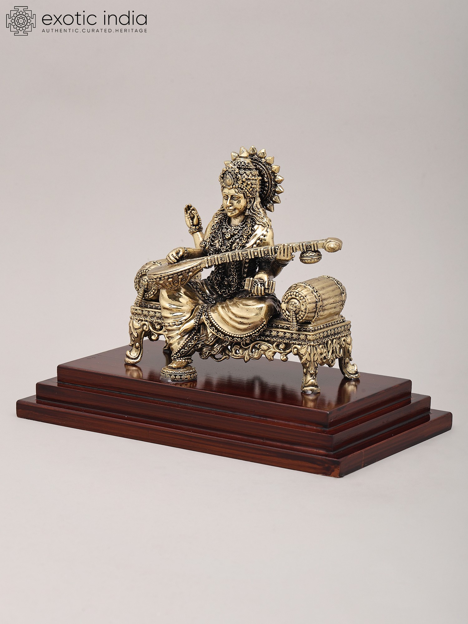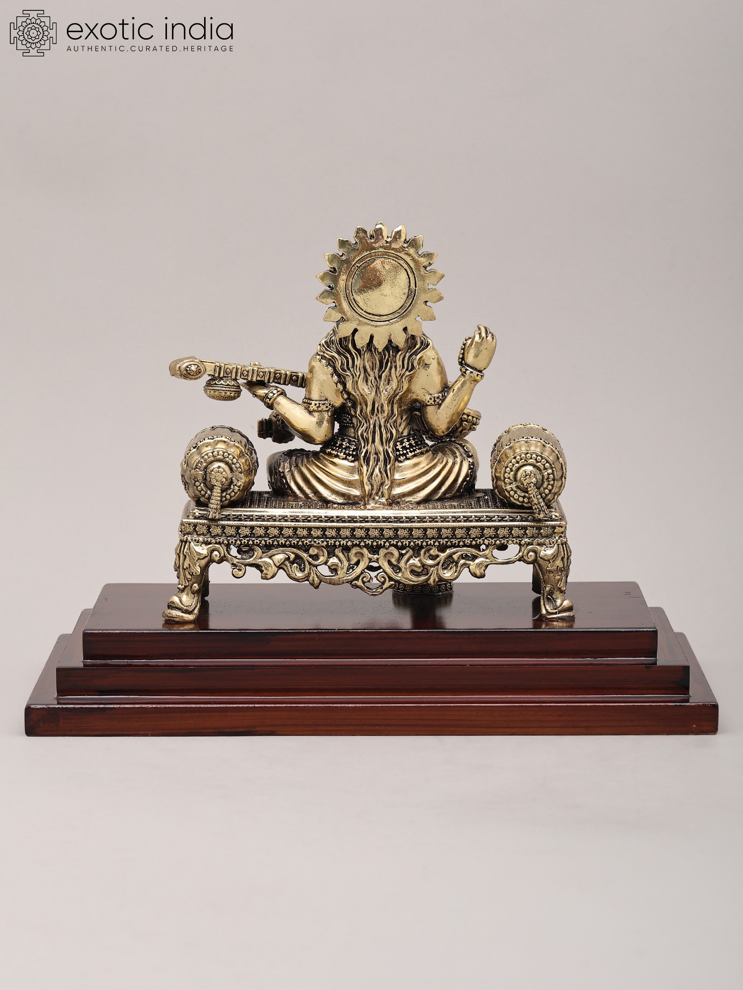 13" Goddess Saraswati Brass Sculpture | Handmade | Made in India
