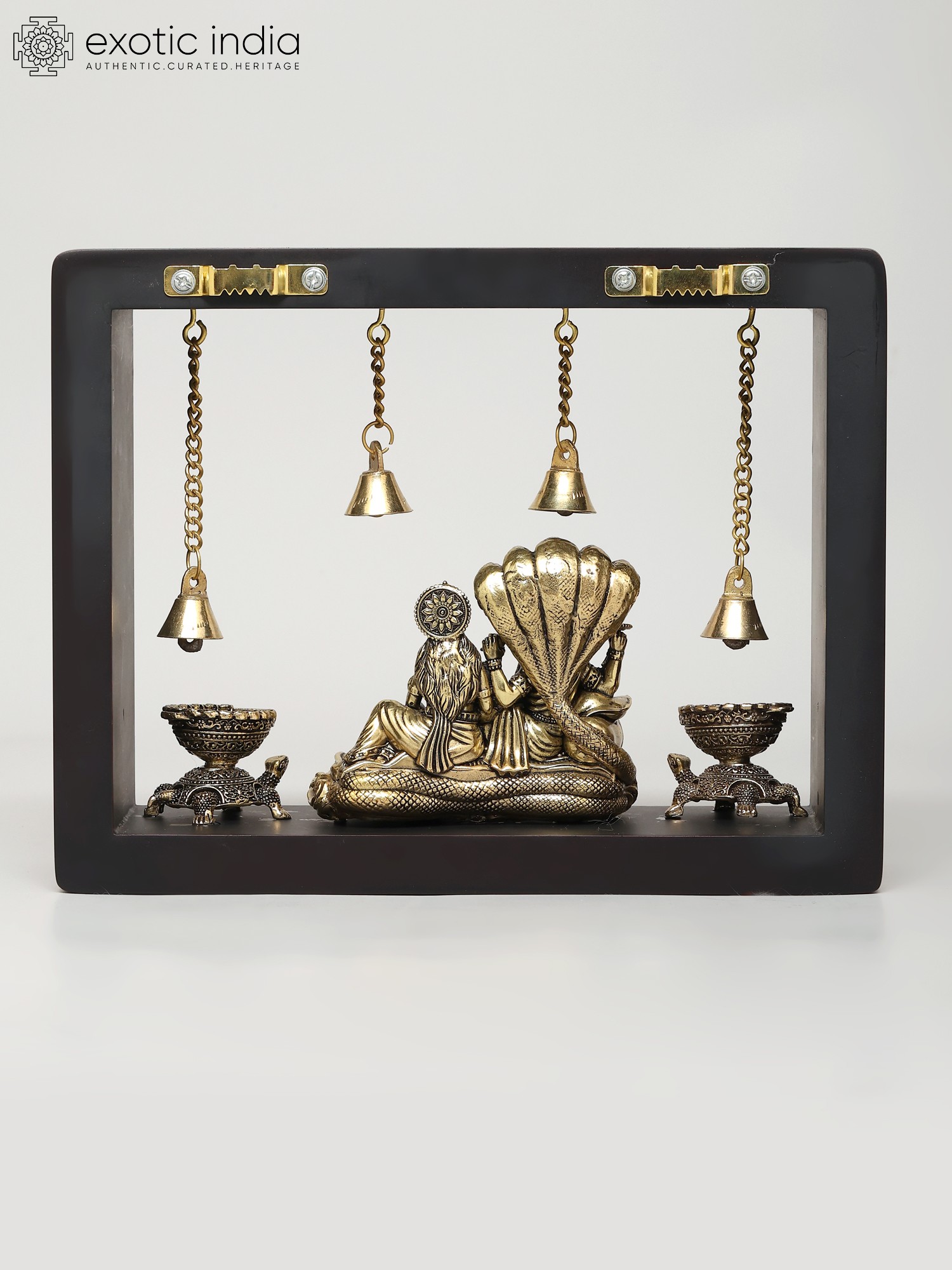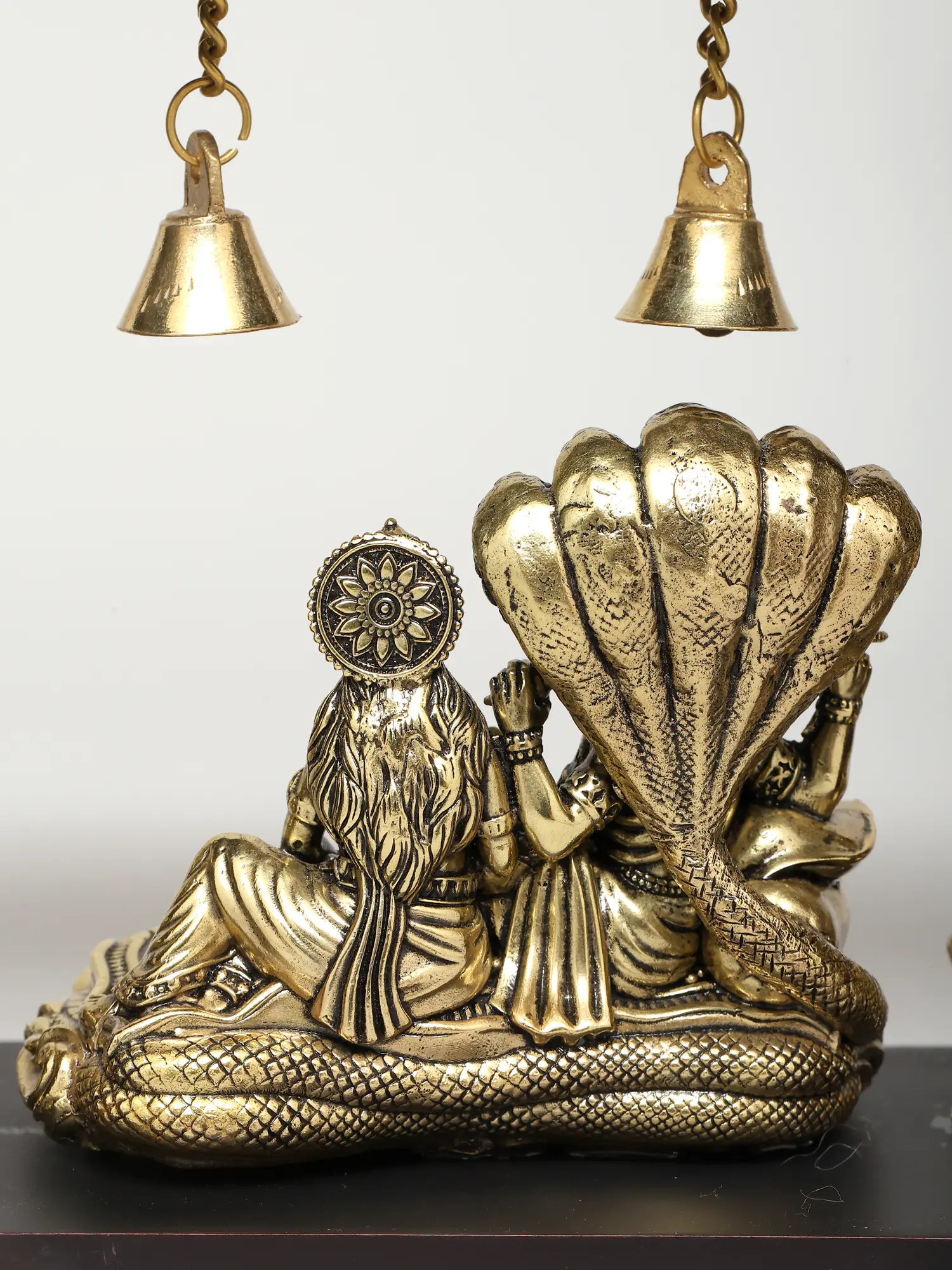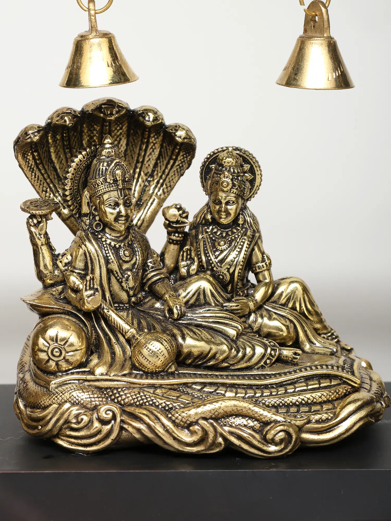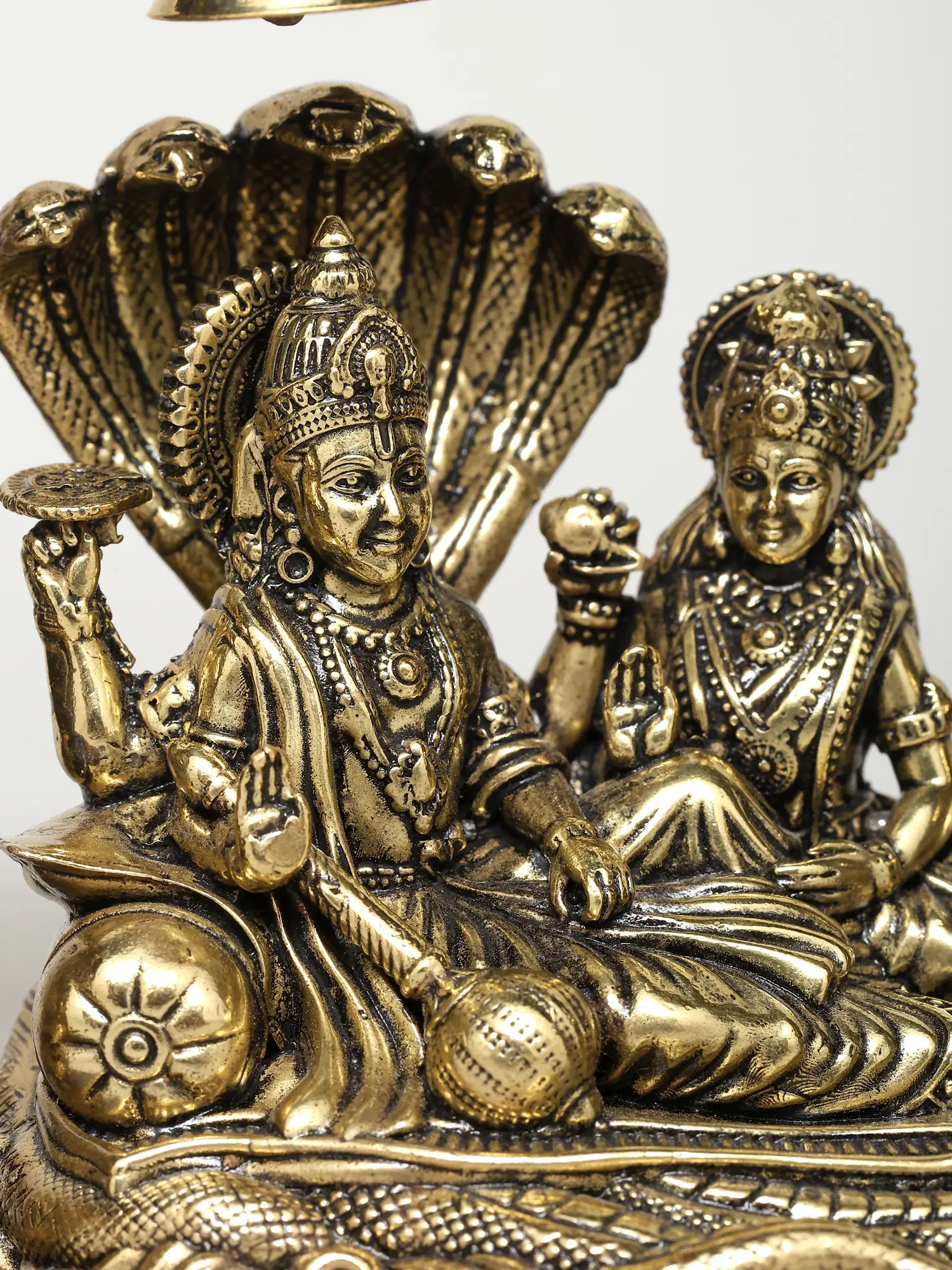 5" Small Superfine Blessing Lakshmi - Narayana Seated on Sheshnag | Brass Statue