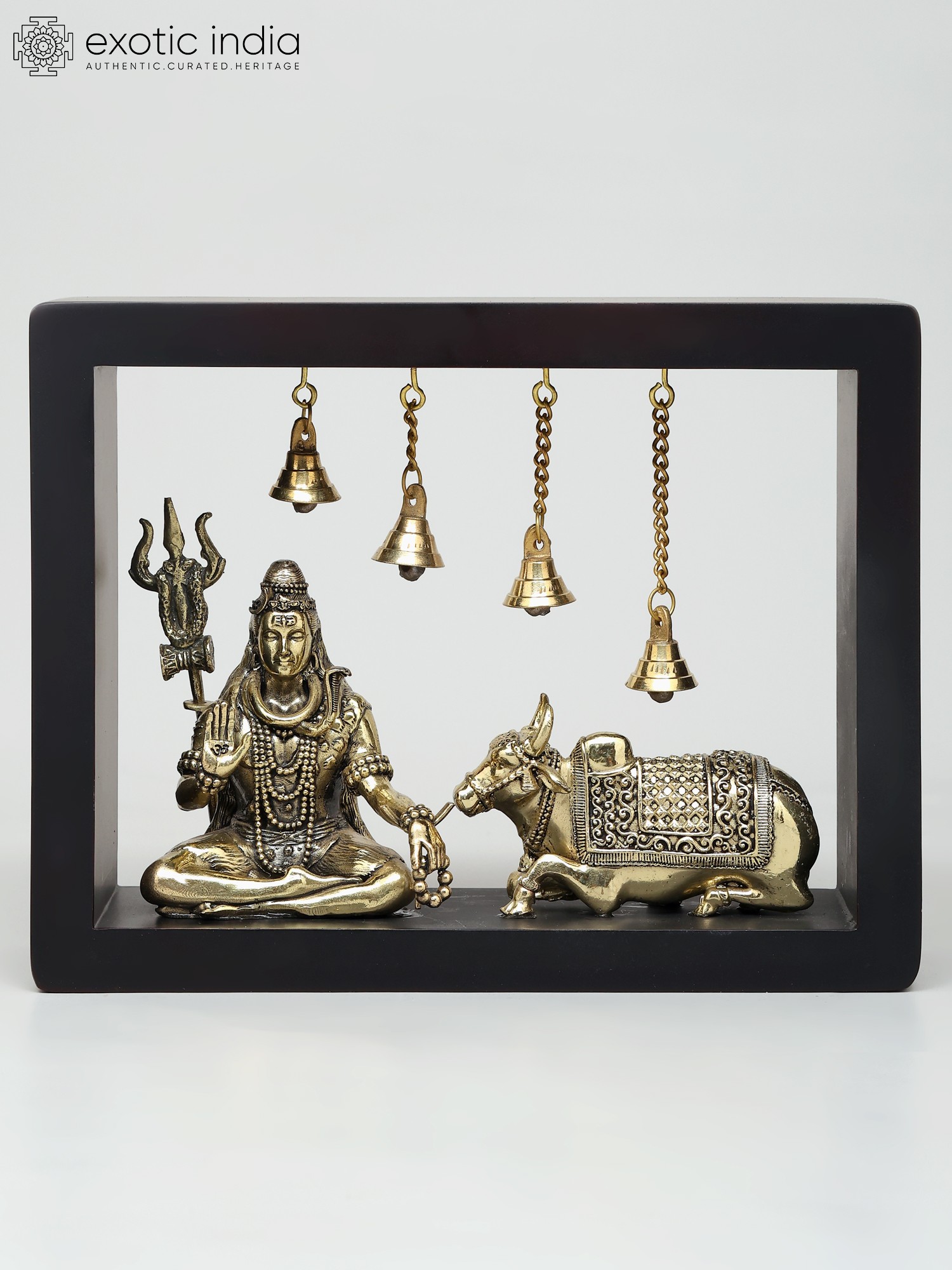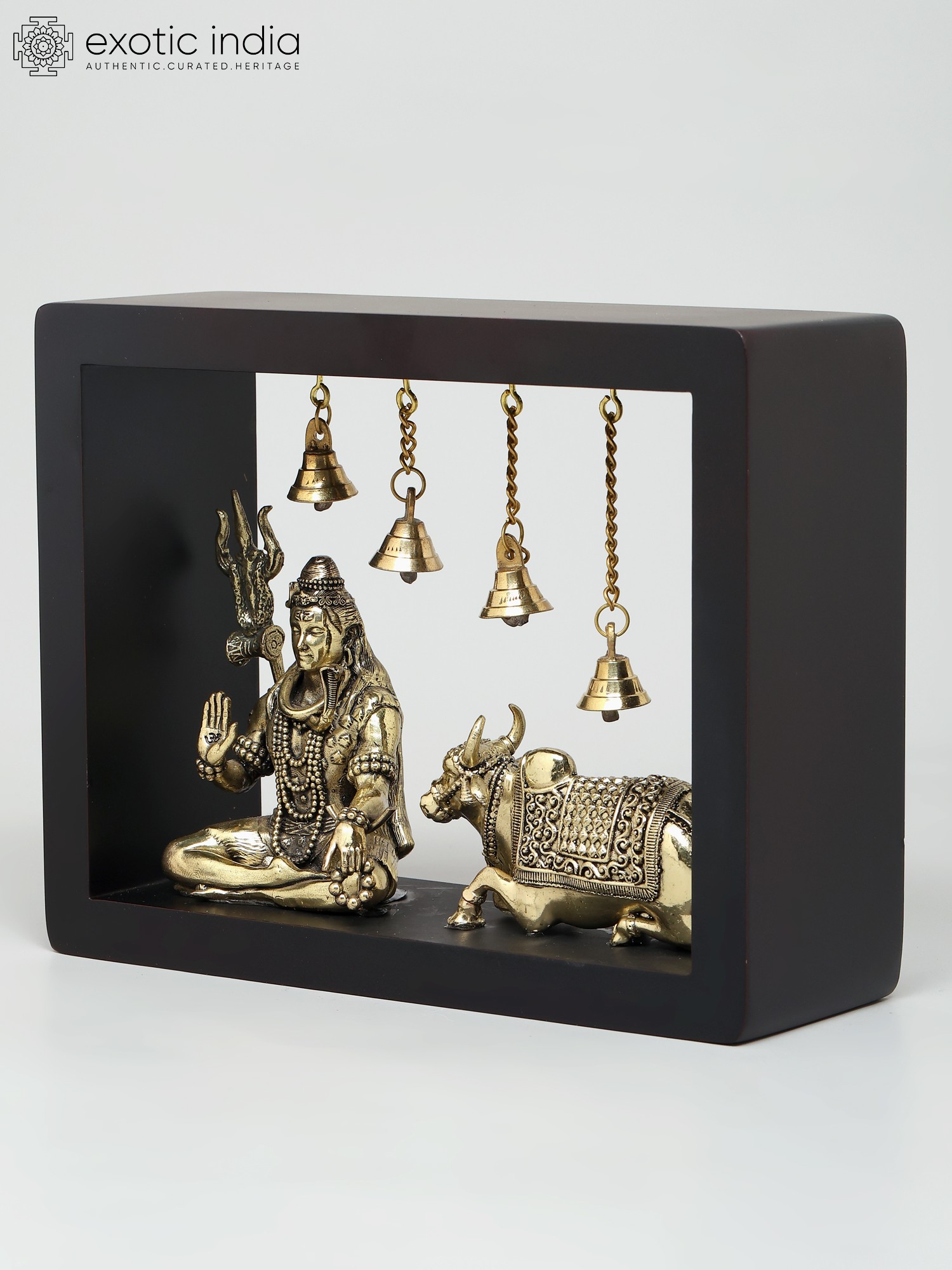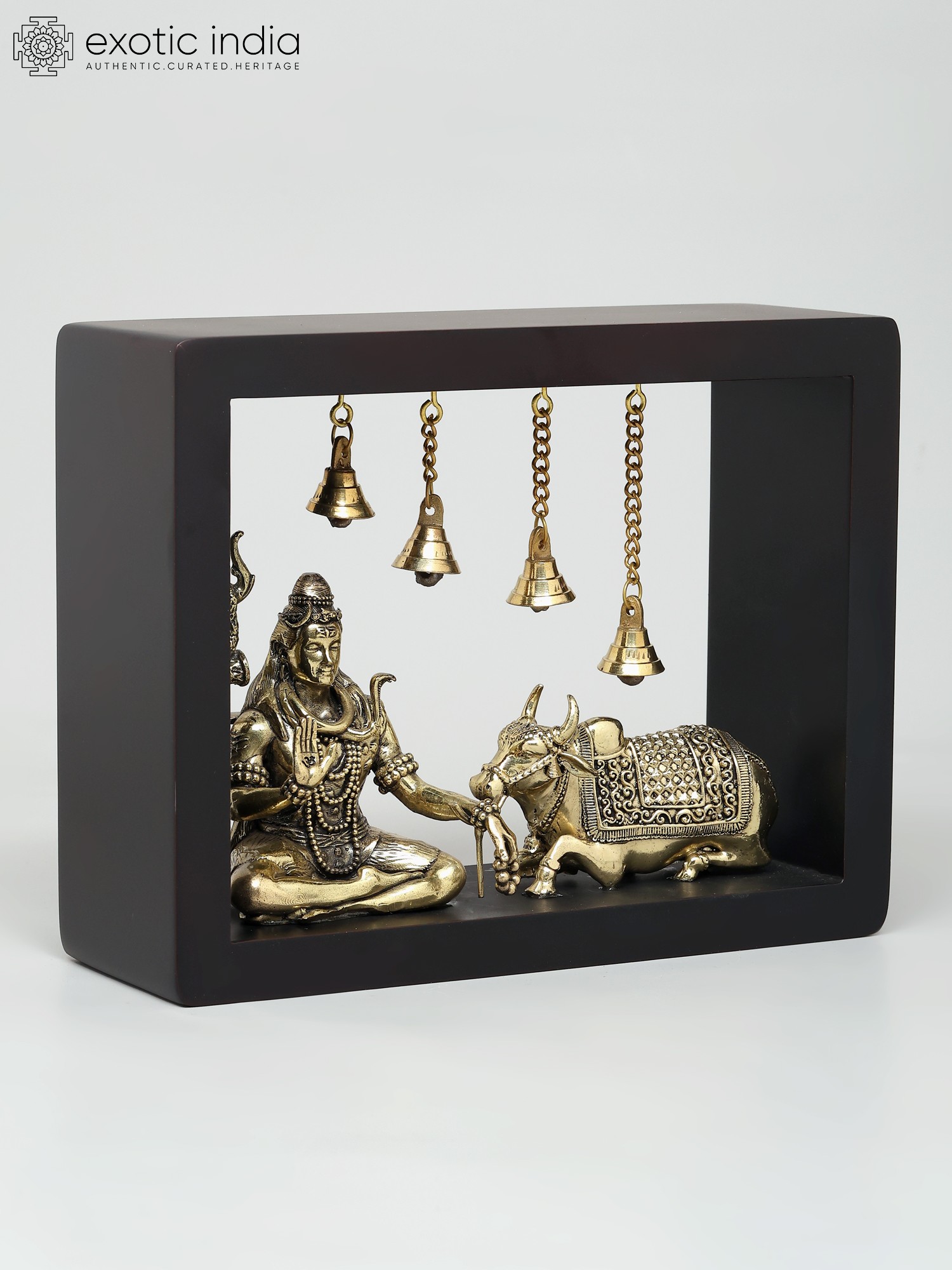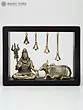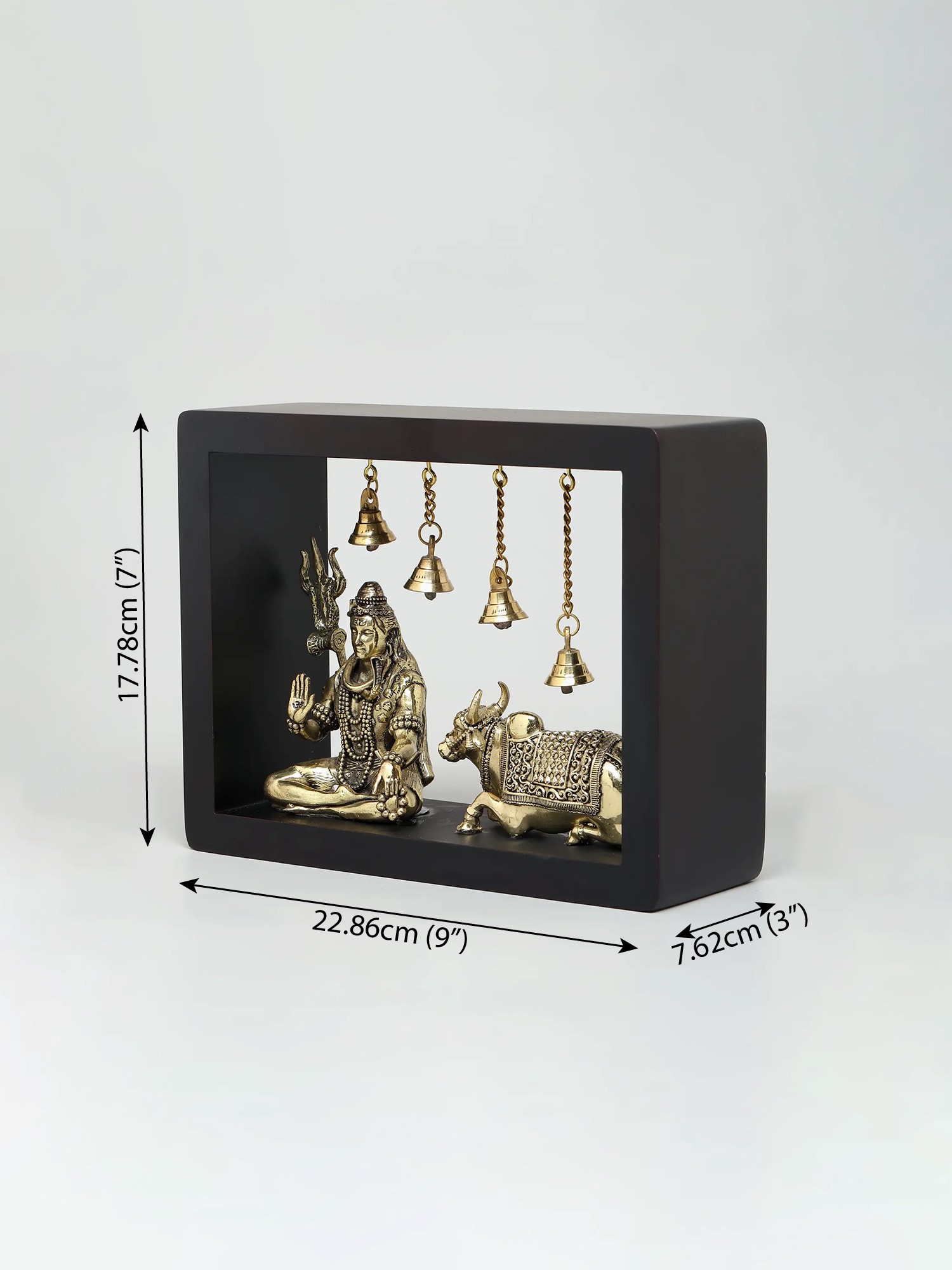 12" Superfine Sitting Lord Shiva with Nandi and Shivalinga | Wood Framed Brass Sculptures | Wall Hanging