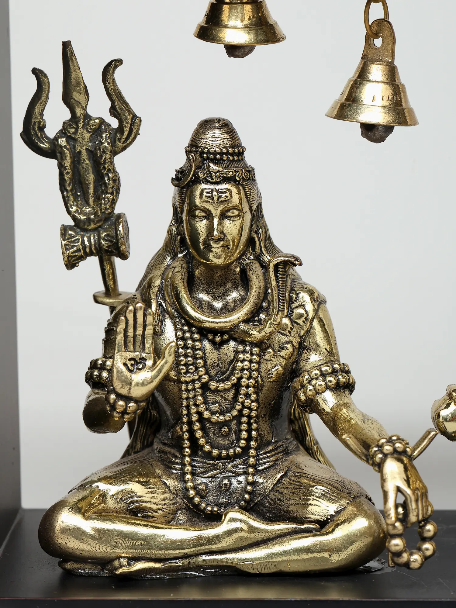 21" Seated Blessing Shiva with Nandi and Long Trident In Brass | Handmade | Made In India