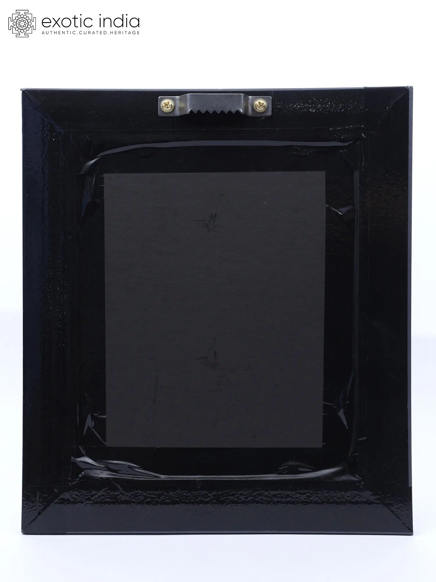 Lakshmi-Loka, the abode of the Hindu goddess of wealth is envisioned within the frame of this beautiful brass and wood wall hanging.