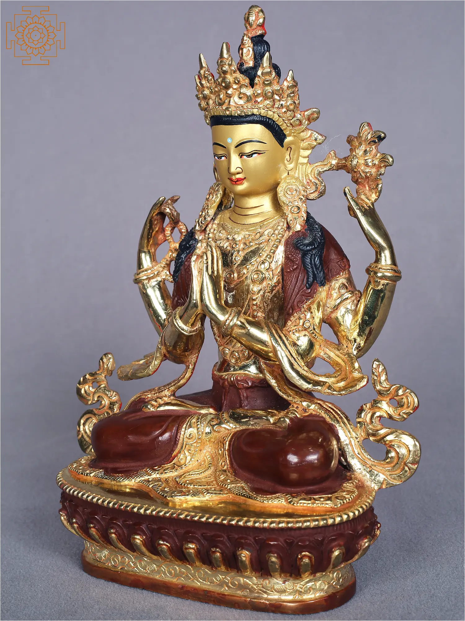 Step into Chenerzig's caring embrace, which represents unlimited compassion in Tibetan Buddhism. Chenerzig is a bodhisattva, a sympathetic mentor on the arduous journey to enlightenment, with many arms outstretched in a loving embrace and an empathetic gaze. Chenerzig is a kind person, and his mantra "Om Mani Padme Hum" resonates with sincere practitioners. His many limbs represent his altruistic desire to assist sentient beings, and his calm expression denotes an enduring devotion to easing pain.