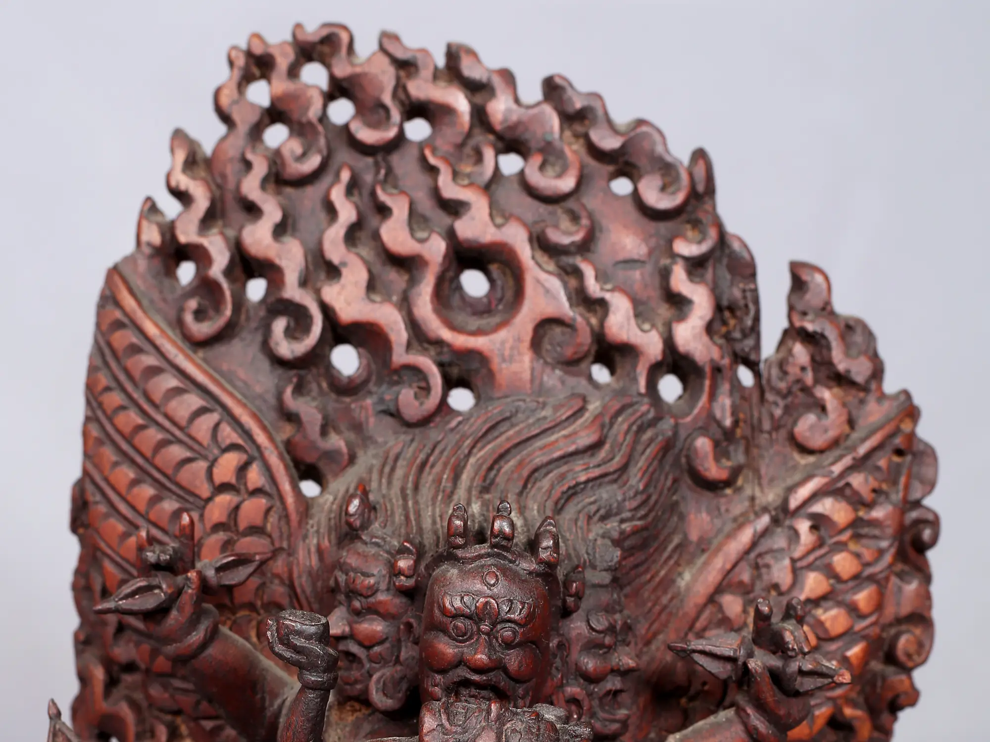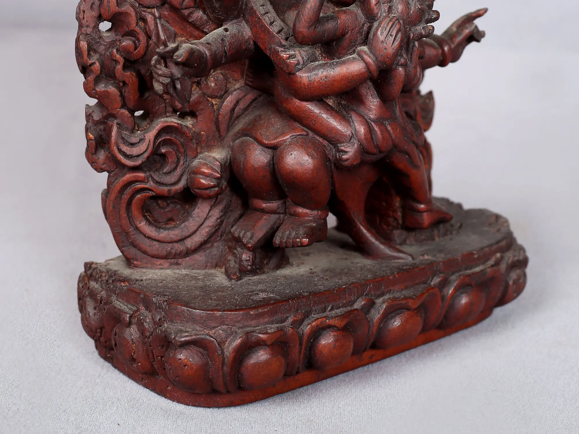 Wood-Carved Panel Of Instrument-Wielding Ganesha Figurines
