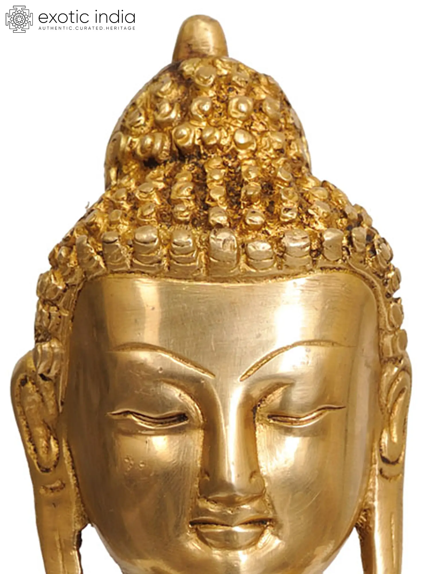 This exquisite brass statue depicts a tranquil Buddha, radiating an aura of profound peace and compassion. The gentle tilt of the head, the serene closed eyes, and the subtle smile evoke a sense of inner stillness that can inspire calm in any space. Crafted with meticulous attention to detail, the warm, lustrous brass highlights the graceful lines of the deity's form, a testament to the skill of Indian artisans.