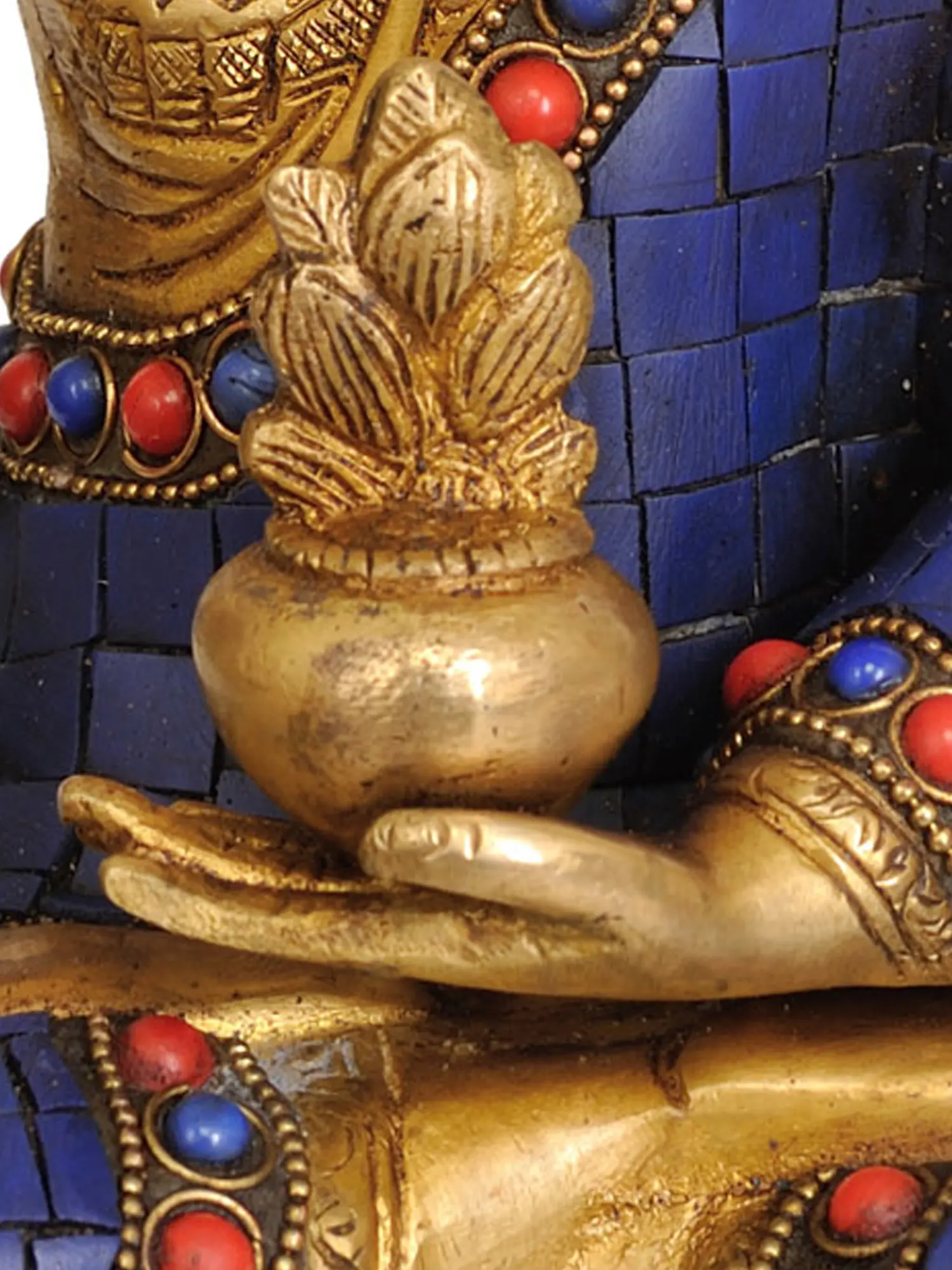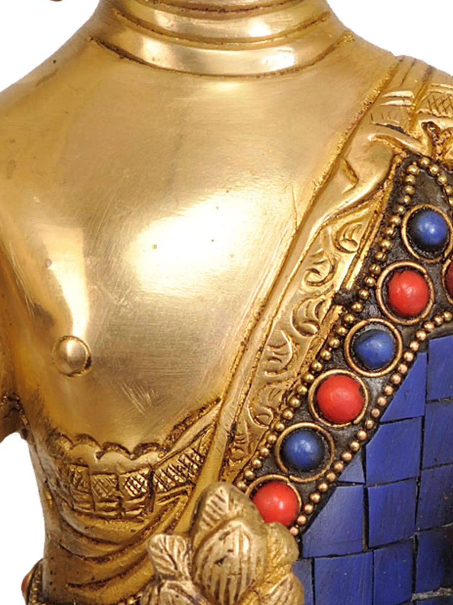 9" (Tibetan Buddhist Deity) Lapis Healing Buddha In Brass | Handmade | Made In India