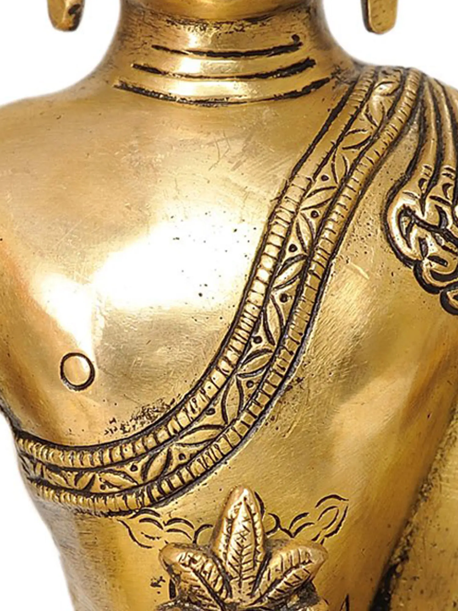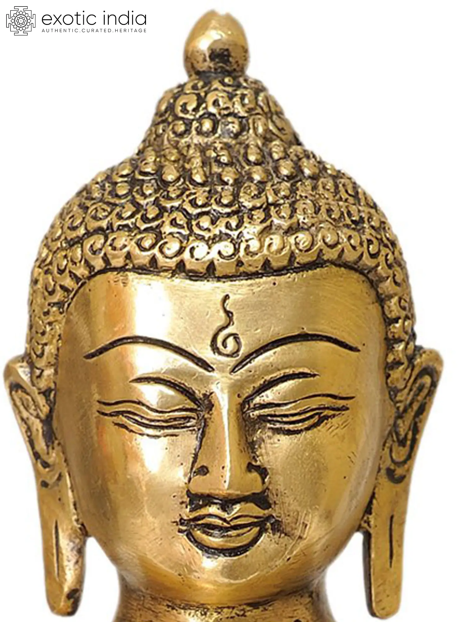 This exquisite brass statue depicts the revered Medicine Buddha, known in Tibetan as Sangye Menla, a powerful Bodhisattva embodying the essence of healing and compassion. In the Mahayana Buddhist tradition, the Medicine Buddha is not merely a historical figure but a celestial Buddha who, in his earthly manifestation, vowed to cure all sentient beings of their suffering, both physical and mental. His presence offers solace, protection, and the aspiration towards enlightenment for all who invoke his name or gaze upon his image. The artistry of this piece, meticulously handcrafted in India, captures the serene and benevolent countenance of the Medicine Buddha. He is depicted in a meditative posture, seated on a lotus throne, symbolizing purity and spiritual awakening. His right hand rests on his knee, palm facing downwards, in the gesture of granting boons and dispelling fear, a classic mudra of abundance and protection. In his left hand, cradled in his lap, he holds an alms bowl filled with the nectar of immortality and medicinal herbs, representing his profound ability to alleviate all ailments. The intricate detailing on his robes and the delicate features of his face speak to the skill of the artisan, infusing the brass with a divine radiance.