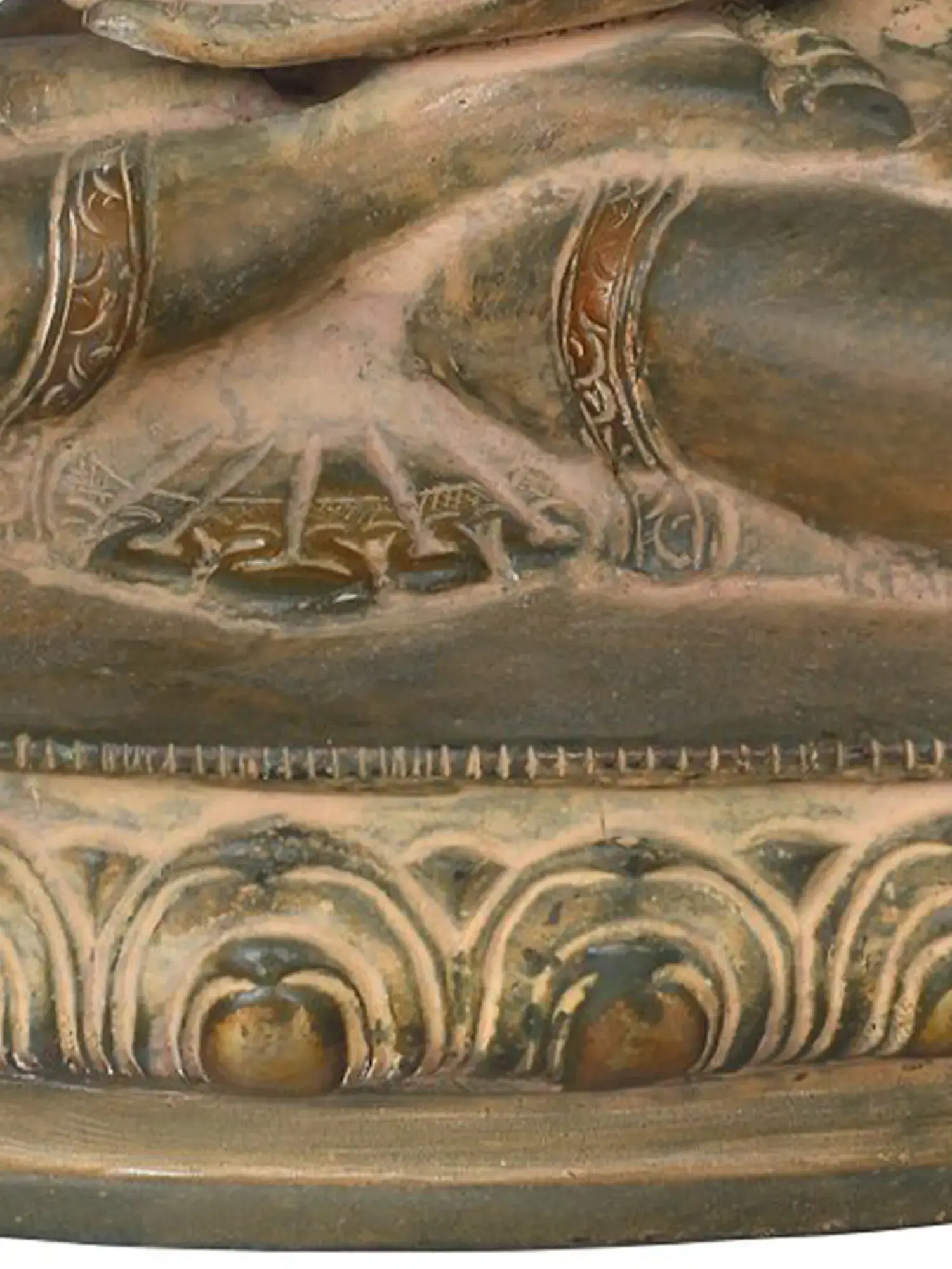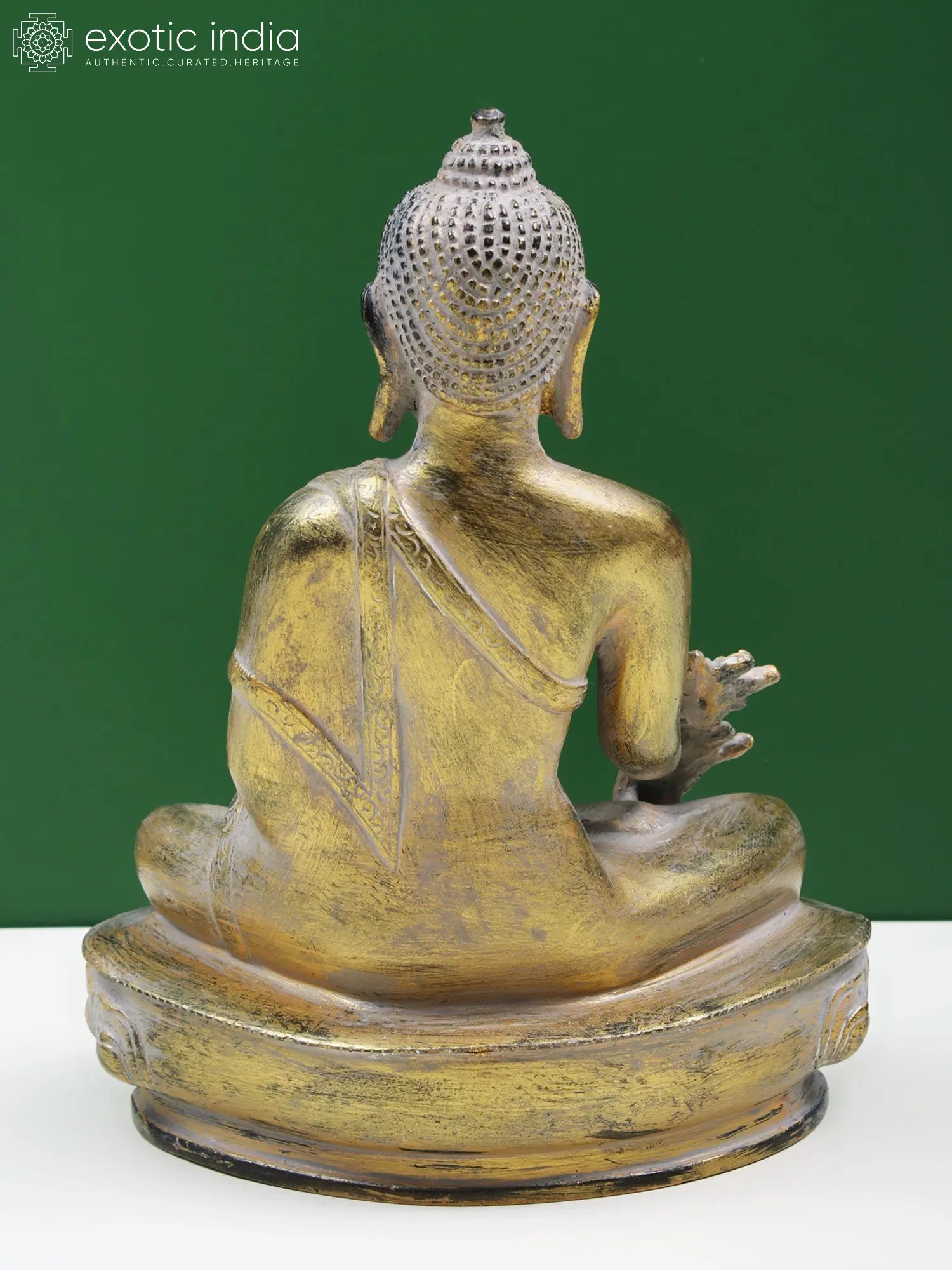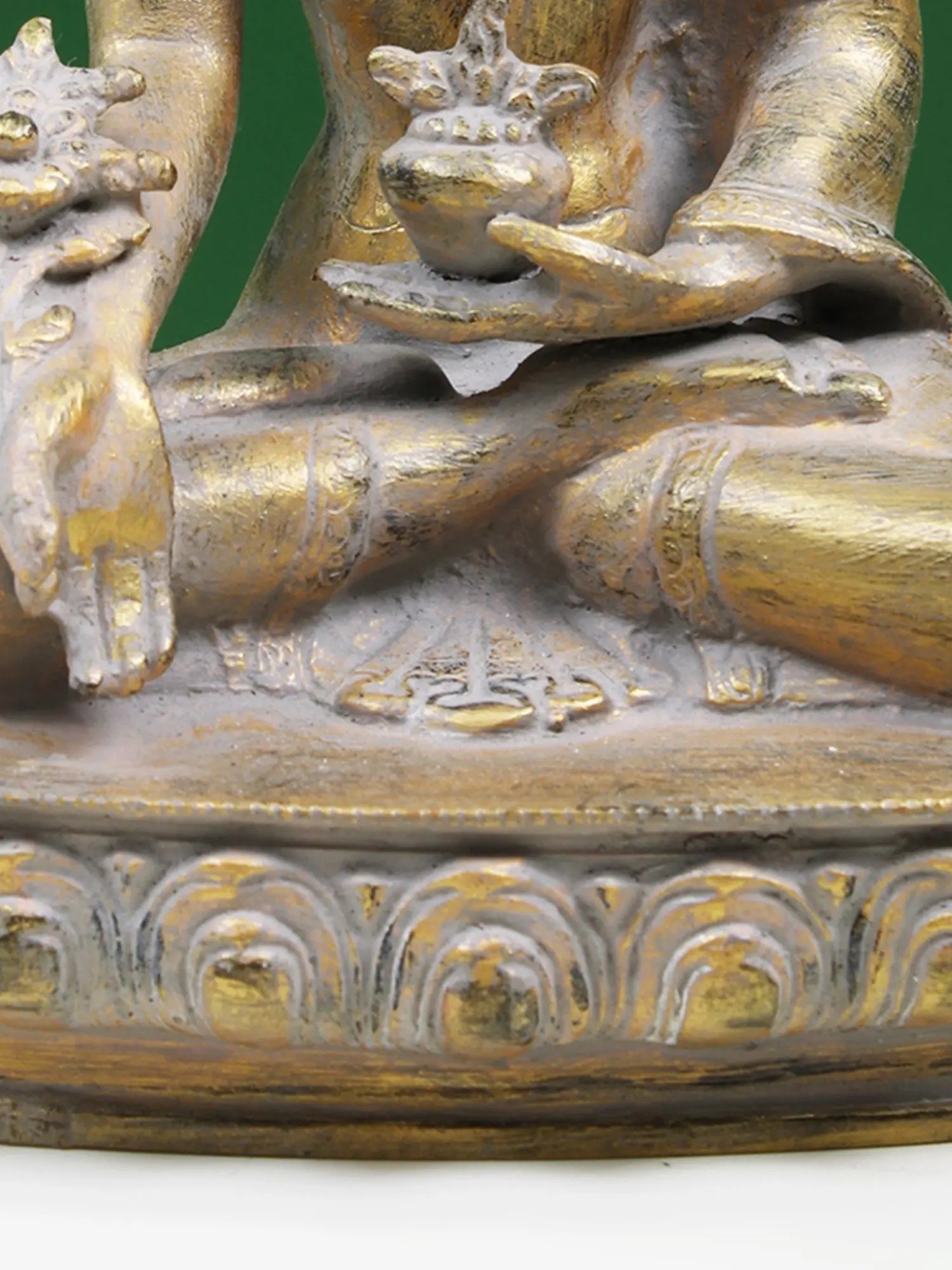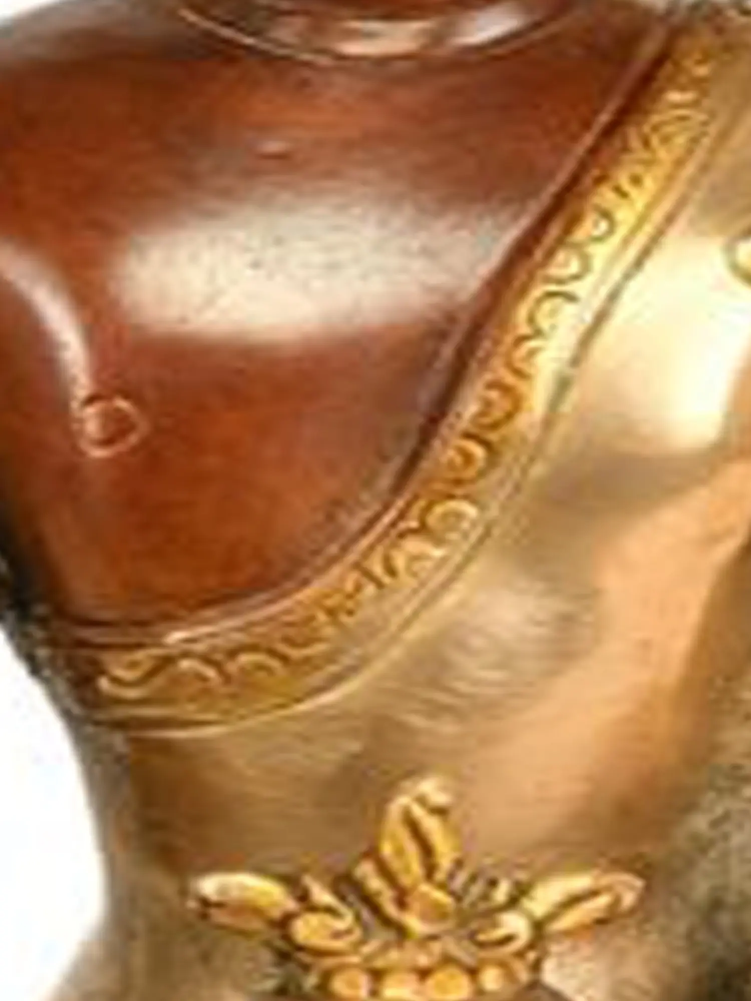 Find solace and healing energy with this handmade Brass Tibetan Buddhist Deity Medicine Buddha. This sacred statue, crafted in India, represents the compassionate and healing aspect of Buddhism. In Tibetan Buddhism, the Medicine Buddha is revered for his ability to heal physical and spiritual ailments. His serene expression and the aura of tranquility he exudes embody the belief in the interconnectedness of the mind, body, and spirit. The intricate craftsmanship on this brass idol reflects the beauty of the Buddhist philosophy of inner peace. Having the Medicine Buddha in your home encourages the path to holistic well-being and reminds you of the healing power within us all.
