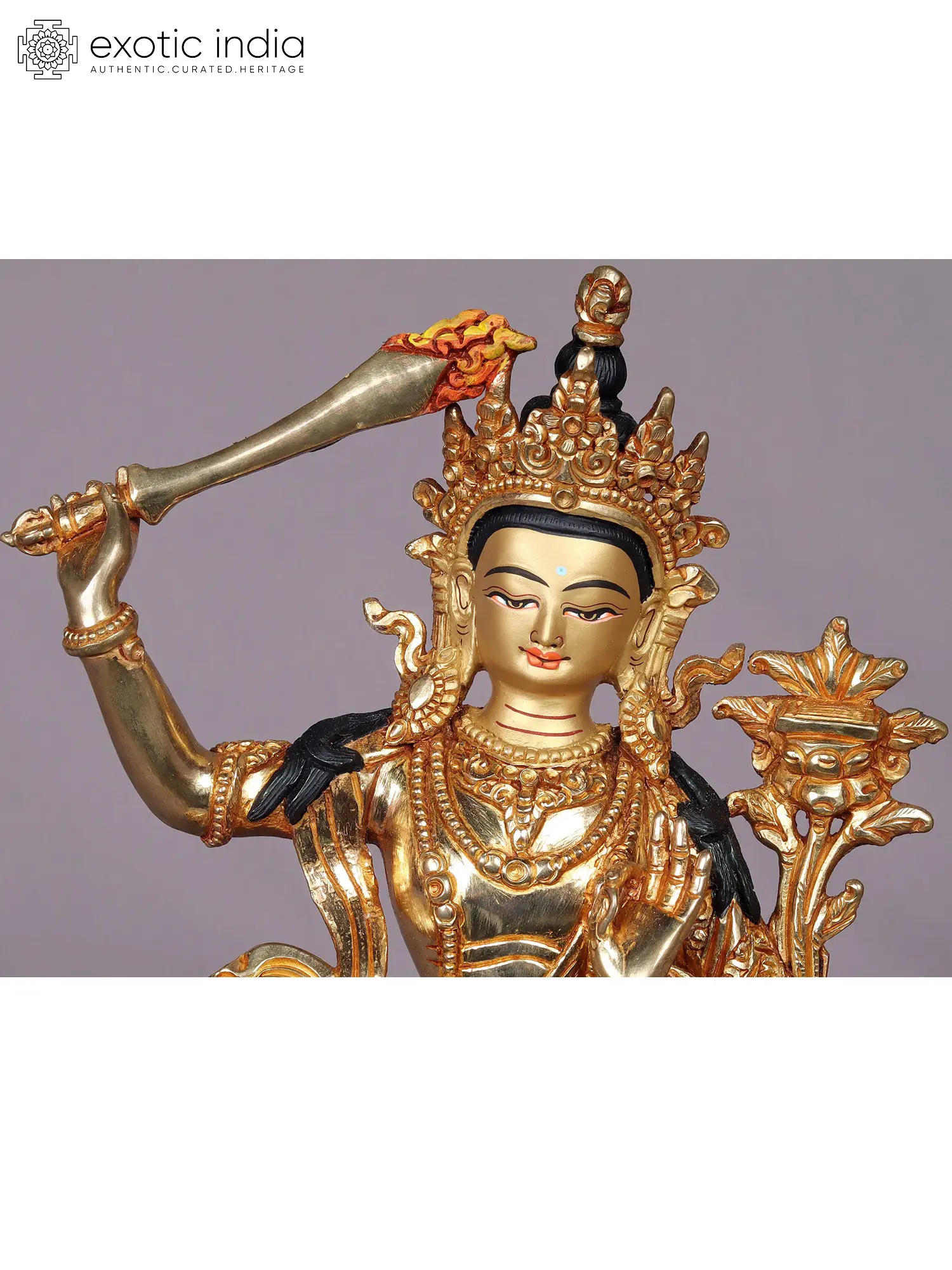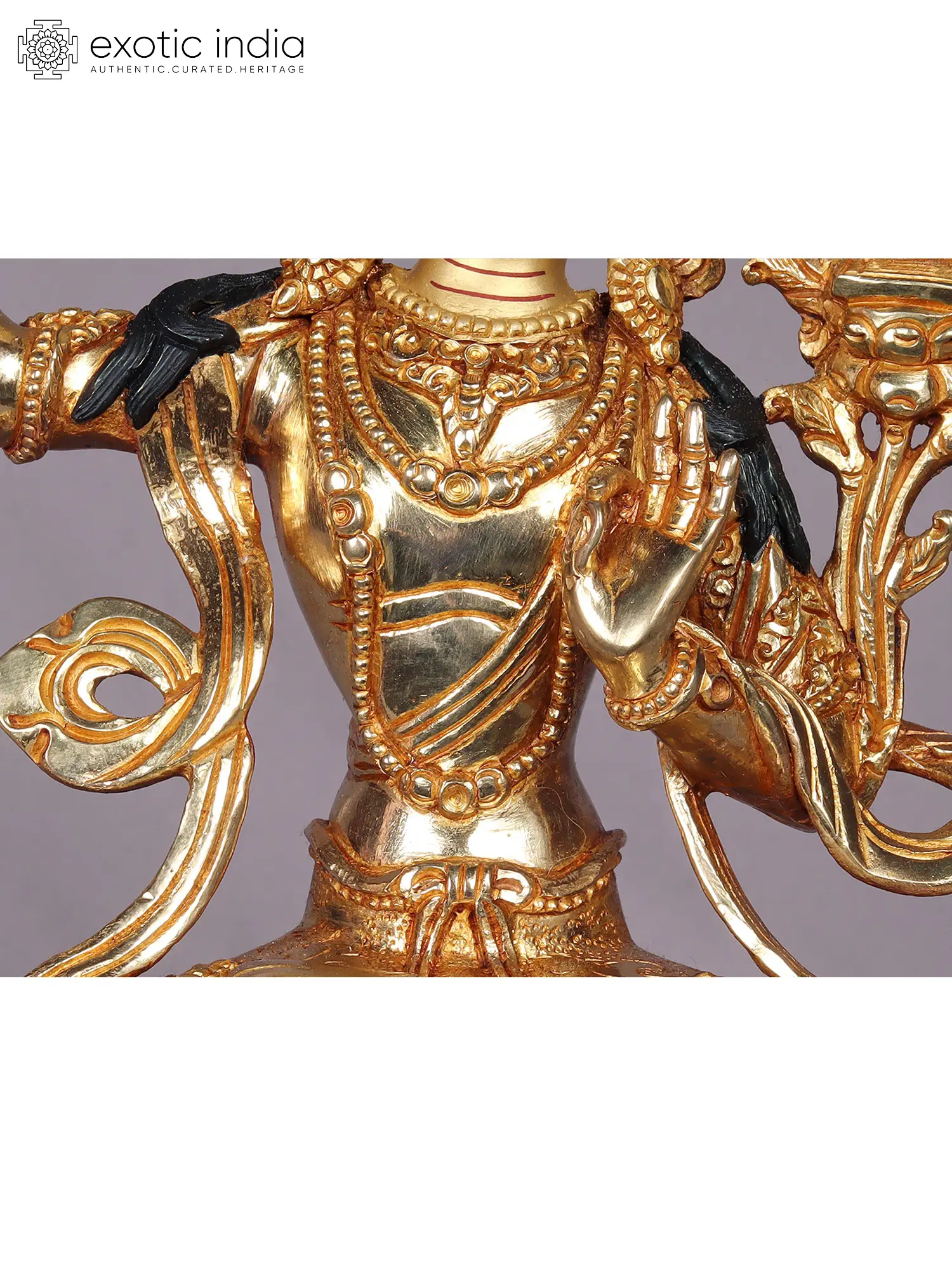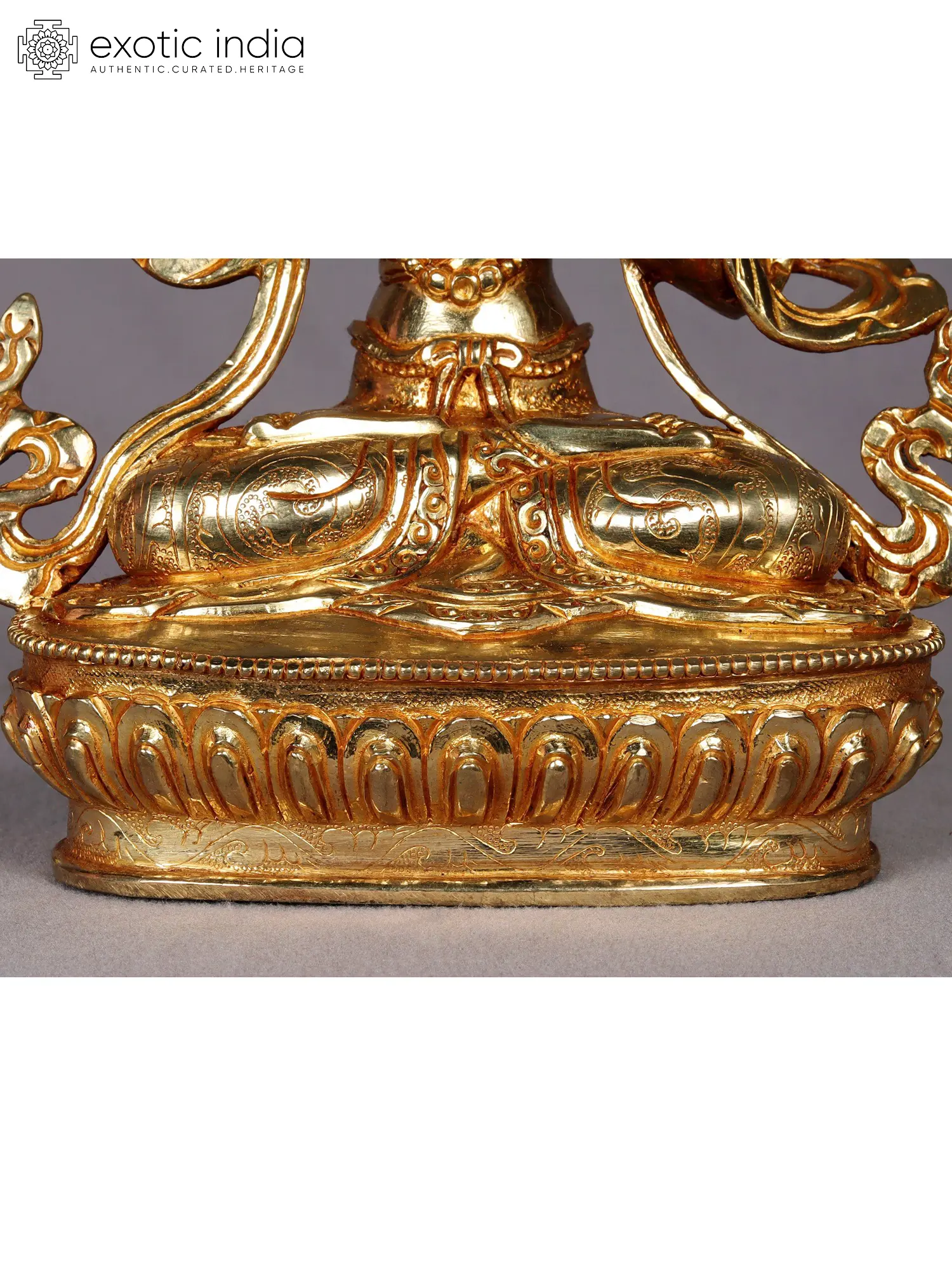 In his right hand, he gracefully holds a vajra close to his heart, symbolizing both Reality and Compassion. In his left hand, he cradles a bell near his waist, representing Wisdom. Seated in the Vajraparyanka posture, he is adorned in opulent silks and adorned with precious ornaments, including a jeweled diadem. Vajrasattva's attire gleams with radiant blues and deep reds, adorned with an array of exquisite jewels.