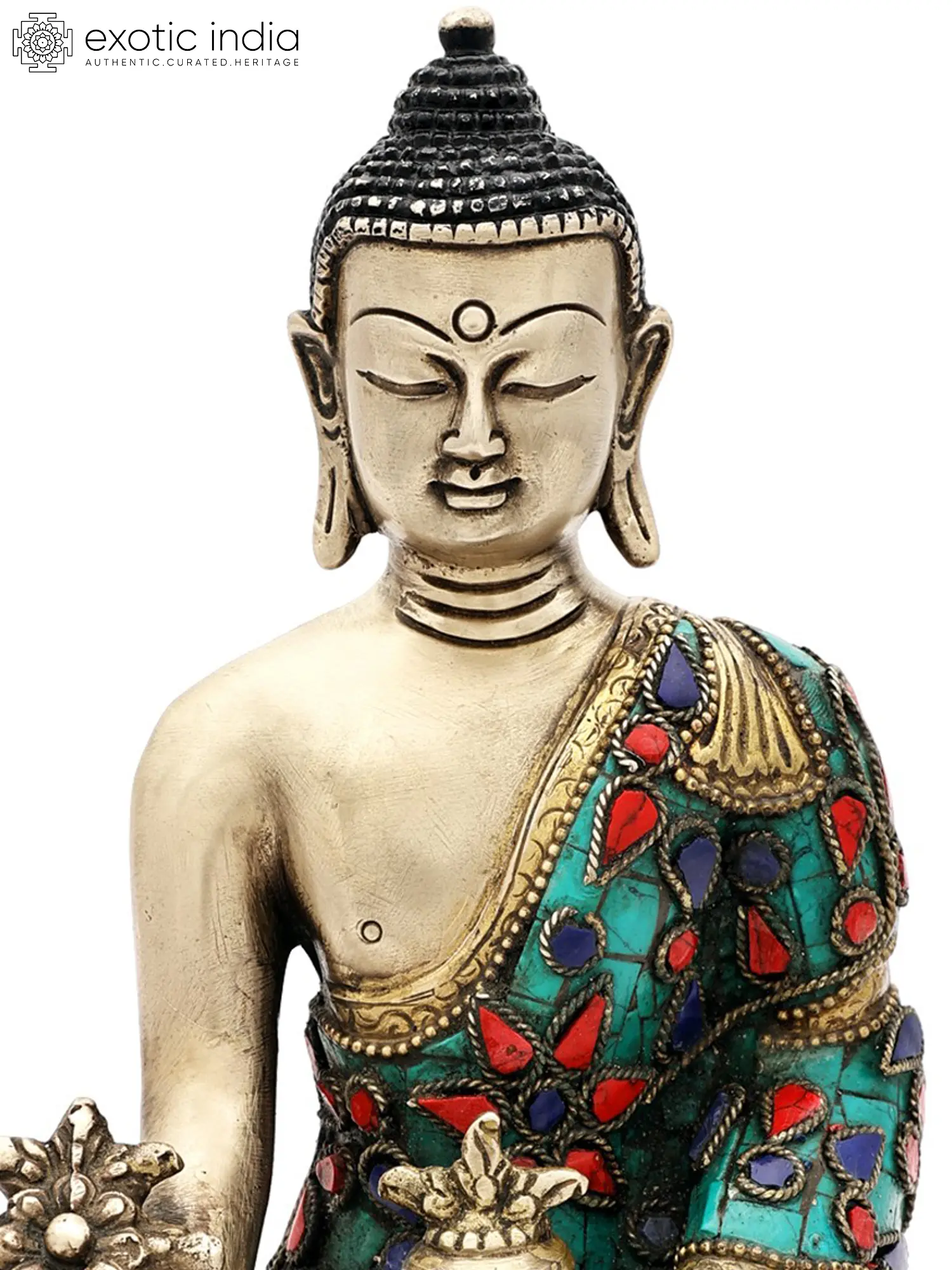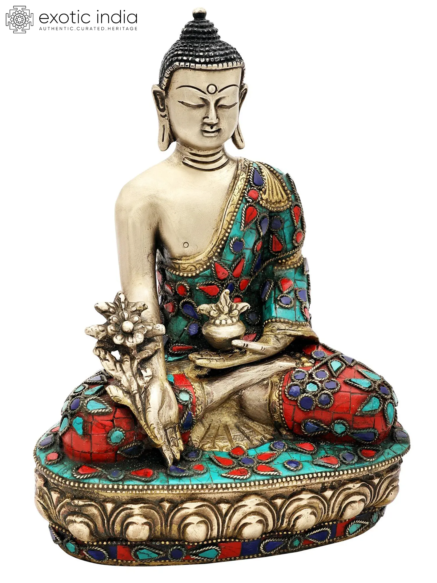 9" Tibetan Buddhist Healing Buddha | Medicine Buddha | Inlay Work | Brass Statue | Handmade | Made In India
