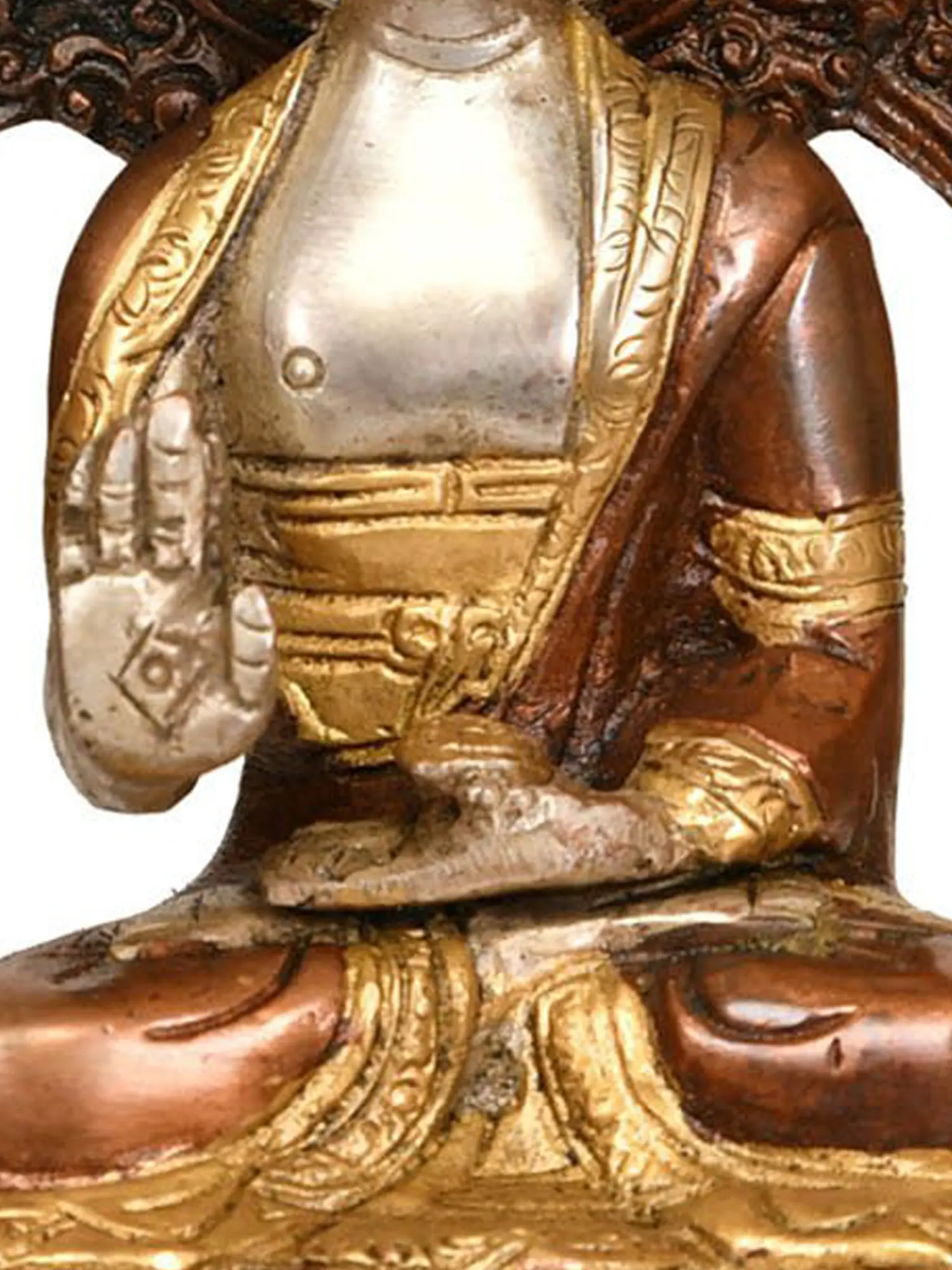 9" Tibetan Buddhist Lord Buddha in Abhaya Mudra In Brass | Handmade | Made In India